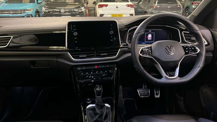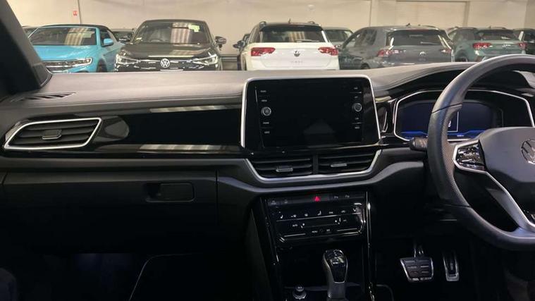 10.25" Digital cockpit pro, Bluetooth mobile phone interface, Driver alert system with fatigue detection, Driver tips and journey analysis, Emergency call service, Lane keeping system Lane Assist, Modified key software - reduce switch off time for key status change to Long no motion, Online services, Park assist including front and rear parking sensors, Service interval indicator, Tailgate/trunk lid release from outside, Think blue trainer driver tips and journey analysis, Warning sound and light for front seatbelts unfastened, Wireless app connect, Battery regeneration during braking, Start/stop function with battery regeneration, Diversity antenna for FM reception, Front and rear 6 speakers, Music playback - MP3, WMA and AAC files, Premium USB cable in choice of either Apple or Android smartphone compatibility, SD card slot, Simultaneous pairing of 2 compatible mobile devices, Title and cover art display, We Connect and We Connect Plus functionality, 3rd brake light, Auto dimming interior rear view mirror, Automatic hazard lights activation under emergency braking, Automatic headlight control with LED separate daytime running lights with coming/leaving home function, Extended roof spoiler, Exterior mirrors aspherical on driver side, convex on front passenger side, External USB type C socket and charging sockets, Front windscreen wiper with intermittent wipe and 4 position delay, Heated rear window, LED Plus headlamps, LED rear combination lamps, LED rear number plate lights, LED tail lamp rear comination lamps, Power windows with comfort operation and circuit breaker, R-Line design body coloured bumpers, Rain sensor, Rear exhaust tailpipe, Rear fog light on one side and reversing lights on both sides, Rear side wing doors, Rear wash/wipe with intermittent wipe setting, Remote electrically foldable door mirrors, puddle lights and reverse activated passenger's door mirror, 12V power socket in centre console, 3 rear head restraints, 3 seat bench in 2nd row, 4 load lashing points in luggage compartment, Air care climatronic air conditoning system with active combination filter and 2-zone temperature control, Black roof lining, Chrome plated radiator grille inserts, air vent surrounds and light switch surrounds, Door and side trim panel with leatherette insert, Drawer under drivers seat, Front + rear carpet mats, Front centre armrest, Front cupholders x 2, Front footwell illumination, Front reading light, Front scuff plates with R logo, Instrument lighting, white adjustable panel illumination, Interior ambient lighting and surround lighting, Interior light delay, Isofix child seat preparation, Leather gearshift handle, Load-through provision with cup holder when folded down ('Unsplit rear seat bench, split folding backrest, with centre armrest), Luggage compartment lighting, Single front passenger seat, Stainless steel pedals, Storage compartment in left and right luggage area, Storage compartment in rear doors, Storage compartments in driver and front passenger doors, Sunvisors with illuminated vanity mirrors, Variable boot floor, height adjustable and removable, Driver assistance pack without proactive passenger protection - T-Roc, 3 point height adj front seatbelts + pretensioners, 3 point seatbelts in outer rear with ECE label, ABS, Child locks on rear doors, Driver and front passenger airbag with front passenger airbag deactivation, Driver and front passenger safety-optimised head restraints, Drivers seatbelt reminder, Electronic parking brake, Electronic Stability Control (ESC) inc EDL (Electronic Differential Lock) and ASR (Traction Control), Front and rear passengers curtain airbag system including front side airbags, Front assist with city emergency braking and pedestrian monitoring, Front seat side impact airbags, Hill start assist, Predictive pedestrian protection, Rear disc brakes, Single tone horn, Tyre pressure loss indicator, Volkswagen roadside assistance, Alarm with interior protection, Anti-theft alarm system with interior monitoring, backup horn, and towing protection, Remote central locking with SAFELOCK, radio remote control with 2 remote control folding keys, Trims for alloy wheels,
