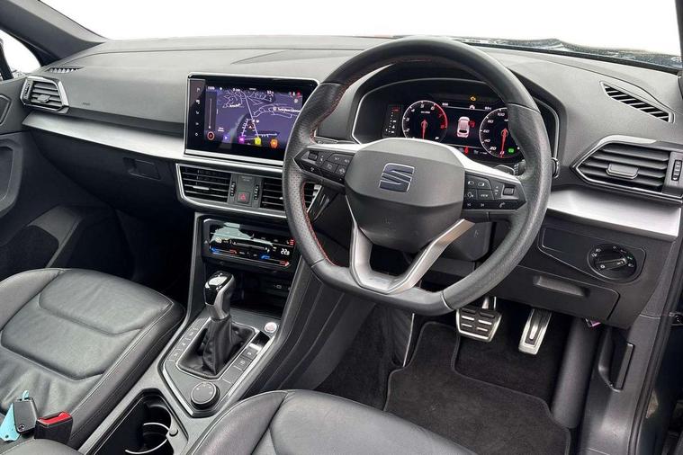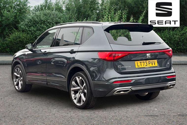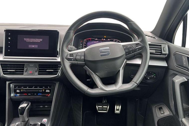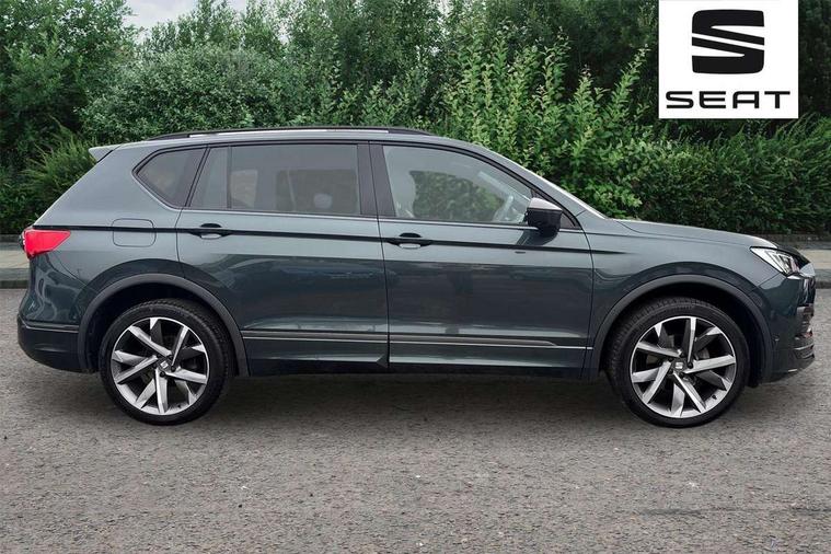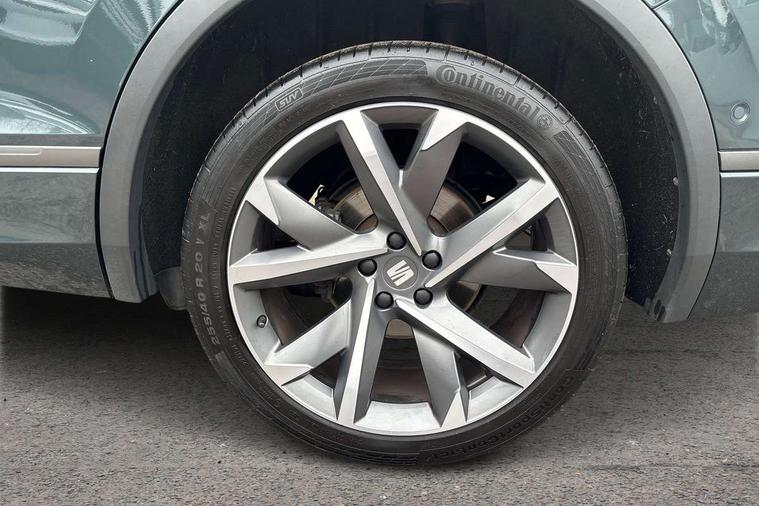 'Lights On' Reminder warning buzzer, 10.25" digital cockpit with multi function display, Adaptive cruise control with speed limiter, Bluetooth audio streaming with handsfree system, Digital clock, e-Call (emergency call), Front assist city emergency braking and pedestrian protection, Full Link Wireless Smartphone Integration with Mirror Link, Apple Car Play, Lane assist, Low fuel warning light, Outside temperature gauge, Power assist steering, RPM counter, Seat connect with safety, service, remote and online, SEAT Drive profile-4 different modes, progressive steering, 4Drive versions with off-road/snow, steering response, throttle response, gear shifts mode, Self parking functionality (includes front and rear parking sensors), Tailgate, Top view camera, Trip computer, Wash water level indicator, Comfort suspension, Sports rear shock absorption, XDS electronic differential lock, Navigation system with 9.2" colour touchscreen with proximity sensor, 3D Map display, DAB, AM/FM Radio, 3 USB (type C), Aux-in, 8 speakers, SD card, Steering wheel mounted audio/telephone controls, USB (type C) cable for Apple and Android compatibility, Auto dimming rear view mirror, Auto headlights with automatic coming and leaving home function, Automatic headlight adjustment, Black door mirrors, Black roof rails, Black window trims, Body coloured side skirts, Coast to coast lighting, Dark tinted rear windows, Dynamic rear indicators, Electric adjustable/heated/folding door mirrors with memory, Electric front/rear windows, Exterior black mouldings, Front grille frame in black, Front halogen fog lights with cornering function, Fuel door linked to central locking, Full LED headlights with LED rear lights, Illuminated aluminium front door sill with trim logo, LED daytime running lights, LED licence plate lighting, LED third brake light, Rain sensing wipers, Rear fog lights, Rear roof spoiler, Rear side wing doors, Rear wash/wipe, Sports bumpers, Twin exhaust pipes, Welcome lighting, 2 individual 3rd row seats, 3 seat bench in 2nd row, 3 zone climate control, Ambient spot lighting and front footwell illumination, Black interior roof, Centre armrest in front with air outlet in rear, Driver and passenger sunvisor with covered and illuminated mirror, Driver's electric lumbar adjustment, Easy fold rear seat system - second and third row, Electric driver's seat with memory, Forward and backward adjustable seats 2nd row, Four cargo rings in the boot, Front bucket seats, Front cupholders, Front integrated headrests, Front passenger seat lumbar adjustment, Front seat back storage pockets, Gear shift indicator, Heated front and outer rear seats, Height adjustable passenger seat, Illuminated boot, Illuminated glovebox, Instrument lighting with brightness control, ISOFIX points in outer 2nd row seats and front passenger seat with top tether anchorage points, Leather gear knob, Leather upholstery, Leather wrapped multifunction steering wheel, Luggage compartment floor with split function, Multicolour ambient lighting in front and rear door panels + LED lights in interior door handles, Rear armrest and easy back seat release mechanism from boot, Rear head restraints, Red stitching on front armrest, Single front passenger seat, Sliding boot cover, Sports front seats, Sports steering wheel, Three 12V sockets, 3x3 point rear seatbelts, ABS, Driver/front passenger airbag, Drivers knee airbag, Electronic parking brake with auto hold, Electronic stability control, Front passenger airbag deactivation, Front side airbags, Hill hold control, Manual rear child locks, Seatbelt reminders for all seats, Tiredness recognition system, Traction control, Two curtain airbags, Tyre pressure monitoring system, Alarm, Keyless enter and go with electric tailgate with virtual pedal, Locking wheel bolts, Power locking and remote control with two foldable keys and opening boot selector, Chrome interior detailing - door and dashboard decorative inserts, 20" 'Cosmo' Grey machined alloys wheels, Tool kit,