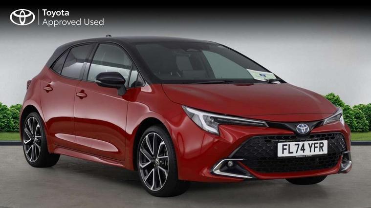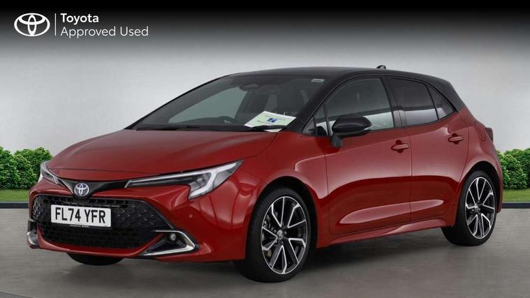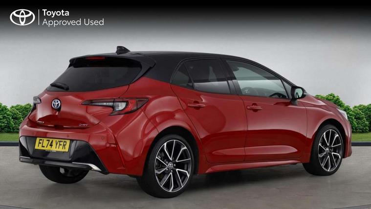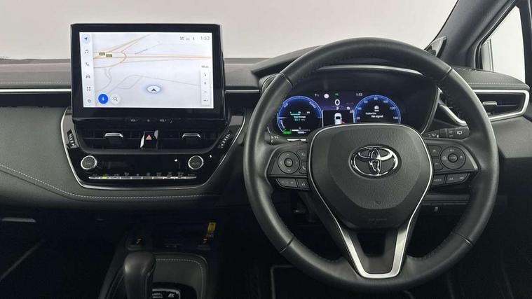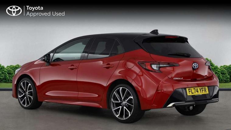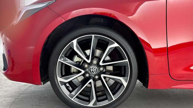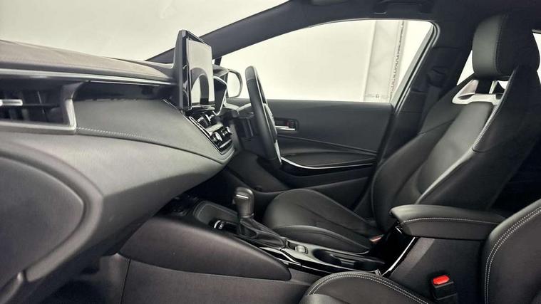 10.5" Multimedia display screen, Blind spot monitor and safe exit assist, Bluetooth telephone connectivity, Connected car functionality upgrade, tracker, remote status and e-care, Drive mode select (Eco, Normal), E-call, Electrically assisted power steering, EV drive indicator, Front and rear parking sensors with auto brake, Full Digital 12.3" TFT Digital Combimeter, Head up Display, Key reminder warning, Lane Departure Alert (LDA) switch on steering wheel, Memory on adjustable speed limiter, MyT connected services, Proactive driving assist (PDA), Rear cross traffic alert, Reversing camera, Smart entry and push button start, Smartphone integration with Apple CarPlay and wired android auto, Tailgate, Toyota remote services, Toyota smart connect navigation, Wireless charger, Gasoline particulate filter, Vehicle Stability Control (VSC), AM/FM radio, DAB Digital radio, Front USB-C in centre console, Front USB-C in dashboard, JBL Premium sound system with 8 speakers, Rear USB-C device charger, Smart voice assist/ Voice recognition, USB and Aux in connectors + 12V front outlet, Adaptive high beam system (AHS), Anti-jam protection on power windows, Auto headlight levelling system, Auto up and down function on all power windows, Automatic folding mirrors, Automatic headlights with high beam assist, Black centre and side air vents, Black metallic meshed front grille, Black toyota logo in front, Body coloured bumpers, Body coloured door mirrors, Body coloured front spoiler, Body coloured outside door handles, COROLLA alloy door scuff plates, Electrochromatic mirror, Follow me home headlights, LED daytime running lights, LED front fog lights, LED High mounted stop light, LED multi beam headlights, LED rear combi lights with LED lightguide, Noise reduction layer on windscreen, Piano black diffuser, Power adjustable heated door mirrors, Power front windows, Power rear windows, Privacy glass with UV filter, Rain sensing wipers, Rear bumper decoration with chrome plated inserts, Rear side wing doors, Rear under guard with chrome ornament, Rear window defogger, Rear window wiper, Reverse tilting door mirrors, Roof spoiler, Satin chrome insert on front air vents, Satin chrome insert on front door assist grips, Satin chrome inserts on rear passenger air vents, Shark fin antenna, Tailgate release with push button, Time adjustment on intermittent wiper, Turning signal integrated indicators in door mirrors, Unique grille pattern, Unique lower skirt, Unique side rocker with black insert, UV-filter on driver and passenger windows, 2 Shopping bag hooks in luggage compartment, 3 rear headrests, 3 seat bench in 2nd row, 3 spoke leather steering wheel with satin insert + gear knob, 4 tie down hooks in luggage compartment, 60/40 split folding rear seat, Adaptive cruise control (ACC) switch on steering wheel, Adjustable speed limiter switch on steering wheel, Audio, multimedia and telephone switches on steering wheel, Black armrest on centre console box, Black gear shift console, Boot light, Boot underfloor storage, Centre room light, Driver and front passenger personal light, Driver and passenger assist grip, Driver and passenger seatback pockets, Driver and passenger sun visor with mirror and light, Dual zone automatic air conditioning with ECO mode switch, Front and rear cup and bottle holders, Front door pockets, Front head restraints, Front passenger seat, Front sliding synthetic leather armrest, Heated seats, Illuminated entry system in room lamp, ISOFIX seat fixing (2 fixings on rear outer seats), Leather gear shift with satin chrome on gear shift console, Manual height adjustable for driver and front passenger seat, Manually tilt with sliding driver and front passenger seat, Nanoe-X air purifier, Paddle shifts, Parcel shelf, Perforated leather upholstery, Pollen filter, Power window switches with satin chrome inserts, Rear air conditioning, Rear armrest with 2 cupholders, Rear passenger coat hooks (2), Remote air conditioning, Satin chrome inside door handles, Satin chrome surround on heater control panel, Satin chrome surround on speedometer, Sliding armrest on centre console box, Slow opening glovebox with lights, Sports seats, Textile floor mats, Tilt/telescopic steering column, Voice recognition switch on steering wheel, Whiplash Injury Lessening (WIL) feature (active headrest) for seats, White ambient lighting on open tray and front cup holder, Toyota safety sense 3 pack - Corolla, 3x3 point rear seatbelts, Adjustable driver and front passenger seat belt extender to top anchor point, Anti lock braking system + Electronic brake force distribution, Brake assist function, Child locks on rear doors, Downhill Assist Control (DAC), Electronic parking brake, Emergency brake light signal (EBS), Front passenger airbag on/off switch, Front seatbelt reminder, HAC - Hill start assist control, Rear seat belt reminder, Seatbelt pretensioners and force limiters, Supplemental restraint system (SRS) 7 airbags - dual driver, dual side curtain, side impact and driver knee airbags, Traction control, Tyre pressure warning system, Acoustic vehicle alert system (AVAS), Alarm with motion sensor and immobilizer, Power passenger window lock, Remote central locking + deadlocks, Satin chrome dash trim, Soft touch texture on upper dashboard, Stitching on lower dashboard, Stitching on upper dashboard, 18" Dark grey machined face 5 double spoke alloy wheels, Tyre repair kit, Unique wheel finish with red wheel cap,