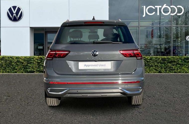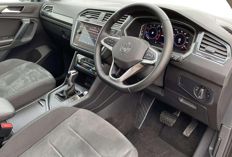 Adaptive cruise control ACC stop and go including speed limiter, App-Connect incl. App-Connect Wireless for Apple CarPlay and Android Auto, Bluetooth phone integration system, Digital Cockpit Pro - Active info display, Distance control assist, Driver alert system, Driver profile selection, Dynamic road sign display, eCall emergency call system, Electromechanical speed sensitive power steering, Engine start/stop button, Lane keeping system Lane Assist, Lights on warning, Motorised electric tailgate operated via key fob, drivers door and foot movement under tailgate, Multifunction front facing camera, Outside temperature display, Premium multifunction display with multi colour display, Remote control boot opening, Rev counter, Revision / skills operating concept travel assistant, Service interval indicator, Speed limit display, Start/stop system with regenerative braking, Tailgate/trunk lid unlocking from outside, Trip computer, Warning sound and light for doors and tailgate open, Battery regeneration during braking, XDS electronic differential lock for improved traction and handling, 2 USB-C ports in the front, 1 USB-C charging socket on the center console in the rear, Diversity antenna for FM reception, Radio, SD card slot, Simultaneous pairing of 2 compatible mobile devices, SMS functionality - read, compose and send SMS messages using touch-screen display, Title and cover art display, Aluminium door sill protectors, Auto dimming interior rear view mirror, Automatic headlight control system, Body colour door handles, Body coloured bumpers, Body coloured door mirrors with integrated indicators, Coming/leaving home lighting function, Dynamic headlight range control, Front and rear electric windows, Heated rear window, High level 3rd brake light, IQ light-Adv high beam, Dynamic light assist for LED matrix headlamp+LED separate DRL+DCL, dark red rear LED tech, Poor weather light+ cornering light, Laminated safety glass windshield, heat and sound insulating, LED rear number plate lights, Poor weather light and cornering light, Privacy glass for rear side windows and rear window, Rain sensor windscreen wipers, Rear exhaust tailpipe, Rear fog lamp, Rear side wing doors, Rear windscreen washer and wiper with interval delay, Side and rear windows in heat insulating glass, Tilting and sliding panoramic sunroof with rear panoramic sunroof, Trailer Stability Programme, Windscreen wipers/ intermittent wipe + 4 position delay, 12V outlet in center console rear and in luggage compartment, 12V outlet in front and tray, 2 cup holders in front, 2 LED front reading lights, 2 LED rear reading lights, 3 bench rear seats in 2nd row, 3 rear headrests, 4 load lashing points, 40:20:40 split folding rear seats, Air Care Climatronic 3 zone automatic climate control with enhanced air filter and controls in the rear, Backrest release for left front seat, Climate control unit rear with touch function, Door and side trim panel in foam film and woven fabric, Front + rear carpet mats, Front centre armrest, Front footwell illumination, Front seats head restraints (x-adjustment), Height adjustable front seats, Height/reach adjust steering wheel, Instrument lighting white adjustable panel illumination, Interior light with delay, Isofix Preparation 2 Rear child seats, Leather gear knob, Lockable cooled glovebox, Luggage compartment lighting, Luggage net, Rear bench seat asymetrically split folding, longitudinally movable and folding with load-through hatch and center armrest, Remote unlocking for rear seat backrest, Removable luggage cover, Removable rear headrests, Safety optimised front head restraints, Single front passenger seat, Sliding/reclining rear seats, Standard rear seat release, Storage compartment in driver's door, Storage compartment in passenger's door, Storage compartment in rear doors, Storage compartments in luggage area left and right, Storage tray on dashboard, Sun visors with illuminated vanity mirrors, Top front comfort seats, Variable boot floor, height adjustable and removable, Ambience pack - Tiguan, Chrome pack - Tiguan, Easy open and close pack with safelock - Tiguan, 3 point seat belt for centre rear seats, 3 point seat belts with seat belt pretensioners for the outer rear seats, Active bonnet, Curtain airbags for front and rear passengers, Driver/Front Passenger airbags, Drivers knee airbag, Electronic parking brake with auto hold, Electronic Stability Control with driver steering recommendation, ABS, ASR, EDL, EDTC and trailer stabilization, Front assist with autonomous emergency braking (for Adaptive Cruise Control ACC up to 130 mph), Front disc brakes, Front passenger airbag deactivation, Front side airbags, Height adjustable front 3 point seatbelts + pretensioners, Hill hold control, Manual child proof rear door locks, Pedestrian monitoring system, Power assisted brakes, Proactive passenger protection system in combination with front assist, Rear disc brakes, Rigid safety cell with front and rear crumple zones, Two tone horn, Warning sound and light for front seat belts if unfastened, Anti theft alarm system with interior monitoring, backup horn and towing protection, Anti theft wheel bolts, Central locking system with safelock radio remote control and 2 remote control folding keys, Electronic engine immobiliser, Tool kit,
