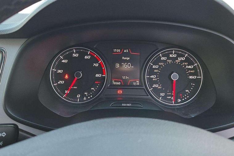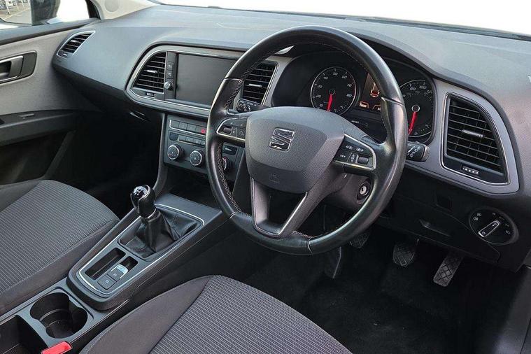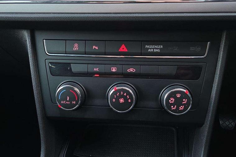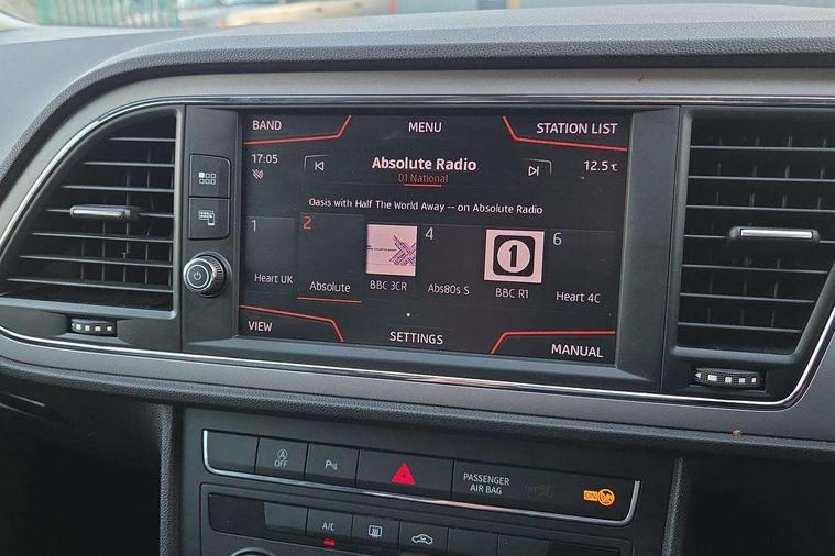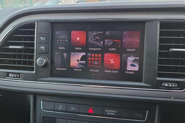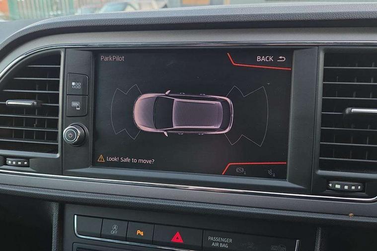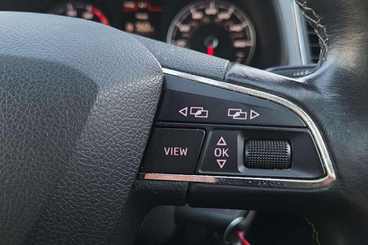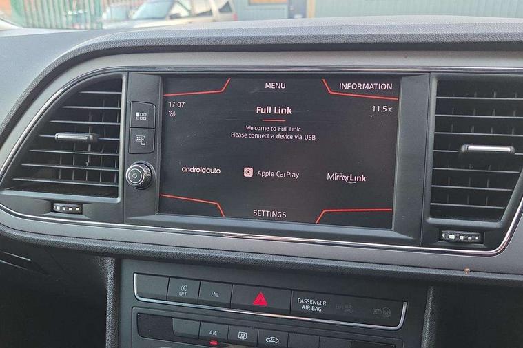 'Lights On' Reminder warning buzzer, 3D map display, 8" touch screen, Bluetooth Handsfree Phone Connection, Electro-mechanical power steering, Front and rear parking sensors, Front assist with pedestrian protection, Full Link Smartphone Integration with Mirror Link, Apple Car Play, Google Android Auto, Low fuel warning light, Navigation system (incl. media system plus), Outside temperature gauge, RPM counter, SEAT logo boot release, Service interval indicator, Trip computer, Voice recognition, Comfort suspension, XDS electronic differential lock, 2x SD card slot, 4 USB, 8 Speakers, Auxiliary input socket, Bluetooth audio streaming, CD player, DAB Digital radio, High resolution colour driver display, Media system plus (incl. media system colour), SEAT USB media cable, Steering wheel mounted audio/phone controls, Black radiator grille, Body colour door handles, Body coloured bumpers, Body coloured exterior mirrors with integrated LED indicators, Chrome roof rails, Chrome-plated radiator grille surround, Dark tinted rear windows, Electric front/rear windows, Electrically adjustable door mirrors, Front fog lights with cornering function, Halogen headlights with small LED daytime running lights, Heated door mirrors, Hidden exhaust pipe, High gloss black finish B and C pillars, Rear wash/wipe, 12v power point in centre console, 60/40 split folding rear seat with armrest, Active front headrests and 3 rear headrests, Additional heating and ventilation outlet in rear of centre console, Air conditioning, Boot storage net, Cargo rings in boot, Double boot floor, Driver and passenger seat height adjust, Driver seat lumbar adjustment, Dust/pollen filter, Front adjustable head restraints, Front armrest with storage box, Front comfort seats in Tresil cloth, Front cupholders x 2, Front seatback storage pockets, Front/rear floor mats, Gear shift indicator, Height/reach adjust steering wheel, High centre console with integrated box & cup holder, rear air outlet, with armrest in front seats, Instrument lighting with brightness control, Leather steering wheel and gear knob, Luggage compartment cover, Luggage tie-down hooks, Rear top tether child seat ISOFIX attachment, Storage box under drivers seat, 3 point seatbelts on all rear seats, 7 airbags - 2 front, 2 front side, 2 curtain, 1 knee, ABS + TCS, Child proof door locks, Electric handbrake, Electronic parking brake with auto hold, ESC with tyre pressure warning indicator, ESP+EBA, Front seatbelt pretensioners, Front seatbelt reminder, Hill hold control, Manual passenger airbag deactivation function, Multi-Collision braking, 2 folding remote keys with window open/close and boot opening function, Central locking fuel filler cap, Engine immobiliser, Locking wheel bolts, Remote central locking + deadlocks, Volumetric alarm with back up horn, Chrome interior detailing, 17" Dynamic alloy wheels 30/3,