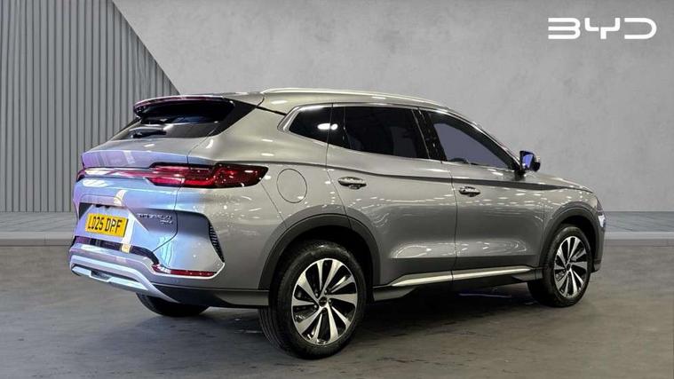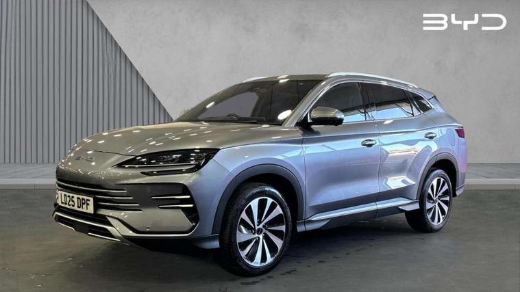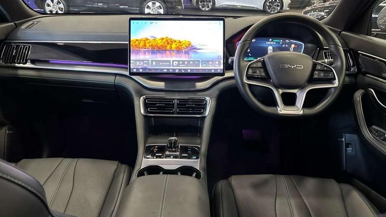 12.3" TFT full LCD instrument panel, 360 camera, Adaptive Cruise Control (ACC) and Intelligent Cruise Control (ICC), Automatic vehicle hold, Blind spot detection, BYD voice control assistant "Hi, BYD", Controller Deceleration Parking (CDP), Drive mode select (Eco, normal, sport, snow), e-Call (emergency call), Electric tailgate release, Emergency Lane Keeping Assist (ELKA), Forward collision warning, Front and rear parking sensors, Front cross traffic alert and front cross traffic brake, Head up Display, Indirect driver fatigue management, Intelligent Speed Limit Control (ISLC), Keyless system entry and start, Lane change assist, Lane Departure Assistant (LDA) and Lane Departure Warning (LDW), Lane departure prevention, PAS, Predictive collision warning, Rear collision warning, Rear cross traffic alert and rear cross traffic brake, Rollover Control System (RMI), Smartphone wireless charging, 2 x 15W, Traffic sign recognition (TSR), Vehicle-to-Load (V2L) function, 11kW on board charger, Mode 3 Type 2 charging cable (3 phase), V2L (Vehicle to load) power strip - Type F, 15.6" Electrically rotatable touchscreen, FM/DAB+ radio, Front USB ports, 1 x 18W Type C, 1 x 60W Type C, Infinity sound system with 10 speakers, Rear USB ports, 2 x 18W Type C, Aluminium roof rails, Auto dimming interior rear view mirror, Auto headlamps (on/off), Dynamic welcome lights, Electric folding and heated door mirrors, Emergency tow hook, Exterior mirror footlights, Follow me home headlights (The headlights turned on in advance and delayed off function), Front windscreen, UV protection, thermal insulation and sound proofing, High beam assist, LED 3rd brake light, LED daytime running lights, LED Headlights, LED taillights, One touch electric front/rear windows with pinch protection, Panoramic sunroof with anti-pinch sensor and electrically adjustable sunshade, Rain sensor windscreen wipers, Rear fog lights, Rear side wing doors, Rear window and rear windscreen with tinted glass, Rear wiper, 12V power outlet, 3 seat bench in 2nd row, 8 way electrically adjustable drivers seat, Adjustable rear headrests, Boot parcel shelf, Driver and passenger sunvisors with illuminated vanity mirrors, Driver seat memory function, Front centre armrest with 2 cupholders, Front LED reading lights, Front passenger seat with 4-way electric adjustment, Front seat footlights, Heat pump, Heated front seats, Heated steering wheel, Integrated headrest in front seats, ISOFIX and i-Size for front passenger and outer rear seats, LED front door lights, Nylon floor mats, PM2.5 air filter, PM2.5 air purification system, Rear air vents, Rear armrest with 2 cupholders, Rear side LED reading lights, Rhythm-reactive multi-colour ambient lighting, Single front passenger seat, Split folding rear seats - 40/60, Vegan leather multifunction steering wheel, Vegan leather upholstery, Ventilated front seats, 3x3 point rear seatbelts, ABS/EBD, Automatic emergency braking system, Brake override system (BOS), Child presence detection, Comfort stop, Door open warning, Driver airbag, Electric parking brake, Force limiting pre-tensioned front seat belts, Front centre airbag, Front passenger airbag, Front passenger airbag deactivation, Front side airbags, Hill descent control, Hill hold control, Hydraulic Brake Assist (HBA), Hydraulic brake boost, Mechanical child safety lock, Rear middle seat force limiting seat belt, Rear seat belt pretensioners, Reflective vest, Side curtain airbags, Traction control system (TCS), Tyre pressure monitoring system (TPMS), Vehicle Dynamics Control System (VDC), Warning triangle, 2 x Smart keys, Anti theft alarm system, Automatic door locking, 19" Bi-colour alloy wheels, Tyre nut covers remover, Tyre repair kit,