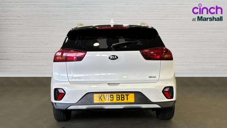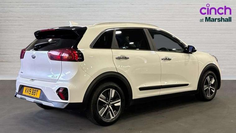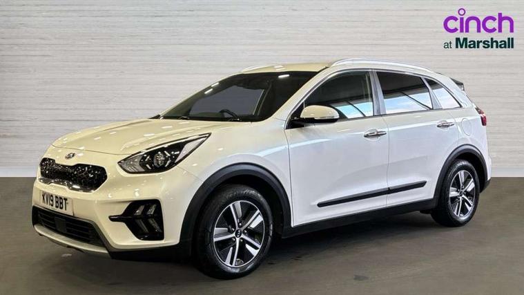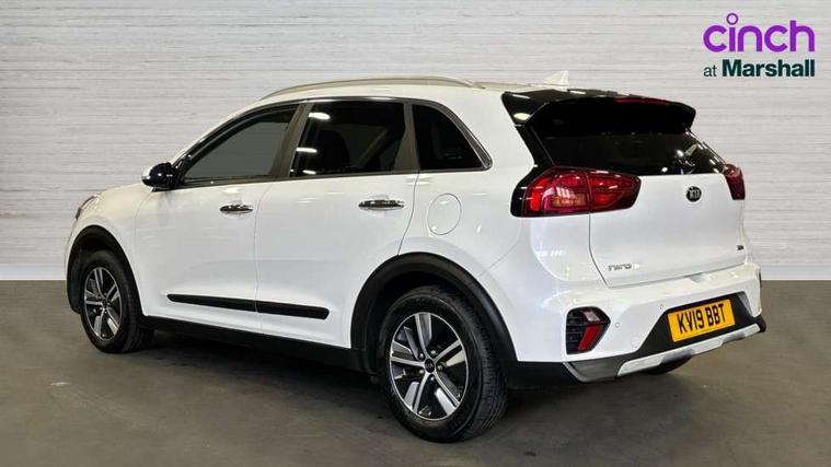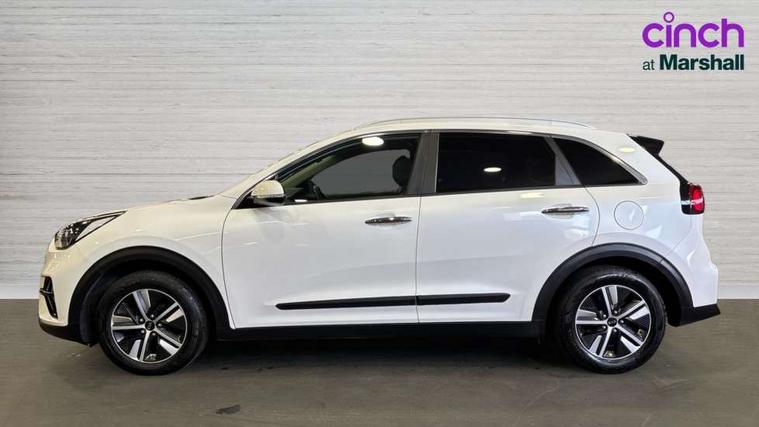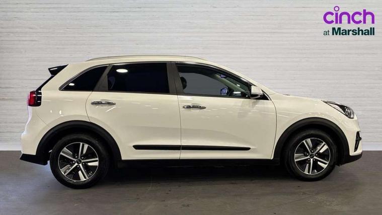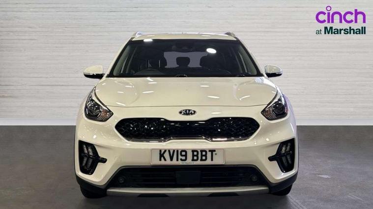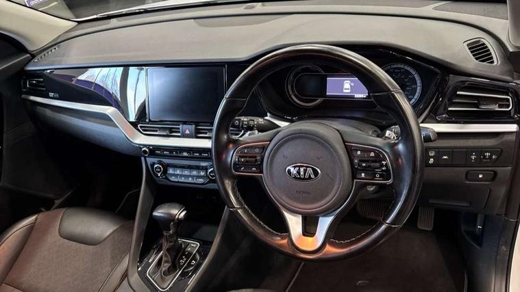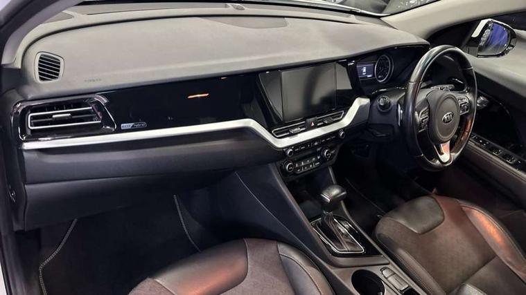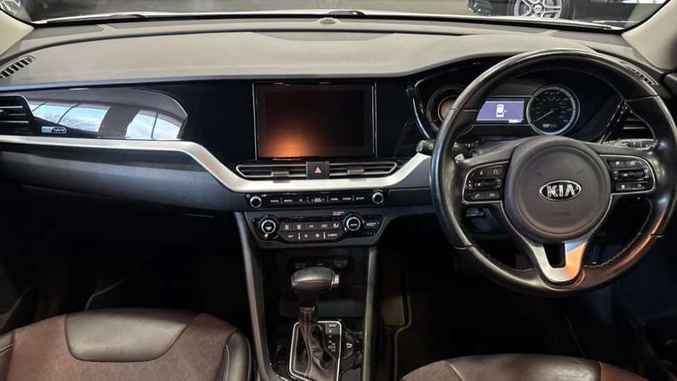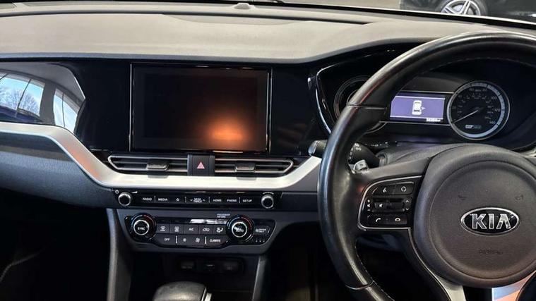 8" touch screen, Apple car play/Android Auto, Bluetooth audio streaming with voice recognition, Colour information display, Digital clock, Drive mode selector, Driver attention warning, Emergency stop signalling system, Forward collision avoidance assist, Kia connected services, Lane Following Assist (LFA), Lane keep assist, Power Steering, Rear parking sensors, Reversing camera, Roll over sensor, Smart cruise control with stop and go functionality, Speed limiter, Trip computer, 'Shark fin' mobile antenna, 4.2-Inch Colour TFT Screen, 6 speakers, DAB Radio with MP3, Steering wheel mounted controls, USB connection located in centre console, USB port, Auto dimming rear view mirror, Automatic defog system, Automatic headlight control system, Black side sills, Body colour bumpers, Chrome beltline trim, Chrome door handles, Chrome grille surround, Driver's side wide angle mirror, Electric adjustable/heated/folding door mirrors, Electric windows + anti trap protection + one touch open/close drivers side, Follow me home headlights, Front fog lights, High beam assist, High gloss black door mirrors, LED daytime running lights, LED indicators in door mirrors, LED tail lights, Manual headlight levelling, Matt black radiator grille, Privacy glass (rear side windows and rear screen), Projector headlamps, Rain sensing front wipers, Rear spoiler, Rear wiper, Roof rails, Solar glass, Wheel arch mouldings, 12V power in rear centre console, 60/40 split/folding 2nd row of seats, Assist grips, Centre console storage box, Door armrest in leather, Driver's seat height adjuster, Driver/passenger sunvisors with illuminated vanity mirrors, Dual zone automatic air conditioning, Front and rear door pockets, Front map light with sunglasses case, Front/rear centre armrests, Gearshift paddles, Headlining in Light grey, Height adjustable headrests, High gloss black steering wheel trim, Illuminated ignition key hole, Isofix child seat attachment, Leather trimmed gearshift, Leather trimmed steering wheel, Luggage area lamp, Luggage compartment cover, Luggage net with hooks, Part leather upholstery, Passenger seat back pocket, Rear armrests with cupholder, Satin chrome interior door handles, Tilt/telescopic adjustable steering wheel, Ventiliation ducts to rear compartment, Towing pack - Niro, 3 point seatbelts on all seats, ABS, Active front headrests, Automatic unlocking of doors in case of impact, Autonomous emergency braking, Curtain airbags, Drivers knee airbag, Electric parking brake with auto hold function, Electronic stability control, Height adjustable front seatbelts, Hill start assist control (HAC), Passenger airbag deactivate switch, Traction control, Twin front and side airbags, Tyre pressure monitoring system, Anti theft alarm system, Deadlocks, Folding key, Immobiliser, Locking wheel nuts, Remote central door locking, Speed sensitive auto door locking, High gloss black centre fascia, High gloss black door inserts, 16" alloy wheels, Tyre mobility system,