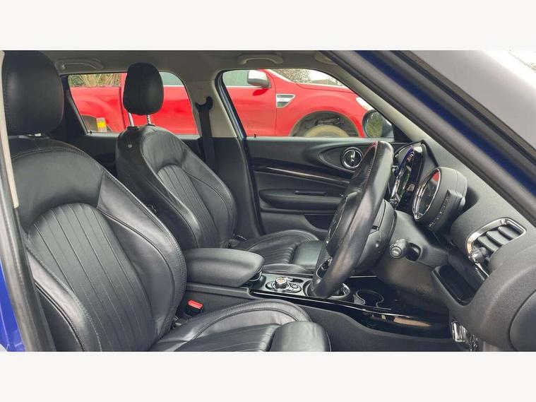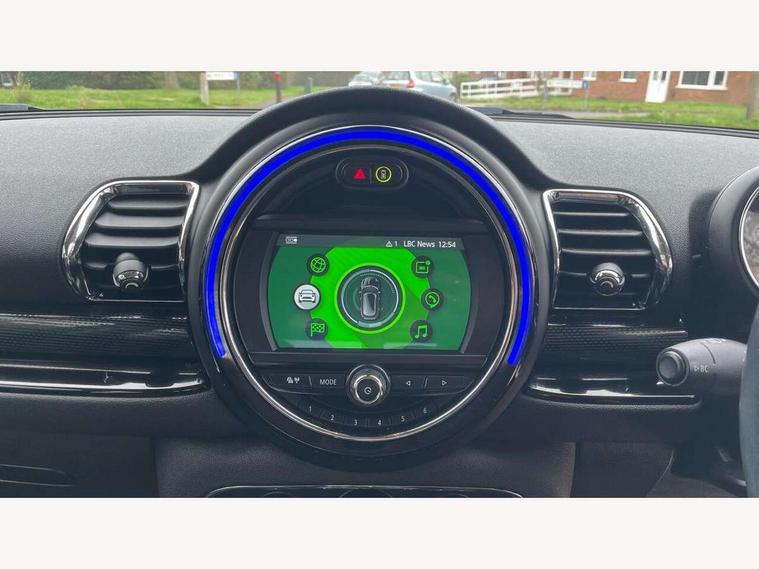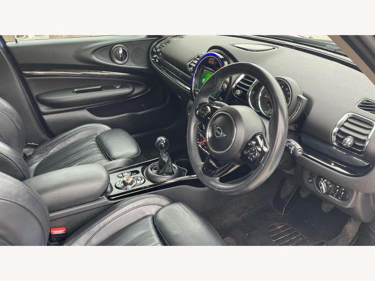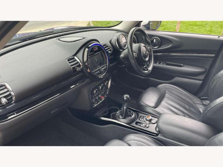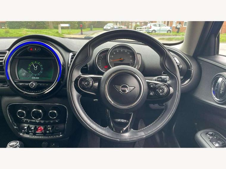 Active Guard incl speed limiting and lane departure functions with auto steering, and front collision warning with brake intervention, Automatic start/stop function with brake energy recuperation, Compatible mobile phone bluetooth with audio streaming, Electro-mechanical speed dependant steering assistance, Instrument cluster, Mini E-call, MINI TeleServices, On board computer, Double Vanos system, Fully variable valve control, High precision injection, FM tuner and DAB digital radio, Body colour fuel filler cap, Chrome line exterior, Door sill strips, Dynamic brake lights, Electric windows, Heated rear window, Heated windscreen washer jets, Left exhaust tailpipe with chrome finisher, Model logo, Model logo on rear doors, Radiator grille, Rain sensor with auto headlights, Rear fog lights, Rear window wiper, Side scuttle panel with integrated indicator, Split rear doors, Sun/heat protection glass, White indicator lenses, 12V Accessory socket in centre console, 360L luggage compartment capacity, 4 lashing eyes in luggage compartment, 60/40 split folding rear seat, Chrome interior highlights, Cupholders, English handbook, Glove compartment, Height and length steering column adjustment, Interior lighting with 12 basic colours selectable via toggle switch in roof, Isofix rear child seat preparation, Leather gearshift lever and handbrake gaiters, LED reading lights, vanity mirror lights, front foot well light and spotlight on front seats, Manual air conditioning, Mechanical seat adjustment, driver seat height adjust, forward/back and front seats backrest, MINI Yours fine walk nappa leather steering wheel with contrast stitching in silver and MINI Yours badge, Multifunction steering wheel, Storage compartments in doors, Sunvisors with vanity mirrors, Toolkit, Excitement pack - Clubman, Navigation pack - Clubman, 2 tone horn, 3 point seatbelts on all seats, 6 Airbags - front, side, head and seat belt tensioners, Anti-lock braking system (ABS), DSC - Dynamic Stability Control, Electronic handbrake, Front and rear disc brakes, Tyre pressure monitoring system, Alarm system with tilt sensor, monitoring doors, bonnet interior and tailgate, Auto drive away locking, Deadlocking function, Electronic vehicle immobiliser, Locking wheel bolts, Start/stop toggle with keyless go, Chrome line interior,