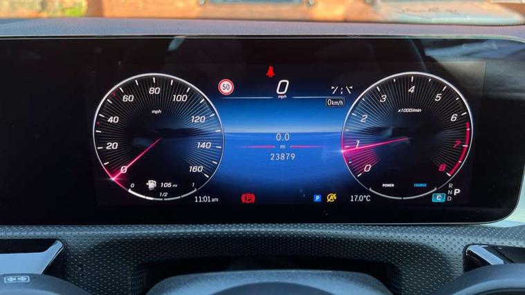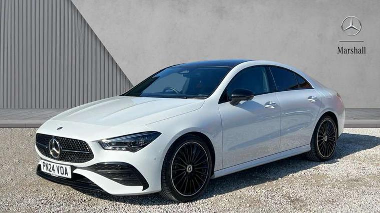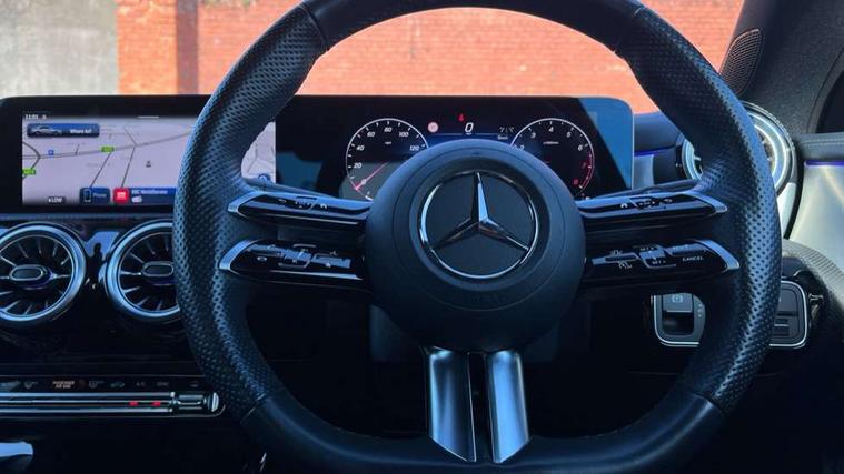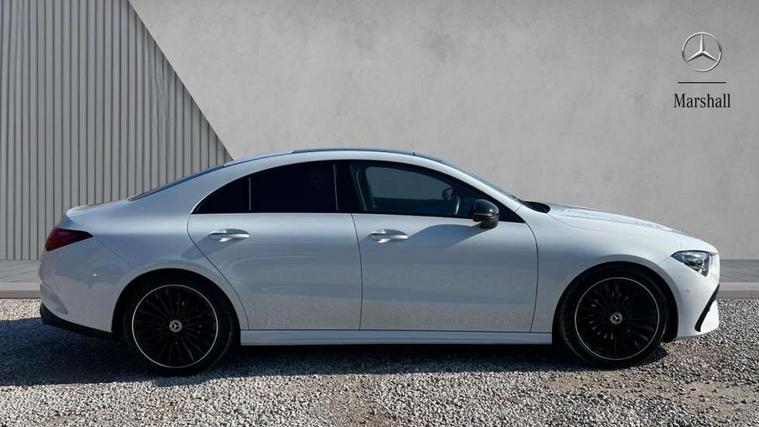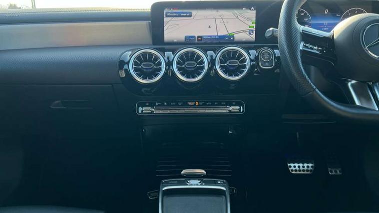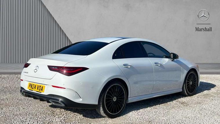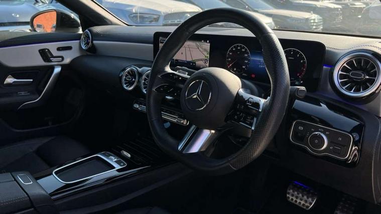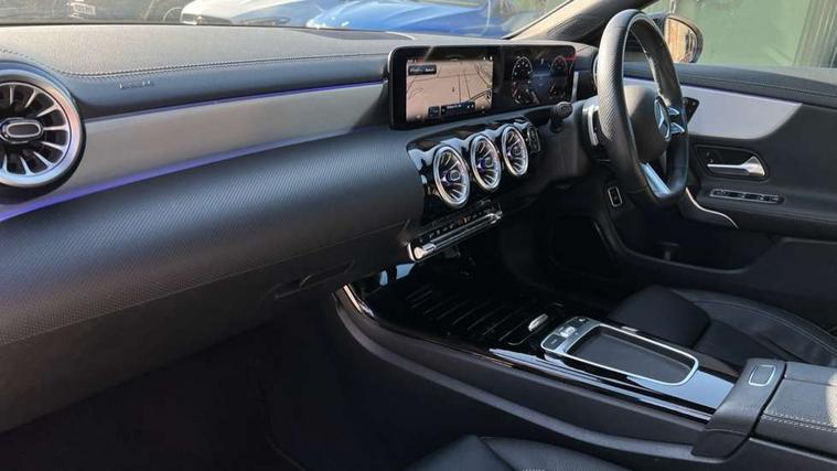 10.25 inch Instrument display with digital cockpit, 10.25 inch touchscreen central media display, Active lane keeping assist, Attention assist - Monitors steering behaviour and long journey fatigue, Bluetooth connection, Car wash mode, Cruise control with limiter, Direct steer system, DYNAMIC SELECT with a choice of driving modes (ECO, Comfort, Sport and Individual), ECO start/stop function, Fluid level warning indicator for fuel, oil, coolant and washer fluid, Hard-disk navigation, Hey Mercedes Voice activation, Lamp failure indicator, MBUX augmented reality for navigation, Mercedes me connect including emergency call system, accident recovery, breakdown and maintenance management, Mercedes me remote services, Outside temperature gauge, Owners manual in English, Pre-installation of private car share, Radio aerial integrated into front and rear windshields, Service indicator (ASSYST), Smartphone integration with Apple CarPlay and Android auto, Traffic sign assist, Trip computer in multifunction display with current consumption indicator, Wireless charging in the front centre console, Comfort suspension with ride height lowering, Rear axle multi-link, DAB digital radio tuner, MBUX multimedia system, Mercedes Benz advanced sound system (225 W) with 10 speakers, 1 central speaker, speakers on doors, a tweeter on door, one sub woofer + boost amplifier, Pre installation for Mercedes Benz Link, Adaptive brake lights, AMG body styling with AMG front apron and rear apron and visible exhaust tailpipe in chrome trim elements, Body colour door handles, Electric panoramic sunroof with automatic tilt and convenience closing fuinctions, rain sensor auto closing and electronic roller sunblind, Electric windows, Electrically adjustable and heated door mirrors with integrated LED indicators, Exhaust system with 2 Visible tailpipe trim elements and rear apron with trim in chrome, Hand free access, Headlamp assist automatic headlamp activation, Heated glass rear windscreen + timer control, High gloss beltline strips, High level LED third brake light, Integrated LED daytime running lights, Interior mirror with black reading lamps and frameless, LED tail lamp, Multibeam LED headlamps with adaptive highbeam assist plus, Privacy glass with dark tinting on rear side windows and rear window, Radiator grille with Mercedes-Benz pattern in chrome and central Mercedes star, single louvre in high-gloss black with chrome inserts, Rain sensing windscreen wipers with two sensitivity settings, Rear boot, Rear fog lamp, Rear side wing doors, Variable front intermittent wipers, 3 seat bench in 2nd row, 3 twin spoke flattened multifunction steering wheel in nappa leather - horizontal twin spoke in high gloss black, vertical twin spoke in silver chrome, 40:20:40 split folding rear seat backrests, Air conditioning - Two zone thermotronic luxury automatic climate control with display, Air vents with surround in silver chrome, Automatic child seat recognition sensor, Black roof lining, Brushed stainless steel sports pedals with rubber studs, Electrically adjustable front memory seats including 4 way lumbar support, Floor mats with stitched AMG lettering, Fluorescent jacket, Front centre armrest with stowage, Galvanished gear shift paddles in silver chrome, Heated front seats, Illuminated front door sills with Mercedes Benz lettering and changeable cover, Interior lighting - 64 colour Ambient lighting, Luggage net on driver/front passenger seat backrest, Manually height and reach adjustable steering column, Rear armrest with two integral cup holders for drinks, Rear head restraints, Single front passenger seat, Sport seats with fixed head restraints, Stowage compartment in centre console with retractable cover, Sunvisors with illuminated vanity mirrors, Twin front cupholders, Two outer rear seat isofix and top tether child seat fixing points, Drive parking assist pack with 360 degree camera - CLA, Keyless go comfort pack - CLA, Light and sight pack - CLA, Mirror pack - CLA, Night package - CLA, Seat comfort pack - CLA, USB package plus - CLA, Active bonnet pedestrain safety measure which detects an impact and raises bonnet by 65mm, Adaptive brake assist with hold function and hill start assist, Anti lock braking system (ABS) with brake assist, Black seat belts, Bonnet with power domes, Brake calipers with Mercedes-Benz lettering, Brake pad wear warning indicator, Childproof locks manually operated for rear doors and electrically operated for rear power windows, Crash responsive emergency lighting, Driver and front passenger head and sidebags, Driver and front passenger windowbags, Drivers knee airbag, Dual stage driver and front passenger airbags, Electric parking brake, Electronic stability programme with acceleration skid control, ESP curve dynamic assist, Exit warning, Front and rear seatbelt reminder, Front passenger seat occupancy sensor, Perforated front brake discs, Sports braking system, Three point rear seat belts, Tyre pressure monitoring system, Warning triangle and first aid kit, Alarm system with immobiliser and interior protection -Thatcham category 1, Guard 360 deg vehicle protection - tow away protection with visual, acoustic warning, interior monitoring, preinstallation for parking damage, Remote central locking and crash sensor with emergency opening function, Light aluminium with longitudinal grain interior trim, 19" AMG multi-spoke black painted light alloy wheels with high sheen rim finish, Summer tyres, Tirefit tyre sealant kit,