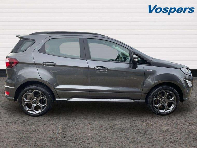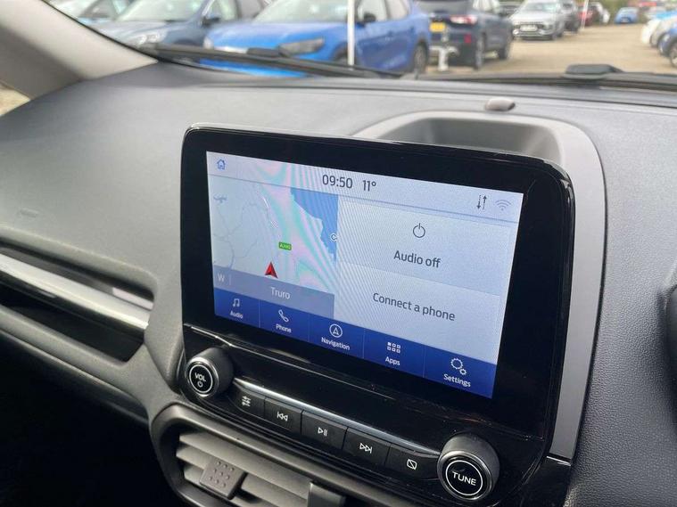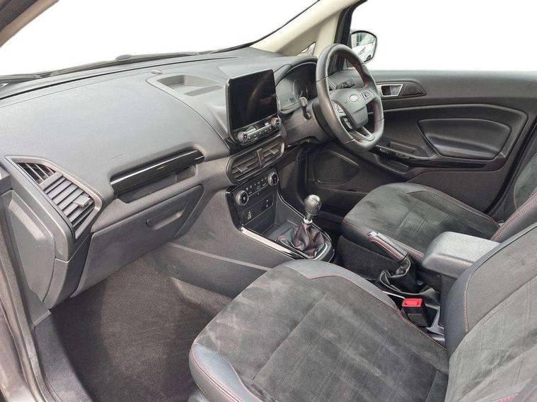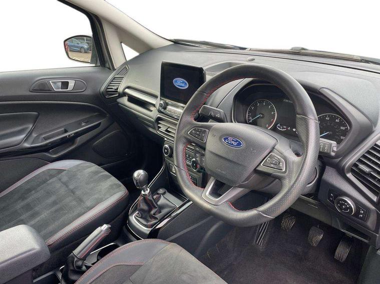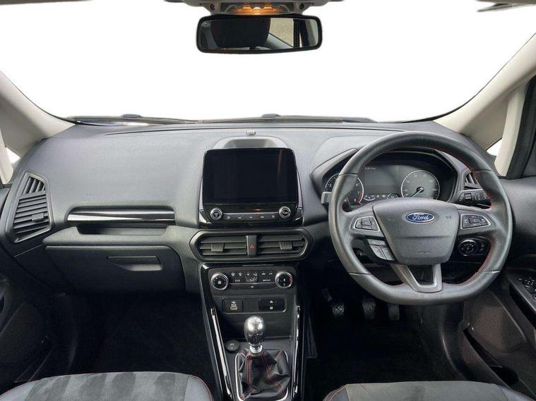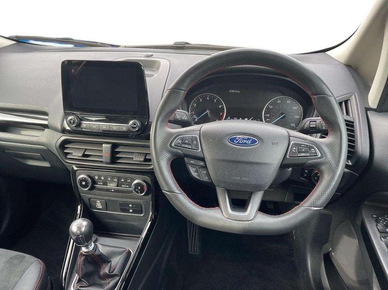 Cruise control, e-Call (emergency call), Easy fuel capless refuelling system, Ford SYNC 3 nav system with DAB radio, 8" screen, emergency assistance, Apple car play/Android auto, 2x USB, 6 speakers, Ford pass connect, Intelligent speed limiter, PAS, Rear parking sensors, Rear view camera, Traffic sign recognition, Trip computer, Sports suspension, Steering wheel mounted audio controls, Auto dimming rear view mirror, Automatic front wipers, Automatic headlights, Black roof rails, Body colour door handles, Body coloured bumpers, Chrome lower window surround, Electrically adjustable and heated door mirrors, Front fog lights, Front grille bars and surround in black, Headlight levelling control, Large rear roof spoiler, LED day running lights, LED third brake light, Power front and rear windows, Puddle lights, Quick-clear heated windscreen, Rear side wing doors, Rear wiper, ST Line body styling kit - Black headlamp bezel, front and rear sport bumpers, body colour lower door claddings, 12V socket in front and rear, 3 seat bench in 2nd row, 60/40 split rear seats, Ambient lighting, Centre console with sliding front armrest, Cooled glovebox, Courtesy lights with map reading light, Driver seat height/lumbar adjust, Driver's side glovebox, Driver/passenger sunvisors and lidded vanity mirrors, EATC - Electronic Auto Temperature control, Folding grab handles, Front head restraints, Front seat back map pockets, Illuminated glovebox, Illuminated luggage compartment, Isofix system on outer rear seats, Luggage compartment carpet, Neosuede/Partial sensico leather upholstery, Overhead console with sunglasses holder, Rake adjustable rear seats, Reach + rake adjustable steering column, Rear headrests, Sensico trimmed steering wheel, handbrake and gearshift gaiter with red stitching, Single front passenger seat, ST-Line Front floor mats with red stitching, Stainless steel sports pedals, Storage drawers under front seats, Tie down hooks, Variable boot floor, 3x3 point rear seatbelts, ABS, Autonomous emergency braking, Child locks on rear doors, Curtain airbags, Driver airbag, Drivers knee airbag, Electronic Stability Programme with hill launch assist, Front passenger airbag deactivation, Front side airbags, Passenger airbag, Pre collision assist system with AEB, Seatbelt reminder for driver and front passenger, Traction control, Tyre pressure monitoring system, Immobiliser, MyKey system, Remote central locking, Thatcham 1 volume sensing alarm, Low rolling resistance tyres, Tyre inflation kit,