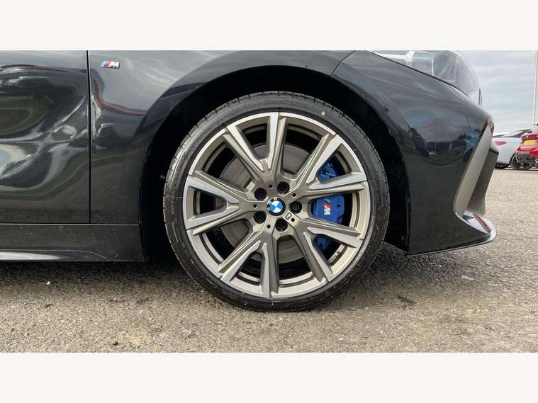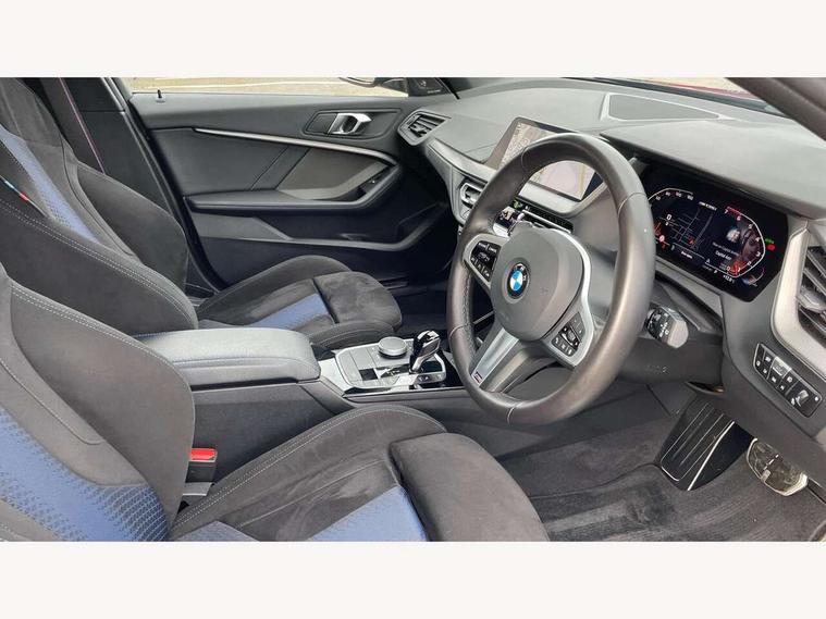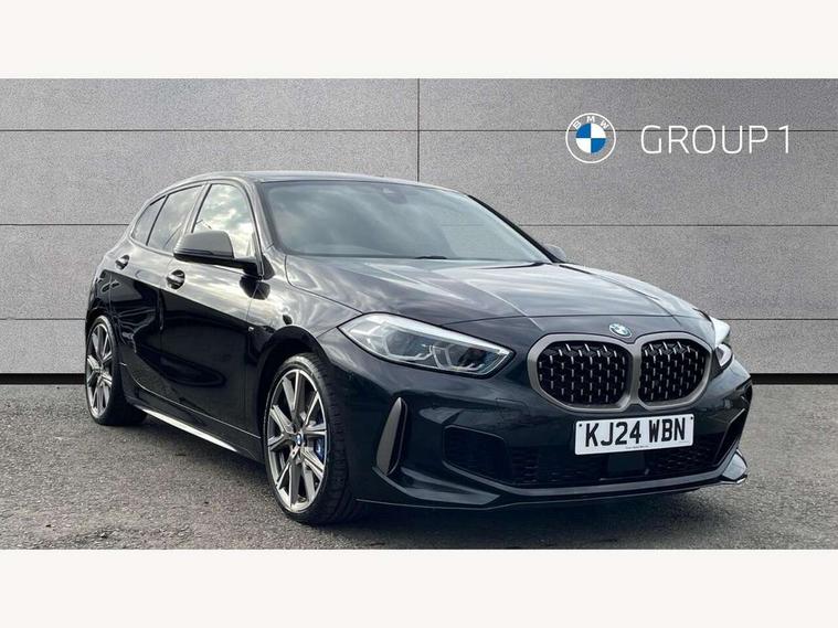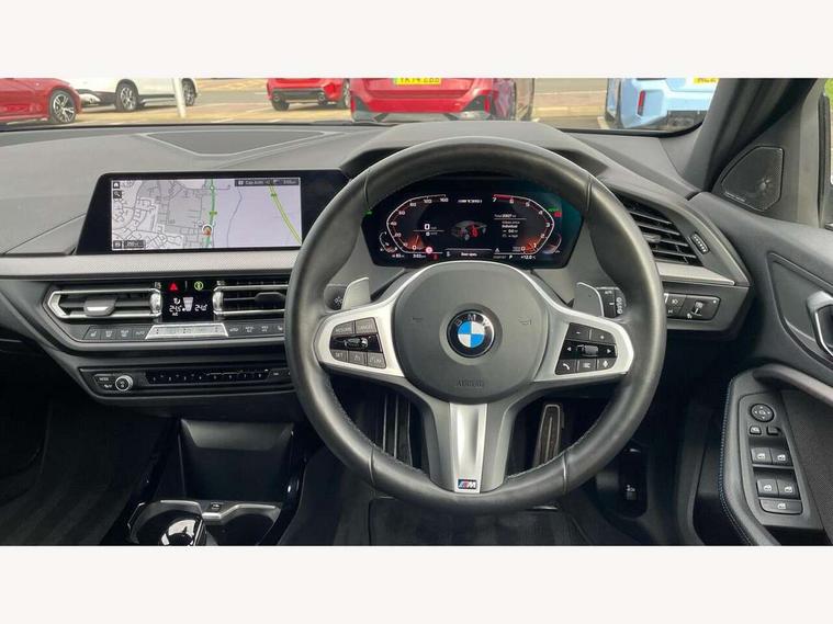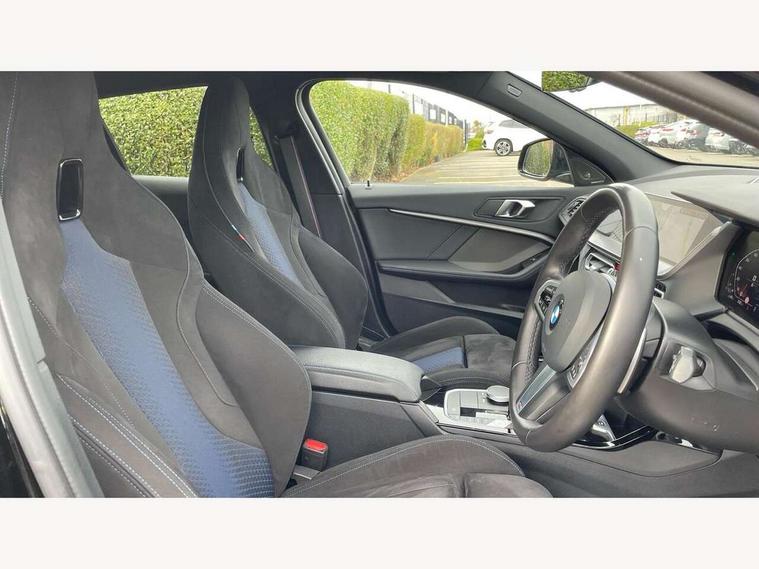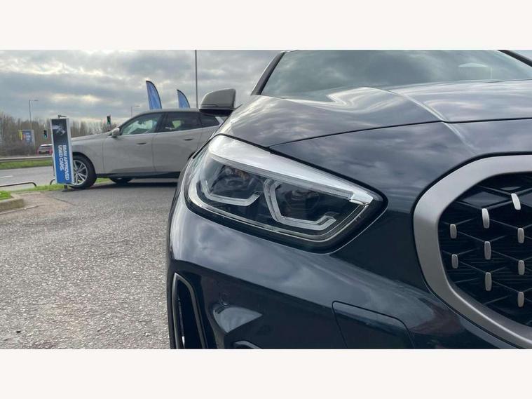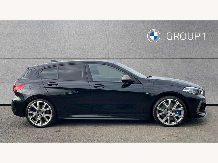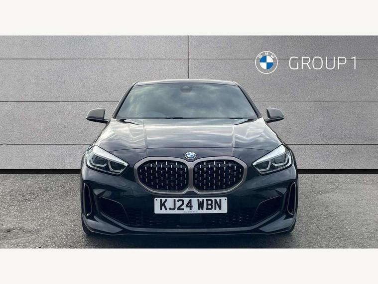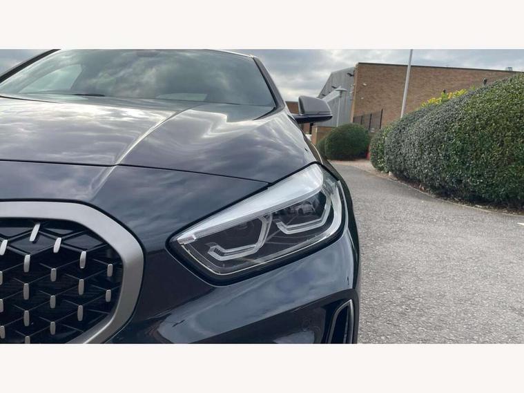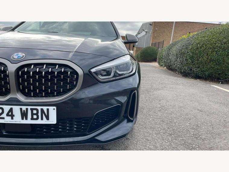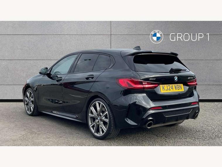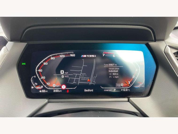Active guard plus, Attentiveness assist, BMW ConnectedDrive online services, BMW Teleservices, Check Control warning system for monitoring of lights and door/luggage compartment open warning, Cruise control with speed limiter, Eco pro mode, Electric power steering, Electro hydraulically controlled multi-plate clutch transfers drive to rear axle and with power take-off device located on the front differential., Energy efficient operating strategy, Front axle single joint with specific axle kinematics to minimise drive influences on steering + provide increased rigidity agile driving behaviour, Gearshift time display in manual mode, Integrated owners handbook, Lane departure warning system, M Sports steering with M135i xDrive specific settings, Oil sensor for level and grade, On board computer, Optimum shift indicator, Personal Profile, Pull away assistant, Rigidly mounted rear subframe - Multi link construction with separate spring / damper configuration and excellent driving characteristics, Speed limit Info including no-overtaking indicator, Sporty fast gear shifting in sport mode, Aluminium lightweight construction, Anti roll bar front and rear, Balancer shaft, Double VANOS, Drive Performance Control, Eight speed sport automatic transmission with gearshift paddle switches, Electronic differential lock, Electronic selector lever, Engine cover with M performance designation, High precision injection, Larger fuel tank capacity (50 litres), Launch control, M135i specific heavily de-throttled engine intake air guide, M135i specific high-performance cooling package, M135i specific larger turbocharger with integrated divert-air valve, Petrol Particulate Filter, Twin tube gas filled shock absorbers with degressive characteristic curve, VALVETRONIC engine management, Variable, stepless and infinitely adjustable distribution of drive torque between the front and rear axles, xDrive intelligent all wheel drive with M135i specific reinforced components, DAB Digital radio, Auto dimming rear view mirror, Automatic headlight beam throw control, Automatic windscreen wipers and automatic headlight, Body colour door handles, Body colour roof trims, Cerium grey exterior mirror caps, Direction indicator side lights in exterior mirrors, Electrically adjustable exterior mirror with mirror adjustment switch on drivers armrest and aspheric on driver side, convex on passenger side, Exhaust tailpipe, Cerium Grey with bevelled finish - twin, round 100mm, left and right split, Fading support, Folding side mirrors with auto dimming/folding wing mirrors with auto dimming, Follow me home headlights, Front and rear bumper system with replaceable deformation elements, Front and rear electric windows with open and close fingertip control, anti trap facility and comfort closing, Front door sill finishers with M135i designation, Green tinted heat protection glazing, High gloss shadowline window frame, Recess cover mirror frames and B/C pillar embelisher trim, High level third brake light, Integrated front windscreen with washer jets, Kidney grille frame in Cerium Grey with Mesh design, LED daytime running lights, LED eyebrow turn indicators, Lightweight engineering, M logo designation side in cerium grey, M Performance exhaust system with valve control and minimised exhaust back pressure, M Performance specific setup, M Sport spoiler, Matt black air guide grilles, Matt black wheel arch trim, Model designation on electric bootlid includes xDrive designation for M135i xDrive, Nearside reverse light in rear light cluster, Preparation for high beam assistant, Rear fog lights, Rear side wing doors, Rear window wiper, Reinforced crank drive, new pistons and adapted con rods, Shark fin antenna, Trailer stabilisation logic, Visible VIN plate, Welcome lighting, 12V power socket in front centre console with blanking plug, 3 rear seat head restraints, 3 seat bench in 2nd row, 3 spoke sports leather steering wheel with black leather and stitching, pearl chrome decorative finish, specific M Badge, Anthracite headlining, Black boot net with lashing eyes, Cargo function on 2nd seat row, Child seat ISOFIX attachment for two outer rear seats and front passenger seat with anchorage points, Conditioned based service, Driver and front passenger backrest net on rear, Driver and front passenger seat heating, Driver side folding compartment in instrument panel, Folding rear clothes hook, Four grab handles integrated in roof lining, Front and rear door pockets with bottle holders, Front and rear side armrest integrated into door trim, Front armrest, Front M sports seats, Glove compartment, Height adjustable front head restraints, Luggage compartment for bag hooks on left and right, foldable luggage compartment liner and four lashing eyelets, Manual adjust steering wheel, Multi-function controls for steering wheel, Single front passenger seat, Storage compartment in centre console, Storage compartment in luggage compartment, Stowage of the parcel shelf in luggage compartment trim, Sun visors with vanity mirrors and insert tab, Two front centre console cupholders, Two zone automatic air conditioning, Type C two USB ports in rear centre console, Velour floor mats, Additional interior lighting pack - 1 Series M135i, BMW live cockpit professional pack- 1 Series, Connected pack professional - 1 Series, Interior lights pack - 1 Series, M Sport exterior styling aerodynamics pack - 1 Series 135i, 2 tone horn, 3 point seatbelts on all seats, front pyrotechnic belt tensioners, stopper and belt force limiters, rear coded belt buckles, Airbags - Front driver/passenger, front and rear curtain head protection, front side, manual deactivation of front passenger airbag, Anti lock braking system (ABS) with brake assist, BMW emergency call, Brake drying, Braking readiness, Child proof locking system in rear door, City braking function, Comfort modes, Cornering brake control, Crash sensor activating of airbags, Unlocking doors, hazard warning lights, interior light