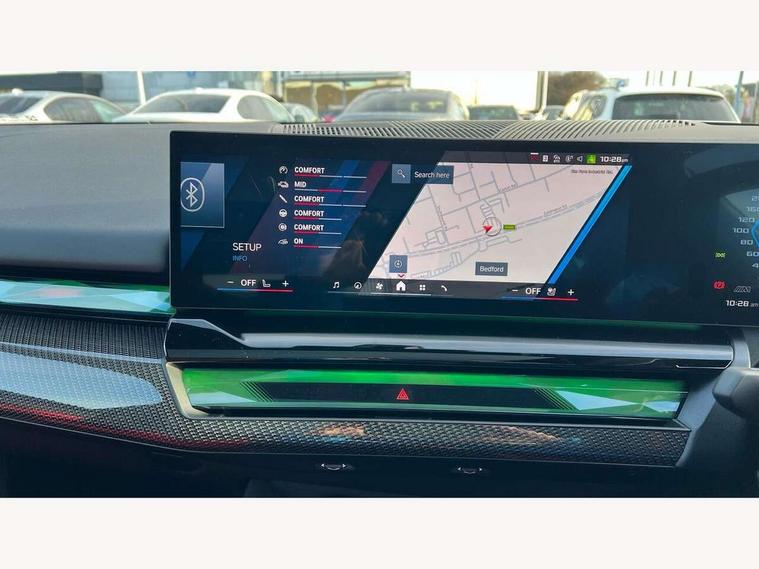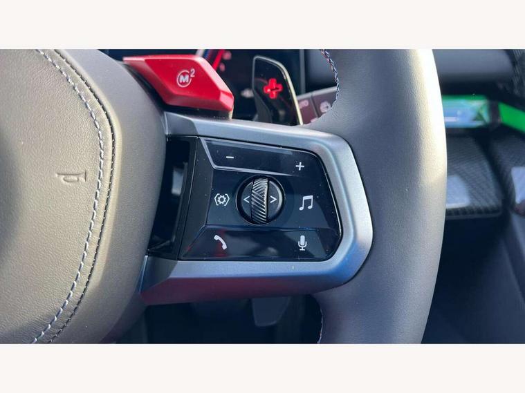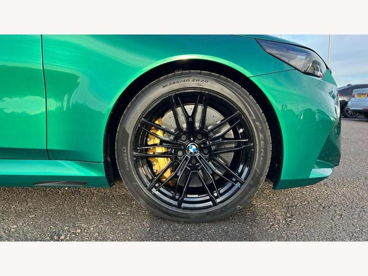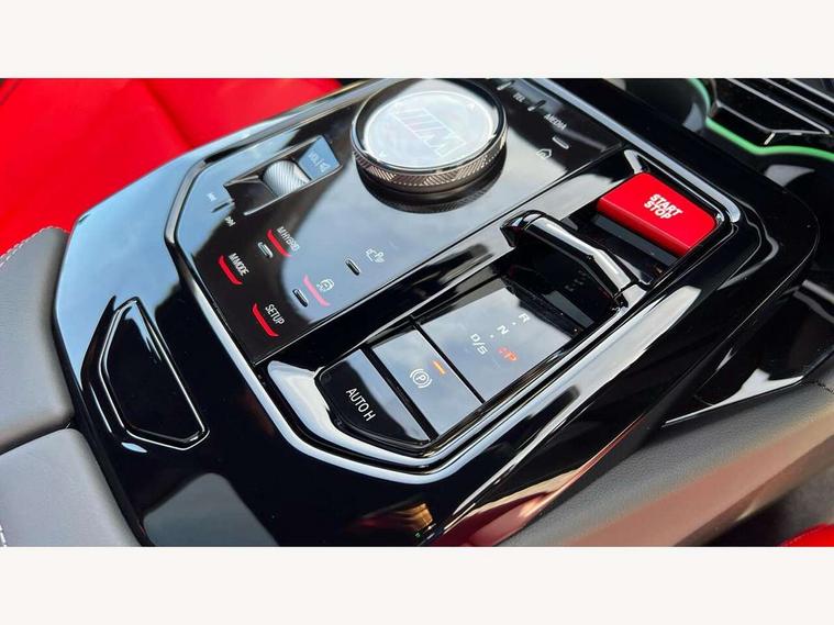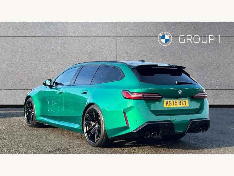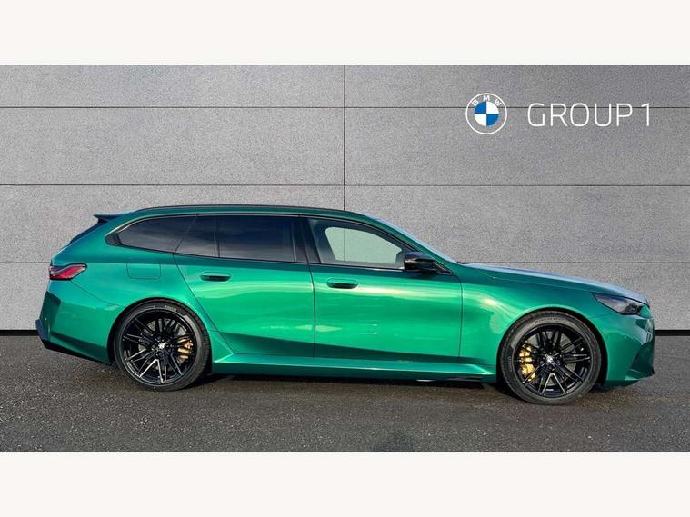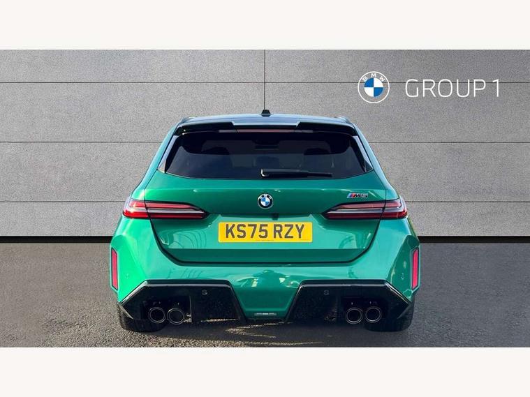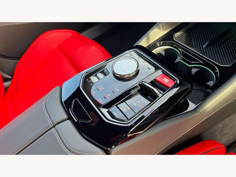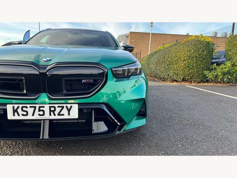 Active Guard, Automatic operation of tailgate with remote opening and closing, Bluetooth Wi-Fi interface, BMW Iconic sounds electric, BMW interaction bar, BMW legal emergency call, BMW Live Cockpit Professional with head up display with driver profile, 4G LTE connectivity, augmented view, full colour head-up display, BMW Teleservices, Connected drive services, Driving Assistant Plus Preparation, M Servotronic steering, Oil sensor for level and grade, On board computer (OBC) includes average speed, fuel consumption and range, journey computer, outside temperature display, personal profile functions, Personal e-SIM, Service interval indicator, AC Fast charging preparation (Maximum charging power 11kW), Adaptive M Suspension with electronically controlled dampers and integral active steering, BMW xDrive system, Charging cable professional (mode 3) for public charging (up to 22 kW), M Drive professional with M track mode, M laptimer, dynamic and dynamic plus, boost control, M Sport differential, Bowers and Wilkins surround sound system, DAB radio, Wireless charging with smartphone storage tray, Adaptive LED Headlights, Auto dimming door mirrors, Black contrast roof, BMW Iconic glow kidney grille, Body coloured bumpers, Electric front and rear windows with fingertip open/close + anti-trap all round and comfort closing function, Heated windscreen washer jets, High beam assistant, High level LED brake light, Interior rear view electrochromatic mirror with automatic anti dazzle function, LED daytime running lights, M lights shadowline, M specific electrically adjustable/foldable/heated exterior mirrors with integrated direction indicators, Rain sensor including auto headlights activation, Rear side hinged doors, Rear wiper, Sun protection glass, 12V power sockets 2 x rear, 1 x luggage compartment (additional 1 X double USB adaptor with 2A charging current), 3 seat bench in 2nd row, 4 zone control automatic air conditioning, Armrest - front and rear integrated door trim, centre console includes storage compartment, rear centre includes 2 cupholders, Child seat ISOFIX attachment with rear outer seats includes top tether, Driver and front passenger lumbar support, Electric seat adjustment with memory, Floor mats in velour, Front ambient light - inside door opener, pull handle, map pocket, curved display, charging tray, cupholder, crystalline glass backlit interaction bar, Glove Compartment with light, Headrests for all seats, Height and length electric adjustment steering column, High-gloss black door switch cluster, power window switch and tailgate button on first and second row seat, M multifunctional seats driver and front passenger with and illuminated M5 logo headrests, M steering wheel with paddle shift, Multifunction controls for leather steering wheel, Rear ambient light - inside door opener, pull handle, map pocket and back panel of front seats, Single front passenger seat, Steering wheel heating, Through loading system with 40/20/40 split folding rear seat, Connected package professional - M5, Exterior design pack - M5, M high gloss Shadowline exterior trim pack - M5, M high gloss shadowline with extended contents pack - M5, Parking assistant plus pack with anti travel recorder - M5, Acoustic protection for pedestrians, Airbag deployment is controlled with respect to the intensity and scope, Anti lock braking system (ABS) with cornering brake control, Automatic door lock when driving away, Brake assist function, Child locks, Crash sensor for activation of hazard warning lights, Driver and front passenger airbags, Driver central airbag, DSC - Dynamic Stability Control, Electromechanical parking brake with automatic drive away release and auto hold function, Emergency brake assist, Head airbags, M Sport seatbelts, PC iBrake PostCrash approah collision warning with braking function, Side airbags for driver and front passenger, Side impact protection, Three inertia reel rear seatbelts, Trailer stability control, Tyre pressure monitoring system, Warning triangle and first aid kit, Alarm system for monitoring doors, engine compartment, interior movement sensor, tilt sensor and siren with emergency power supply, Automatic door locking, Comfort access system with BMW digital key plus, digital key card, smartphone as vehicle key, smart opening/closing, gesturing tailgate, light staging, Interior camera, Locking wheel bolts, Tyre repair kit,