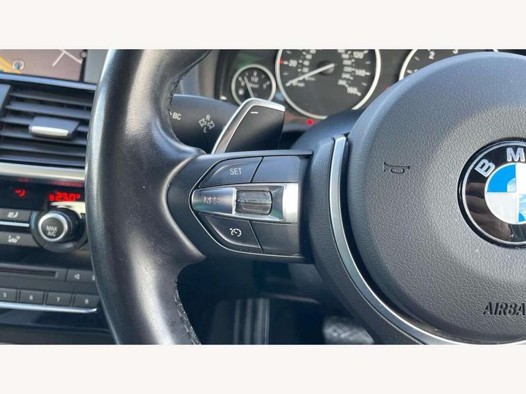 Automatic tailgate operation, BMW Online services, BMW Teleservices, Engine start/stop button, iDrive Controller and Display w/6.5" monitor, On board computer, Variable sports power steering, Diesel particulate filter, Performance Control, Sports function on gearbox with steering wheel mounted gearshift paddles, Auxiliary socket for external MP3 player, Bluetooth audio streaming, BMW professional radio/CD/MP3, DAB Digital radio, Auto dimming rear view mirror, Bi-Xenon headlights with LED day running lights and head light washers, Body colour door handles, Body colour electric adjust heated aspherical door mirrors, Body coloured bumpers, Chrome kidney grille with aluminium vertical slats, Dual chrome exhaust, Fingertip control / anti-trap function on electric window, Follow me home headlights, Front and rear electric windows, Heated windscreen washer jets, Height adjustable headlamps, High gloss shadow line, LED fog lights, M aerodynamic bodystyling, Rain sensor including auto headlights activation, 12V socket in centre console and luggage area, 4 lashing points to secure luggage, Ambient lighting, Anthracite headlining, Anthracite Velour floor mats, Centre console storage tray, Cupholders in centre console, Driver/passenger sunvisors with ticket holders + illuminated vanity mirrors, Dual zone automatic air conditioning, Folding grab handles with rear coat hooks, Front centre armrest with storage compartment, Front footwell lights, Front sports seats, Front/rear courtesy lights with soft on/off dimming, Front/rear reading lights, Heated front seats, Height adjustable front seats, Height adjustable front/rear head restraints, Illuminated glovebox with lock, Isofix rear child seat preparation, Luggage area underfloor compartment, M leather multifunction steering wheel, Nevada leather upholstery, Rake/reach adjustable steering wheel, Rear armrest, Removable / retractable luggage cover, Storage pockets - front doors, Through loading system with 40/20/40 split folding rear seat, 3 rear 3 point seatbelts, ABS/EBD, Automatic Stability Control (ASC), BMW emergency call, Child locks on rear doors, Cornering brake control (CBC), Crash Sensor - activates hazard/interior lighting + unlocks doors, Driver/front passenger airbag, Driver/front passenger side airbags, DSC - Dynamic Stability Control, Dynamic brake control, Dynamic Traction Control - DTC, Electromechanical parking brake, Front and rear head airbags, Front passenger airbag deactivation, Hill descent control, Hill start assist, Inertia reel front seatbelts+pretensioners, Tyre pressure monitoring system, Warning triangle and first aid kit, Engine immobiliser, Locking wheel nuts, Remote central locking, Remote control Thatcham category 1 alarm, Centre instrument panel in high gloss black, Run flat tyres,
