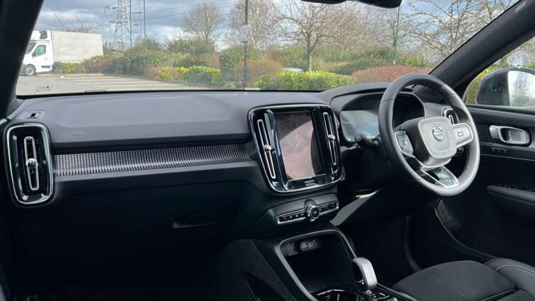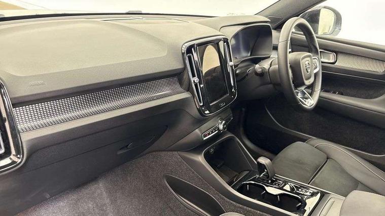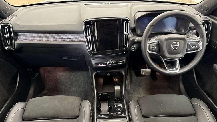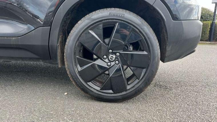 12.3" Progressive Driver Display, 9" centre console portrait touch screen, Adjustable steering wheel force, Android auto (Wired), Apple carplay (wired), Bluetooth handsfree system, Driver alert control, Driver assistance (pilot assist and adaptive cruise control), Driver awareness - Blind spot information system with steer assist, cross traffic alert with autobrake and rear collision warning and mitigation, E-call, Front park assist, Google automotive services - Enabled entertainment apps, navigation with google maps, voice recognition with google assistant, Hands free power tailgate, Intelligent speed assistance, Lane keeping aid, Oncoming Lane Mitigation, Rear park assist, Speed sensitive steering, Volvo cars services with app - Driving journal, emergency and breakdown call, engine remote start, remote door locking/unlocking and vehicle dashboard, Wireless/Inductive Mobile Phone Charging, Automatic transmission with start/stop and manual change functions, Dynamic chassis, DAB Digital radio, Steering wheel mounted remote controls, Adaptive brake lights with high level LED brake lights, Auto dimming feature for exterior door mirrors, Auto dimming interior mirror, Automatic headlamp levelling, Automatic LED Headlights + Active high beam incorporating daytime running lights, Colour coordinated auto folding and heated power door mirrors, Dark tinted windows - rear side windows and rear screen, Front aluminium tread plates, Front and rear electric windows, High gloss black front and rear skid plate, High gloss black front bumper deco, High gloss black front grille strikethrough and ironmark, High gloss black rear model, engine and volvo logo badges, High gloss black window trim, Home safe and approach lighting, Integrated roof rails in high gloss black, LED front fog lights, Puddle lights, Rain sensor with automatic windscreen wiper activation, Rear side wing doors, Rear wiper, Roof antenna, Roof spoiler, Visible VIN plate, 12V socket in front tunnel console and luggage compartment, 2-Zone electronic climate control with CleanZone air quality system and pollen filter, 3 seat bench in 2nd row, 3 Spoke tailored steering wheel with chrome trim, 60/40 versatile split folding rear seat, Centre console cupholders and storage, Charcoal headlining, Connect textile/microtech upholstery, Flexible load floor and grocery bag holder, Floor mats, Front cabin courtesy lights, Front door pocket, front cupholder, ambient front door, rear reading, rear courtesy, instrument panel and tailgate lighting, Front footwell illumination, Front headrests, Front reading lights, Front seat cushion extensions, Front side step illumination (under door), Glovebox bag hook, Heated front seats, Height adjustable passenger seat, Height/reach adjustable steering column, High gloss centre tunnel deco, Illuminated glovebox, Illuminated luggage compartment, Illuminated vanity mirrors + ticket holder, Integrated waste bin, Isofix attachments on outer rear seats, Load cover, Load protection net, Multi directional lumbar support for driver and passenger seat, Power driver seat with memory + exterior mirrors memory, Rear armrest with cupholders, Rear headrests, Single front passenger seat, Underfloor cargo storage, Climate pack without heated front seats - XC40, 3x3 point rear seatbelts, City safety with steering support with Pedestrian + cyclist + front collision warning with full auto brake and rear auto brake, Driver and passenger airbags, Drivers knee airbag, Electronic parking brake with auto hold, First aid kit, Front and outer rear seatbelt reminder and pretensioners, Front seats SIPS airbags, Hill descent control, Hill start assist, Inflatable curtain, Passenger airbag cut-off device, Power child locks on rear doors, Road sign information display, Run off Road Protection, SIPS (Side Impact Protection System), Slippery road and hazard light alert, Stability and Traction Control with Spin control, Engine Drag Control and Corner Traction Control, Tyre pressure monitoring system, Vehicle deceleration control with Anti-lock Brake System, Electronic Brake Distribution and Emergency Brake Assist, Warning triangle, WHIPS whiplash protection system - front, 2 x Key integrated remote control central locking including with deadlocking system and auto open/close windows, Anti-theft alarm including immobiliser/volume sensor + level sensor, Keyless drive includes keyless entry and keyless start, Locking wheel nuts, 20" 5 spoke high gloss black alloy wheels,