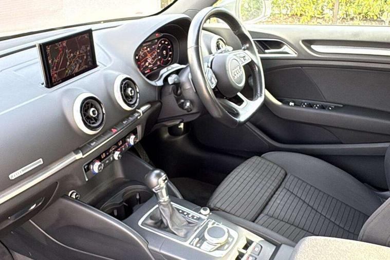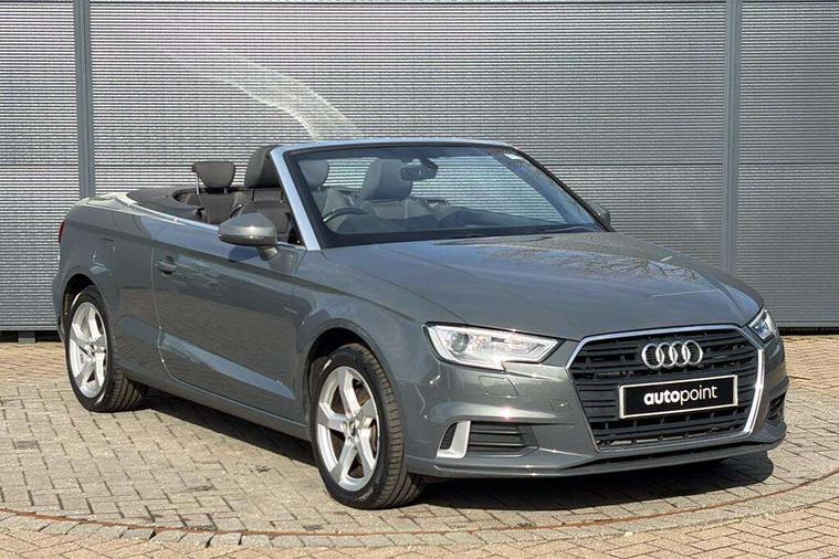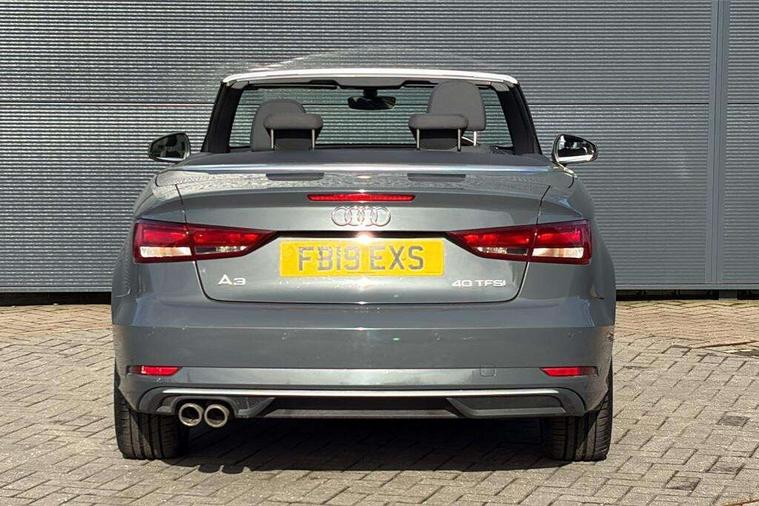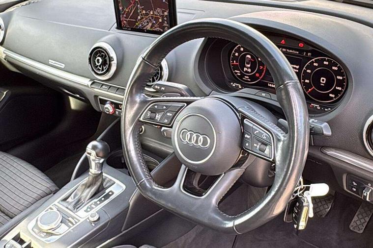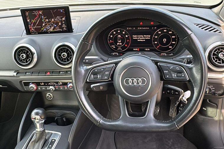 Audi drive select, Audi smartphone interface, Automatic start/stop system, Bluetooth interface, Colour driver's information system display, Electro-mechanical PAS, SD card based MMI navigation, Service interval indicator, 2 USB ports, Audi music interface, Auxiliary input socket, CD player, DAB Digital radio, MMI radio plus with 7" colour MMI screen and MMI controller, Aluminium side window trim, Auto dimming rear view mirror with light and rain sensors, Automatic lights and wipers, Body colour bumpers, Body colour door mirrors with integral indicators, Chrome exhaust tailpipes, Electric operated/heated door mirrors, Front and rear electric windows, Fully automatic acoustic hood, Heated front windscreen, Heated rear window, Heated windscreen washer jets, LED daytime running lights, Roof spoiler, Sport specific side air inlet grille and diffuser insert, Xenon headlights, 2 height adjustable rear headrests, 4 lashing points to secure luggage, 50/50 split folding rear seat, Adjustable front armrest, Aluminium door sill trims, Driver/passenger sunvisors, Dual zone electronic climate control, Front sports seats, Front/rear floor mats, Height adjustable front seats, Height/reach adjustable steering column, Illuminated glovebox, Isofix child seat preparation, Storage box under drivers seat, Storage compartment in centre console, Storage compartments in doors, Light and rain sensor pack - A3 Cabriolet, Non smoking pack - A3, 2 x 3-point rear seatbelts, 3 point front seat belts, ABS/EBD, Active bonnet, Active front headrests, ASR, Automatic roll over protection, Driver and passenger side airbags, Driver/Front Passenger airbags, Drivers knee airbag, EDL, Electromechanical parking brake, ESC - Electronic Stability Control + traction control, Front passenger airbag deactivation, Hill hold assist, Seatbelt warning, Tyre pressure monitor, Warning triangle and first aid kit, Anti theft alarm, Anti-theft wheel bolts, Immobiliser, Remote control central locking, Aluminium air vent surrounds, Aluminium mistral silver inlay, Aluminium trim elements, Space saver spare wheel, Tool kit,