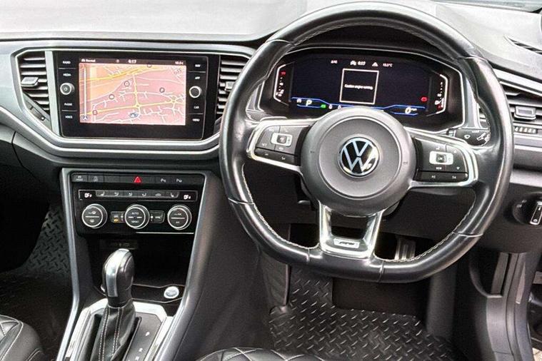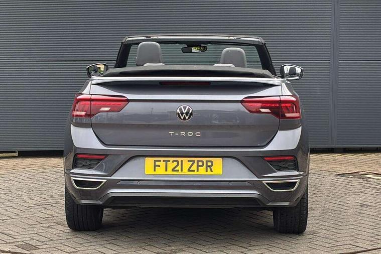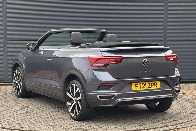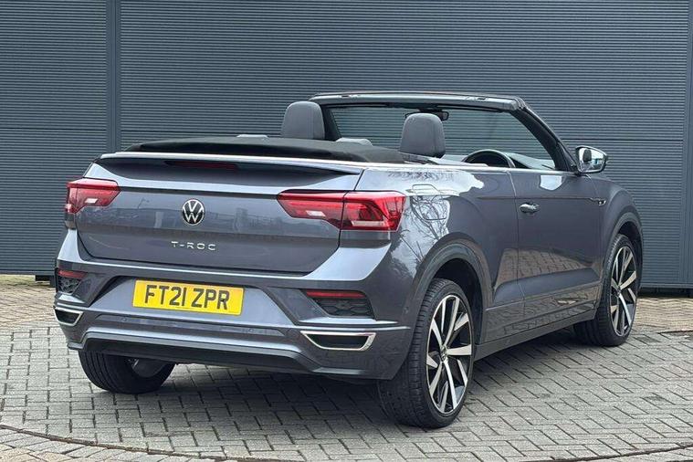 8" colour touch screen, Active Info display 10.25" high resolution TFT dash display with customisable menu and information, Adaptive cruise control, Bluetooth telephone and audio connection for compatible devices, Brake pad wear indicator, Car information display, Car-Net Security and Service, Driver alert system with fatigue detection, Driver tips and journey analysis, Dynamic road sign display, Emergency call service, Lane assist with warning text instrument cluster, Mobile phone interface, Modified key software - reduce switch off time for key status change to Long no motion, Multifunction computer with visual gear change recommendation for fuel consumption, Navigation system discover media including streaming and internet, Online services, Progressive power assisted steering, Speedo and rev counter, electronic odometer, trip, service interval display, digital clock and fuel gauge, Start/stop system with brake energy recovery, Tailgate/trunk lid release from outside, Warning sound and light for front seatbelts unfastened, Wired and wireless app connect, Bluetooth - Simultaneous pairing of 2 compatible mobile devices, DAB Digital radio, Diversity antenna for FM reception, Music playback - MP3, WMA and AAC files, SMS functionality - read, compose and send SMS messages using touch-screen display, Title and cover art display, USB-C Interface and USB charging socket, WeConnect plus, Auto dimming interior rear view mirror, Automatic coming/leaving home lighting function and daytime running lights, Automatic hazard lights activation under emergency braking, Body colour rear roof spoiler, Body coloured exterior mirror housings and door handles, Chrome effect left and right trapezoid exhaust tailpipe fascia surround, Chrome trim on upper and lower radiator grille, Darkened LED tail lamp, Dusk sensor, Dynamic headlight range control with self adjusting whilst driving, Electrically power adjustable, heated, folding, auto dimming, front passenger exterior door mirror lowering function, Front and rear electric windows, Front fog lights with static cornering function, Heat insulating glass windscreen, High level 3rd brake light, LED darkened rear light clusters, LED headlamps with automatic range adjustment and unique signature LED separate daytime running lights, LED rear number plate lights, LED tail lamp rear comination lamps, Power operated canvas convertible top, R-Line design body coloured bumpers, Rain sensor, Rear exhaust tailpipe, Rear fog lamp, Volkswagen roundel, Windscreen wiper with intermittent wipe light, 12V socket in centre console storage area, 2 front reading lights, 3 spoke leather wrapped multifunction sport steering wheel, 50/50 rear seat bench split folding rear seat backrests, Activated charcoal canister for intensified evaporation system, Chrome plated surround to light, mirror and window switch, Climate control - 2 zone electronic air conditioning with automatic air recirculation and allergy filter, Door and side trim panel in foam film, insert in leatherette, Entry aid easy entry (Front folding seats), Front + rear carpet mats, Front centre armrest, Front cupholders x 2, Front seat back storage pockets, Front sports comfort seats with manual height adjustment, Glove Compartment with light, Height/reach adjust steering wheel, Illuminated vanity mirrors in sun visors with air bag label on sun visor and b-pillar, Instrument lighting, white adjustable panel illumination, Interior light delay, Interior light in footwell, Isofix easy fit child seat preparation for 2 outer rear seats, Luggage compartment lighting, Power adjustable lumbar support in front, Rear head restraints, Scuff plates in door apertures, Stainless steel pedals, Storage compartments in driver and front passenger doors, Unique R Line door sill protectors, White ambient lighting, 2 x 3-point rear seatbelts, ABS, Autonomous emergency braking, Driver and front passenger safety-optimised head restraints, Drivers and front passengers airbags with passengers deactivation switch, Drivers seatbelt reminder, Electronic parking brake with auto hold, Electronic stability control (ESC) includes ASR, EDL, EDTC and trailer stabilisation function, Front assist with city emergency braking and pedestrian monitoring, Pedestrian monitoring, Predictive pedestrian protection, Rigid safety cell with front and rear crumple zones, Side airbag/thorax airbag system, for front passengers, Single tone horn, Three point height adjust front seatbelts + pretensioners, Tyre pressure loss indicator, Tyre pressure monitor, Ventilated front and rear disc brakes, Volkswagen roadside assistance, Alarm with interior protection and deactivation via infotainment system, Electronic engine immobiliser, Shadow steel matt decorative inserts in dash and door panel,