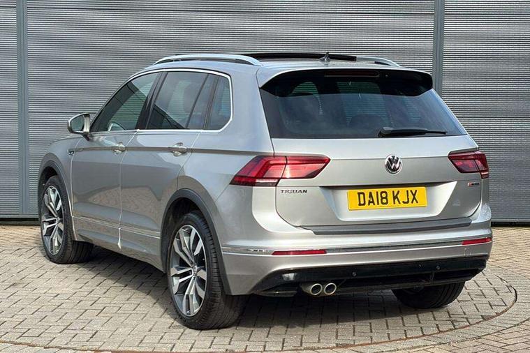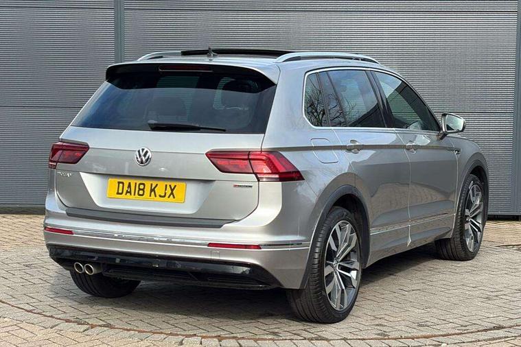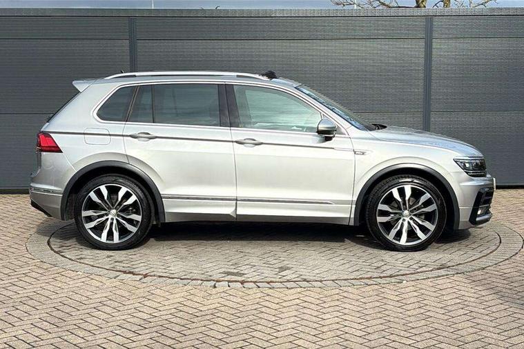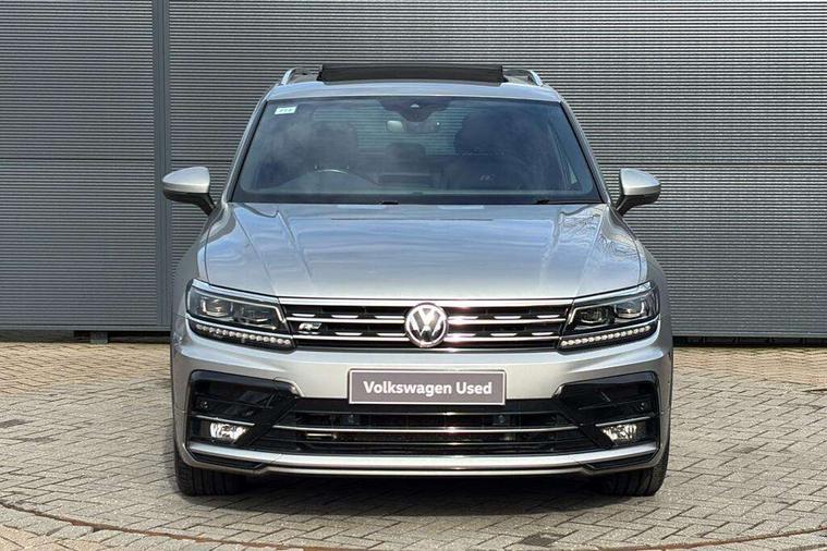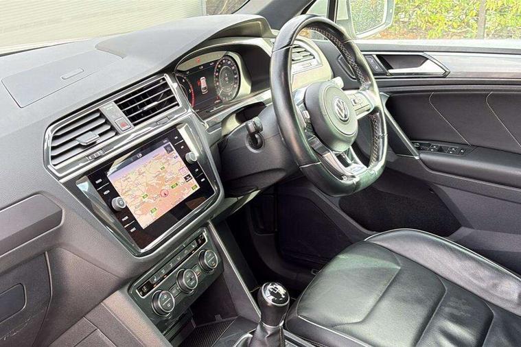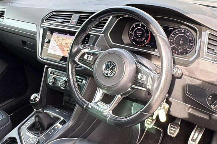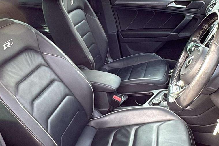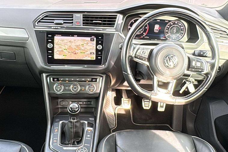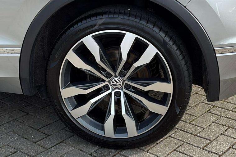 Active information display, Adaptive cruise control, App-Connect, Bluetooth phone integration system, Distance control assist, Drive mode selector, Driver profile selection, Fatigue detection system, Instrument cluster, Lane assist, Low washer fluid warning light, Outside temperature display, Progressive power assisted steering, Service interval indicator, Speed limiter, Warning lights, Diesel particulate filter, XDS electronic differential lock, 2x USB sockets in front, Aux-in socket, DAB Digital radio, MP3 compatible single CD player, SD card slot, Auto dimming interior mirror, Automatic activation of hazard warning lights, Body colour door handles, Body colour door mirrors, Body colour rear spoiler, Body colour side skirt, Body coloured bumpers, Chrome side window surrounds, Chrome trimmed radiator grille, Coming/leaving home lighting function, Dusk sensor + auto driving lights, Electric folding door mirrors, Electric heated + adjustable door mirrors, Electric panoramic sunroof with sunblind, Front and rear electric windows, Heated rear window, LED headlights with dynamic light assist daytime running lights and cornering front fog lights, LED rear lights, Piano black rear diffuser, R Line body kit, Rain sensor windscreen wipers, Rear windscreen washer and wiper with interval delay, Silver roof rails, Silver under body guard, Tinted windows (B pillar backwards), Windscreen wipers/ intermittent wipe + 4 position delay, 12V Accessory socket in centre console, 3 rear headrests, 3 zone climate control, 4 load lashing points, 40:20:40 split folding rear seats, Bag hook in luggage compartment, Black headlining, Driver + front passenger lumbar support, Foldable passenger seatback, Front + rear carpet mats, Front centre armrest with 12v socket, Front centre armrest with storage + rear 2 air vents + cupholders, Front seatback folding tables, Height/reach adjust steering wheel, Illuminated driver/passenger vanity mirrors, Illuminated scuff plates, Interior light with delay, Isofix Preparation 2 Rear child seats, Leather gear knob, Leather multifunction steering wheel, Load through provision with 2 cupholders when folded, Lockable cooled glovebox, Luggage compartment lighting, Luggage compartment side storage, Map pockets on front seats, Passenger seat height adjuster, Rear cupholders, Removable luggage cover, Sliding/reclining rear seats, Stainless steel pedals, Storage compartment in driver's door, Storage compartment in passenger's door, Storage compartment in rear doors, Storage tray on dashboard, Sunglasses storage, Variable boot floor, Ambient lighting pack - Tiguan, 3 rear 3 point seatbelts, ABS+EBD+Brake assist, Active bonnet, Active pedestrian safety system, Curtain airbags, Driver/Front Passenger airbags, Driver/Passenger whiplash optimised head restraints, Drivers knee airbag, DTC - Drag torque control, Electronic parking brake with auto hold, ESP with EDL + ASR, First aid kit, Front assist including city emergency braking, Front side airbags, Head airbag system, Height adjustable front 3 point seatbelts + pretensioners, Hill hold control, Passenger airbag deactivate switch, Passenger knee airbag, Pre crash system, Rear side airbags, Seatbelt warning lamp and buzzer, Two tone horn, Warning triangle, Alarm with interior protection, Electronic engine immobiliser, Remote central locking with 2 remote folding keys, Aluminium decorative inserts, Chrome door trim inserts, 20" Suzuka alloy wheels + anti theft wheel bolts, Steel space saver spare wheel,