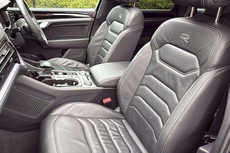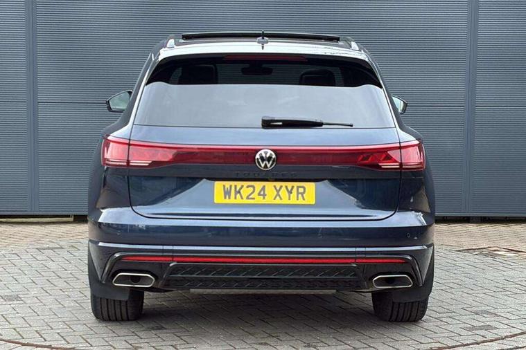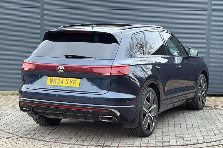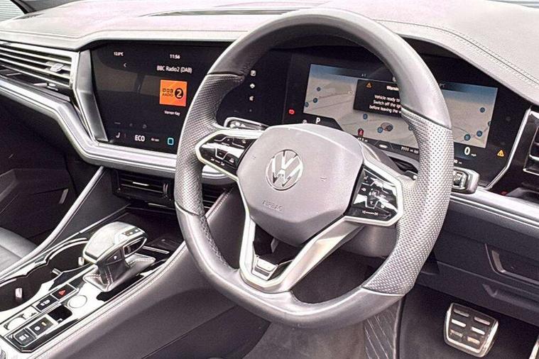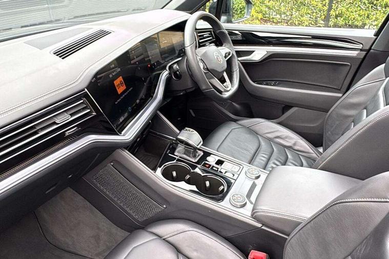 15" Screen Top infotainment system Premium (MIB3), Adaptive cruise control, Advanced driver attention and drowsiness monitor, Driver profile selection, Dynamic road sign display, E-Sim card for online connectivity, eCall emergency system, Innovision cockpit, Intelligent park assist, Mobile phone interface with inductive charging, Multi-colour Active Info display, Park Assist - Sensor controlled steering aid to assist parallel or bay parking, PAS, Warning signal and warning light for front and rear seatbelts not fastened, Wireless app connect, Adaptive chassis control, DAB Digital radio, Diversity antenna for AM/ FM reception, We Connect and We Connect Plus functionality, Automatic coming/leaving home lighting function, Automatic headlights, Black door mirrors, Black style comfort bumpers, Dynamic headlight range control with dynamic cornering light, Electric front tilt/slide panoramic sunroof and fixed rear sunroof, Electrically power adjustable, heated, folding, auto dimming, front passenger exterior door mirror lowering function, External USB type C socket and charging sockets, Gloss black roof rails, HD LED Matrix beam plus digital headlight projection with variable light distribution, Headlight washers, Heat insulating darkened glass in side and rear windows, Heated windscreen washer jets, Highway light, LED 3rd brake light, LED daytime running lights, LED rear combination lamp with variable lighting functions and special styling, Poor weather light, Rain sensor, Rear exhaust tailpipe, Rear fog light with back up light on both sides, Rear light bar and illuminated logo, Rear side wing doors, Rear wiper, Stainless steel door sill protection, 12V socket in centre console, 3 rear headrests, 3 seat bench in 2nd row, 4 zone climate control, Airbag label on sun visor and B-pillar, Brushed stainless steel pedals, Double sun visors with illuminated vanity mirrors, Front + rear carpet mats, Front centre armrest, Leather wrapped multifunction sports steering wheel, heated, with touch control and shift paddles, Mechanical rear seat release, Power adjustable lumbar support in front, Power seats in front, right side with memory features and seat cushion depth adjustment, Rear seat backrest and split folding with center armrest, Single front passenger seat, Tool kit, Memory pack plus - Touareg, 3 point seatbelts, outer rear with ECE lable, ABS, Child locks on rear doors, Curtain airbags, Driver and front passenger safety-optimised head restraints, Driver/Front Passenger airbags, Extended pedestrian protection measures, Front assist, Front seat side impact airbags, Generative braking with start and stop system, Height adjustable 3 point front seatbelts with pre tensioners, Passenger airbag deactivate switch, Three 3 point rear seatbelts, Two tone horn, Tyre pressure loss indicator, Warning triangle and first aid kit, Alarm system with interior protection, Easy open and close sensor controlled luggage compartment opening and closing with remote unlocking, Keyless Access Keyless locking and starting system with SAFELOCK, Aluminium decorative inserts, Black decorative trims, Gloss black decorative inserts in centre console,