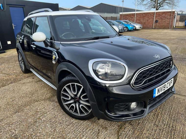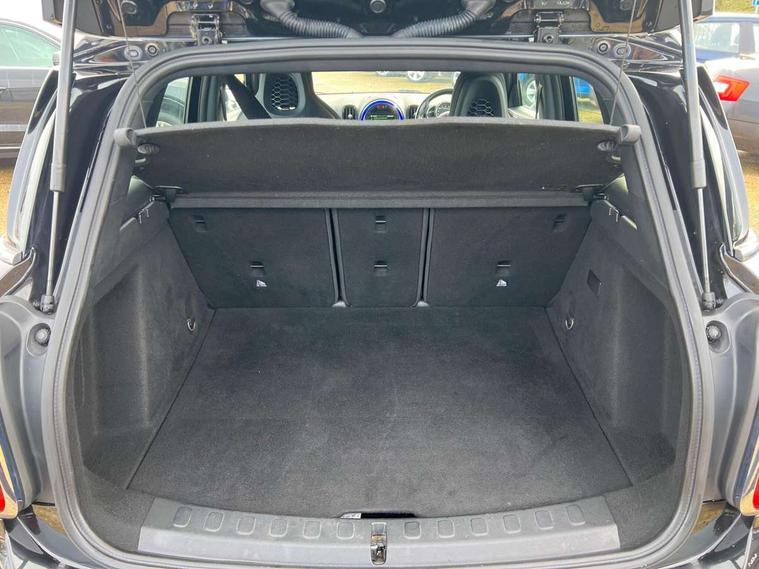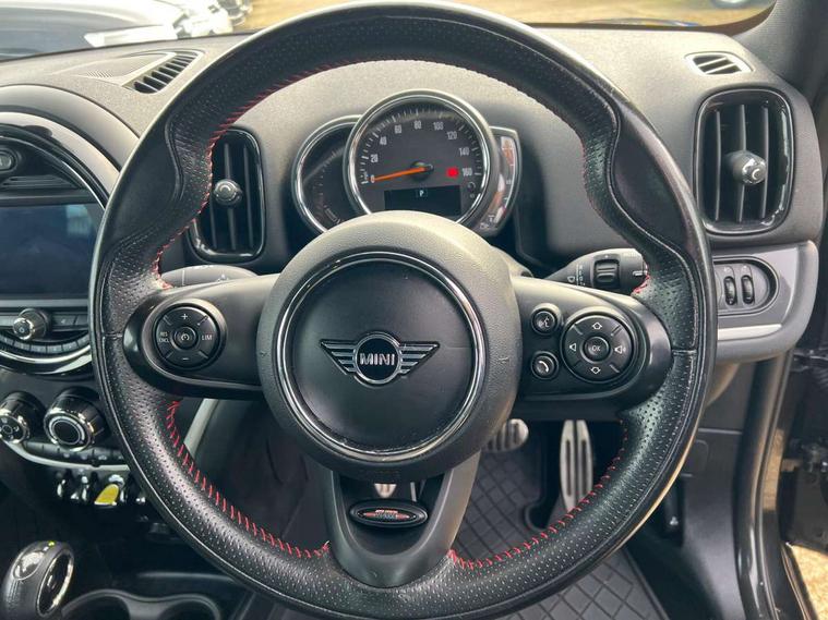 Active Guard incl speed limiting and lane departure functions with auto steering, and front collision warning with brake intervention, Automatic start/stop function with brake energy recuperation, eDrive button, Electro-mechanical speed dependant steering assistance, Instrument cluster, Mini E-call, MINI TeleServices, On board computer, Rear parking distance control, Automatic transmission, Charging flap on front left lower A-panel, Double Vanos system, Fully variable valve control, High precision injection, Performance Control, FM tuner and DAB digital radio, Bonnet scoop, Chrome border honeycomb structure radiator grille with S badge, Chrome fuel filler cap, Day time driving lights, Dynamic brake lights, Electric windows, Heated rear window, Heated windscreen washer jets, John Cooper Works - aerodynamic kit (front and rear apron, spoiler), front and rear sport bumpers and part-painted side sills with door sill finishers, John Cooper Works Logo, John Cooper Works rear spoiler, Metal door sill strips with Cooper S imprint, Model logo, Model logo on Tailgate, Rain sensor with auto headlights, Rear fog lights, Rear window wiper, Side scuttle panel with integrated indicator, Split rear doors, Sun/heat protection glass, Twin exhaust tailpipe, White indicator lenses, 12V Accessory socket in centre console, 360L luggage compartment capacity, 4 lashing eyes in luggage compartment, 40:20:40 split folding rear seats, Anthracite headlining with grab handles and clothes hooks, Charging cable, Chrome interior highlights, Colour line - Carbon black, Cupholders, English handbook, Front headrests, Glove compartment, Height and length steering column adjustment, Isofix rear child seat preparation, John Cooper Works perforated leather steering wheel with contrast stitching in chilli red and John Cooper Works logo, Leather gearshift lever and handbrake gaiters, LED reading lights, vanity mirror lights, front foot well light and spotlight on front seats, Manual air conditioning, Mechanical seat adjustment, driver seat height adjust, forward/back and front seats backrest, Multifunction steering wheel, Passenger seat height adjuster, Rear headrests, Storage compartments in doors, Sunvisors with vanity mirrors, Excitement pack - Countryman, Navigation pack - Countryman, 2 tone horn, 3 point seatbelts on all seats, 6 Airbags - front, side, head and seat belt tensioners, Anti-lock braking system (ABS), DSC - Dynamic Stability Control, Electronic handbrake, Front and rear disc brakes, Hill start assist, Tyre pressure monitoring system, Alarm system with tilt sensor, monitoring doors, bonnet interior and tailgate, Auto drive away locking, Deadlocking function, Electronic vehicle immobiliser, Locking wheel bolts, Start/stop toggle with keyless go, Tool kit,
