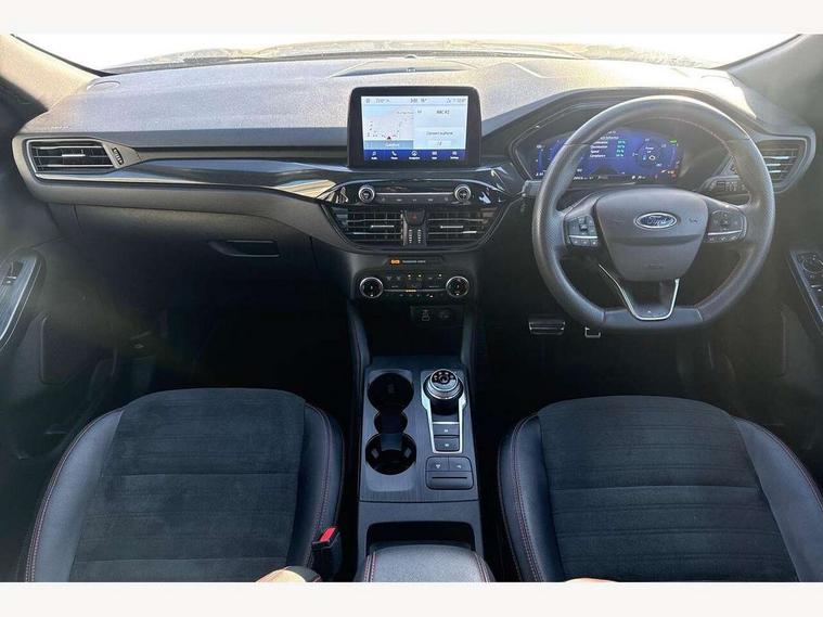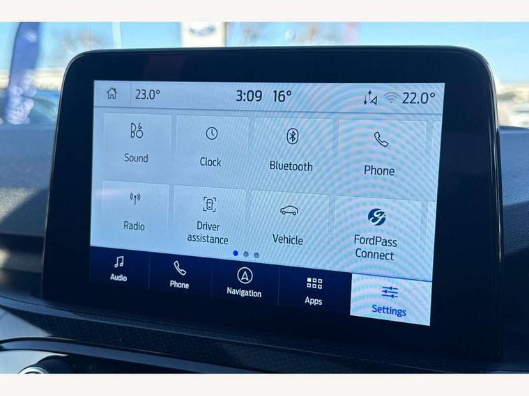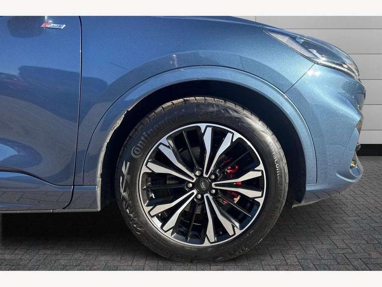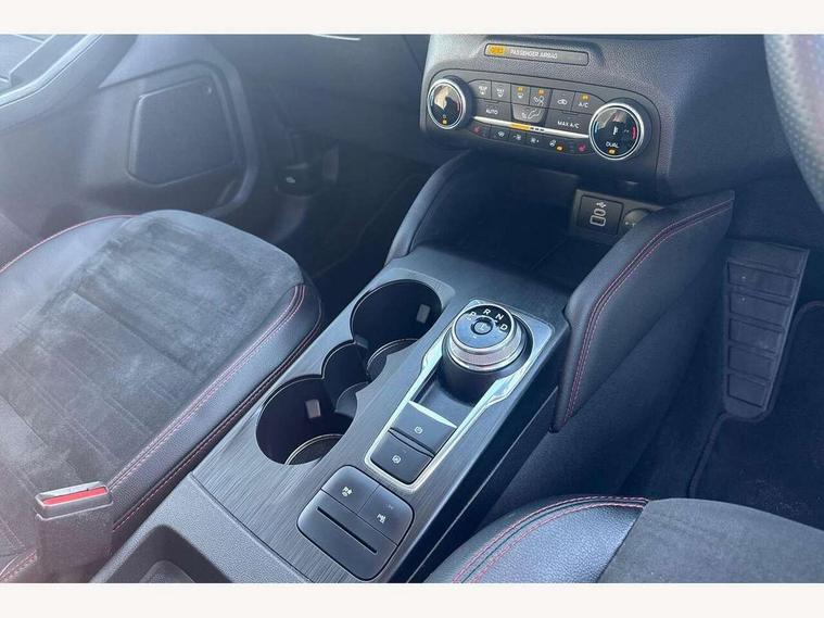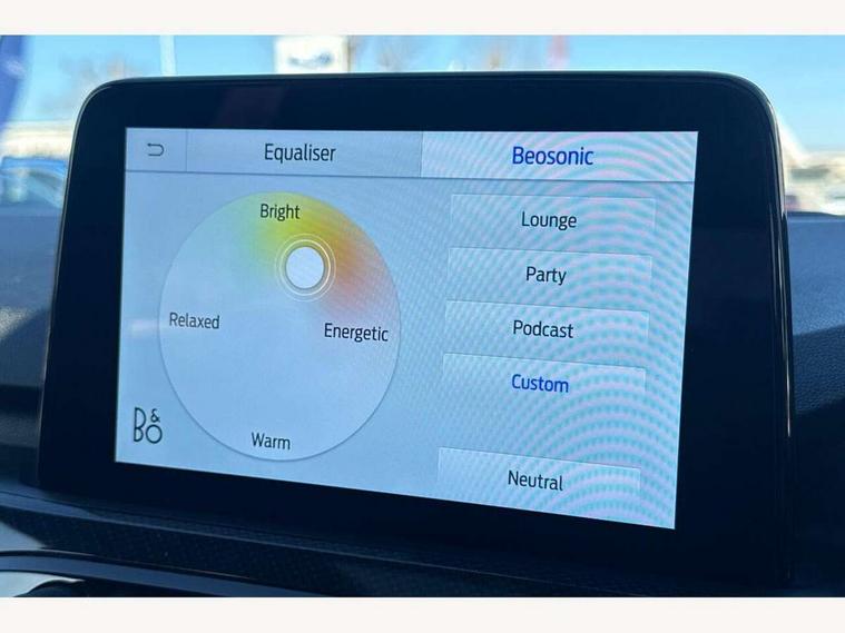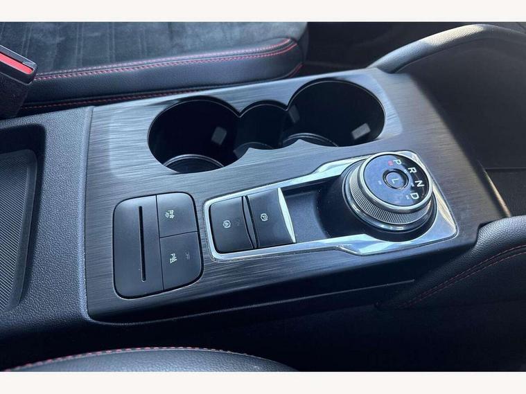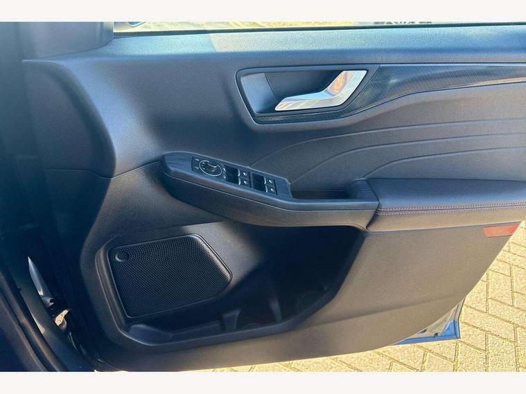 12.3" digital colour instrument cluster, Ford easy fuel, Ford SYNC 3 with 8" TFT LCD touchscreen, App Link, andriod auto/apple carPlay, emergency assistance and navigation with Ford pass connect, Front and rear parking sensors, Hands free power tailgate, Lane keeping aid with lane departure warning, Power assist steering, Rear view camera, Selectable drive modes, Service interval indicator, Sports suspension, Twist beam rear suspension, B&O premium audio system with 10 speakers and subwoofer, 2 USB ports, DAB radio/CD, Auto headlamps with high and low beam, Black roof rails, Day/night rear view mirror, Front LED fog lamps, Large rear spoiler, LED daytime running lights, LED rear lights, Power folding heated door mirrors with puddle lights, Power front/rear windows with global close, Power opening panoramic roof, Privacy glass, Quickclear heated windscreen, Rear side wing doors, Rear wiper, ST Line body styling kit with unique front and rear fascia and bumper, rear painted diffuser, front painted skid plates, dark mesh upper grille, ST Line front scuff plates, Third brake light, Twin exhausts, 10 way power adjustable drivers seat, 2nd row sliding seats with 60:40 split, 8 way manual passenger seat including lumbar support and height adjust, Alloy pedals, Centre console with electronic parking brake, Dark headlining and pillars, Electronic automatic temperature control (EATC), Flat bottomed leather steering wheel in sensico with red stitching, Front and rear head restraints, Heated passenger and driver seats, Heated rear seats, Heated steering wheel, Partial premium touch sensico leather upholstery with black cloth inserts and red stitching, Rear charging point, Single front passenger seat, Sports seats, ST Line front and rear floor mats, 3x3 point rear seatbelts, Airbags - front driver/passenger, front and rear curtain, Drivers knee airbag, Electronic stability control (ESC) and ABS, Ford MyKey Gen 2 safety system, Manual child proof rear door locks, Post collision braking, Pre collision assist with autonomous emergency braking, Rear seat Occupancy alert, Red brake calipers, Tyre pressure monitoring system, Engine immobiliser, Keyless entry and Ford power start button (Keyless start), Locking wheel nuts, Remote powered central double locking doors, Thatcham category 1 alarm,