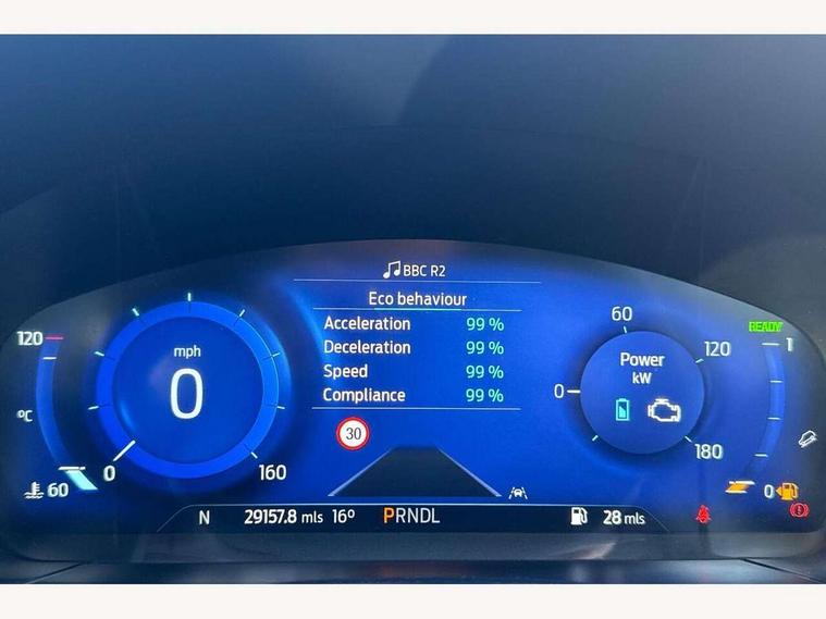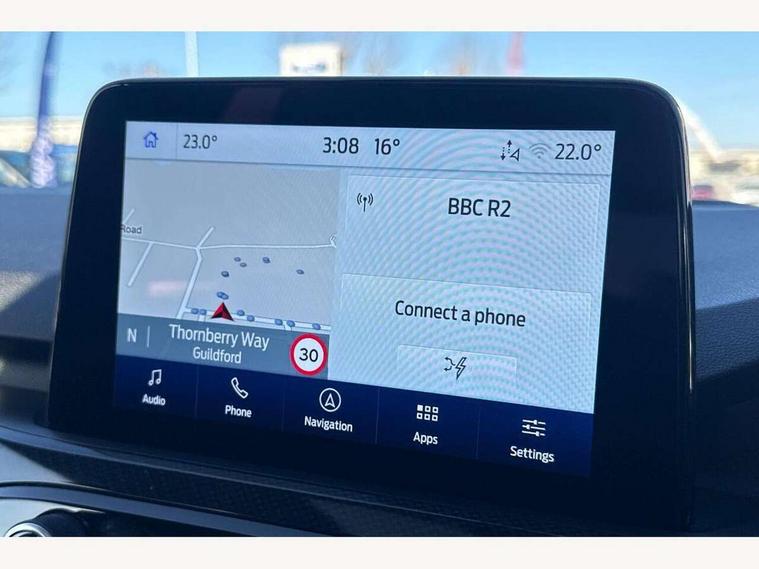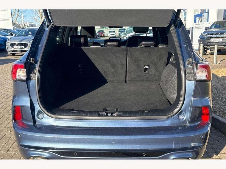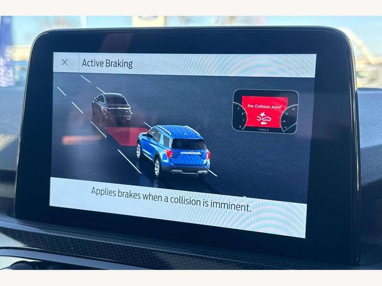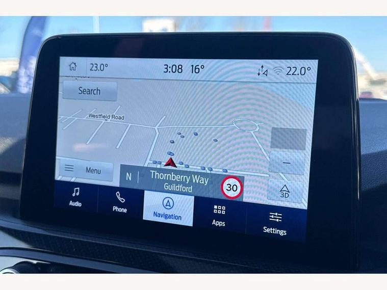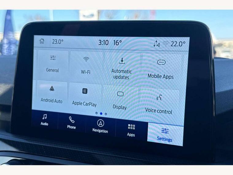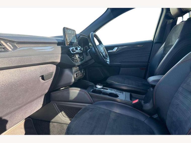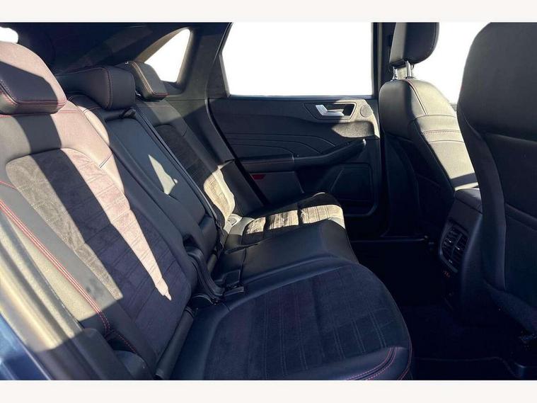 12.3" digital colour instrument cluster, Ford easy fuel, Ford SYNC 3 with 8" TFT LCD touchscreen, App Link, andriod auto/apple carPlay, emergency assistance and navigation with Ford pass connect, Front and rear parking sensors, Hands free power tailgate, Lane keeping aid with lane departure warning, Power assist steering, Rear view camera, Selectable drive modes, Service interval indicator, Sports suspension, Twist beam rear suspension, B&O premium audio system with 10 speakers and subwoofer, 2 USB ports, DAB radio/CD, Auto headlamps with high and low beam, Black roof rails, Day/night rear view mirror, Front LED fog lamps, Large rear spoiler, LED daytime running lights, LED rear lights, Power folding heated door mirrors with puddle lights, Power front/rear windows with global close, Power opening panoramic roof, Privacy glass, Quickclear heated windscreen, Rear side wing doors, Rear wiper, ST Line body styling kit with unique front and rear fascia and bumper, rear painted diffuser, front painted skid plates, dark mesh upper grille, ST Line front scuff plates, Third brake light, Twin exhausts, 10 way power adjustable drivers seat, 2nd row sliding seats with 60:40 split, 8 way manual passenger seat including lumbar support and height adjust, Alloy pedals, Centre console with electronic parking brake, Dark headlining and pillars, Electronic automatic temperature control (EATC), Flat bottomed leather steering wheel in sensico with red stitching, Front and rear head restraints, Heated passenger and driver seats, Heated rear seats, Heated steering wheel, Partial premium touch sensico leather upholstery with black cloth inserts and red stitching, Rear charging point, Single front passenger seat, Sports seats, ST Line front and rear floor mats, 3x3 point rear seatbelts, Airbags - front driver/passenger, front and rear curtain, Drivers knee airbag, Electronic stability control (ESC) and ABS, Ford MyKey Gen 2 safety system, Manual child proof rear door locks, Post collision braking, Pre collision assist with autonomous emergency braking, Rear seat Occupancy alert, Red brake calipers, Tyre pressure monitoring system, Engine immobiliser, Keyless entry and Ford power start button (Keyless start), Locking wheel nuts, Remote powered central double locking doors, Thatcham category 1 alarm,