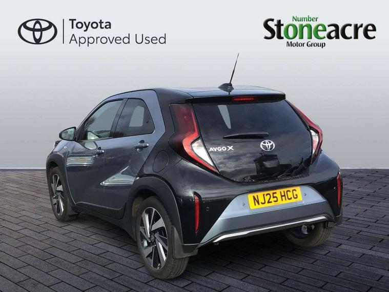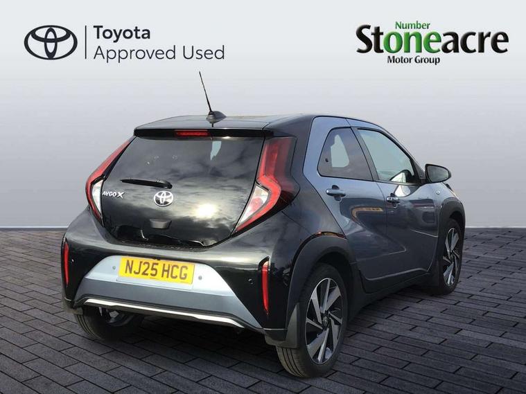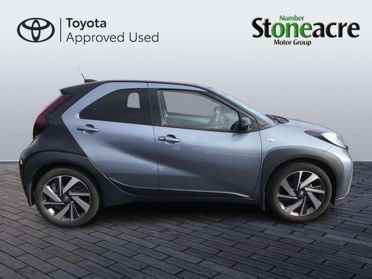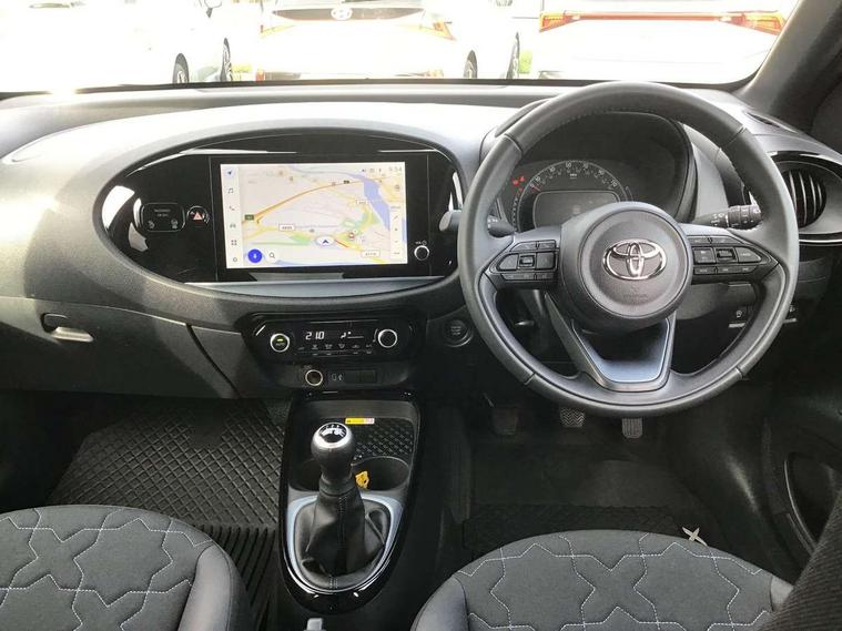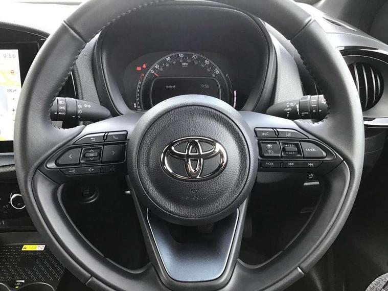 4.2" TFT colour screen, Adjustable speed limiter, Analogue speedometer, Bluetooth connectivity, Digital tachograph, Driver attention alert system, eCall emergency call system, Electric power steering, Front and rear parking sensors with auto brake, Intersection turn assist, Key reminder warning, Noise reduction kit, Pre collision system with emergency steering assist, Remote boot door release on key, Reversing camera with static guide lines, Smart entry and push button start, Smart phone integration with Apple car play/Android Auto, Speed limit display, Start and stop, Wireless charger, Vehicle Stability Control (VSC), 10.5" HD multimedia display touch screen with Toyota smart connect, 4 speakers, DAB digital audio broadcast, USB connector, Auto headlights, Auto wipers, Automatic headlights cut-off, Automatic high beam On/Off switch, Bicycle towing hook, Black contrast roof, Black fog light surrounds, Black side protection mouldings, Black wheel arch mouldings, Body colour door handles, Body coloured front bumper, Boot door scuff plate, Eclipse black rear bumper, Electric heated door mirrors, Follow me home headlights, Front and rear underruns in silver, Front fog lights, Front power windows, Gloss black door mirrors, Gloss black upper front grille, Headlight cut-off reminder, LED daytime running lights guide, LED front light guide, LED High mounted stop lamp, LED projector headlights, Manual day/night rear view mirror, Manual headlight levelling, Pagoda roof, Power adjustable door mirrors, Power back door, Privacy glass, Rain sensor, Rear combination lights LED bulb type, Rear side wing doors, Rear windscreen defogger, Rear windscreen wiper, Remote hazard lights system, Short antenna, Variable intermittent windscreen wipers, 12v power outlet - front, 2 seat bench in 2nd row, 3 spoke leather steering wheel, 50/50 split folding rear seat, Adhesive roof headlining, Adjustable speed limiter switch on steering wheel, Audio and telephone switches on steering wheel, Auto air conditioning, Black roof lining, Body colour satin anodised insert on steering wheel, Boot light, Centre room light, Chrome interior door handles, Chrome surround on air conditioning buttons, Clean air filter, Console box storage, Floor mats, Front and rear cup holders, Front head rest deco art, Front head restraints, Height adjustable driver seat, Intelligent adaptive cruise control switch on steering wheel, ISOFIX child restraint system on rear seats, Lane departure alert switch on steering wheel, Leather gearshift knob, Light blue ambient lighting in centre console, Manual tilt steering wheel, Manually reclining and sliding driver seat, Manually reclining and sliding front passenger seat, Multimedia switches on steering wheel, Partial synthetic leather upholstery, Pollen filter, Rear door pockets, Rear head restraints, Satin silver insert on gear shift knob, Single compartment glovebox with lights, Single front passenger seat, Soft tonneau cover, Sun visors with mirror on driver and passenger side, Voice recognition switch on steering wheel, Toyota safety sense pack - Aygo X, Anti lock braking system + Electronic brake force distribution, Child safety door lock, Emergency brake light signal (EBS), Hill start assist control (HAC), Passenger airbag on/off switch, Seat belt reminder for front and rear seats, Supplement restraints system (SRS) - 6 airbags, Traction control, Tyre pressure warning system, Immobiliser, Remote power door locks, Black wheel centre caps, Tyre repair kit,