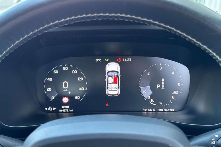 12.3" Active TFT crystal driver's instrument display, 9" Touch screen, Adjustable steering wheel force, Bluetooth hands free telephone kit, Drive mode selector, Lane keep assist with driver alert control, Oncoming Lane Mitigation, Sensus navigation system, Speed limiter, Speed sensitive steering, Voice control system, Volvo on call, DAB Digital radio, Steering wheel mounted remote controls, Adaptive brake lights, Auto dimming interior mirror, Automatic headlamp levelling, Black stone door mirrors, Black stone roof, Dark tinted glass for rear windows + rear screen + side luggage area window, Dual integrated exhaust pipes with high gloss black surround, Electrically adjustable and heated door mirrors, Embossed rear side roof pillar, Front and rear electric windows, Front tread plates, High gloss black front and rear skid plate, High gloss black lower front bumper, High gloss black mesh grille, High gloss black roof rails, High gloss black window trim, Home safe and approach lighting, LED front fog lights, LED Headlights + Active high beam incorporating daytime running lights, Rain sensor windscreen wipers, Rear wiper, Roof antenna, Roof spoiler, Visible VIN plate, 12V socket in front tunnel console, 2 zone electronic climate control with air quality system, 3 spoke leather steering wheel with chrome trim, 60/40 split folding rear seat, A-pillar parking ticket holder, Ambient lighting in door panels, Black headlining, Bright metal luggage threshold, Centre console cupholders, Centre console storage box, Contour sports seats with leather/nubuck upholstery, Cooled glovebox, Courtesy lights, Driver's lower storage shelf, Extended front seat cushions, Front door pockets, Front footwell illumination, Front tunnel storage net, Front/rear reading lights, Glovebox bag hook, Glovebox illumination, Height/reach adjustable steering column, High gloss centre tunnel deco, Illuminated driver/passenger vanity mirrors, Illuminated front cupholder, Illuminated luggage compartment, Illuminated tailgate, Isofix attachments on rear seats, Multicolour theatre lights, Passenger seat adjustable for lumbar support, Perforated leather gearknob, Perforated Leather Key Integrated Remote, Perforated leather steering wheel, Pollen filter, Rear armrest / integral cup holders / storage tray, Sports pedals, Underfloor stowage compartment, ABS/EBD, City safety, Drivers knee airbag, DSTC-Dynamic Stability and Traction Control, Dual stage driver/passenger airbags, EBA, Electronic parking brake with auto hold, Fasten seatbelt reminder, First aid kit, Front seat side impact airbags, Hill descent control, Hill start assist, Inflatable curtain, Passenger airbag cut-off device, Road sign information display, Run off Road Mitigation, Run off Road Protection, Seatbelt pre-tensioners, Side impact protection, Tyre pressure monitoring system, Warning triangle, WHIPS whiplash protection system - front, Anti-theft alarm including immobiliser/volume sensor + level sensor, Fuel flap with deadlocking system, Key integrated remote control central locking, Locking wheel nuts, Private locking, Cutting edge aluminium inlay,