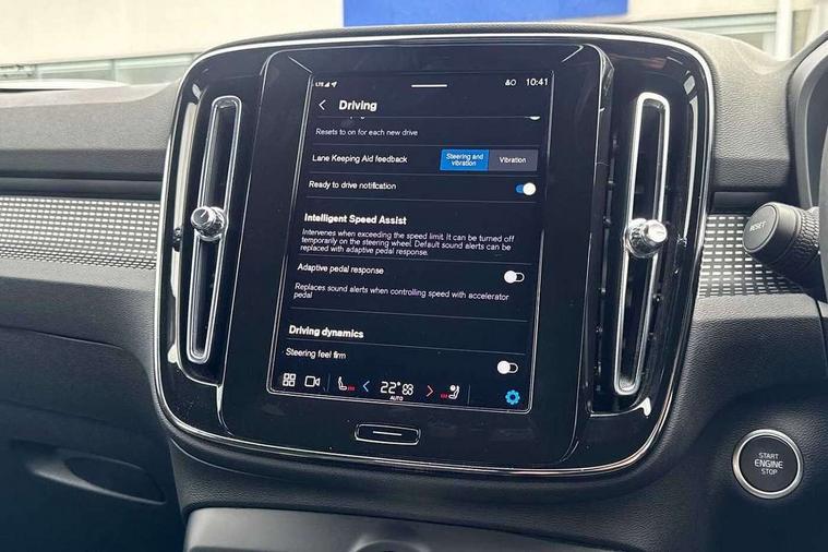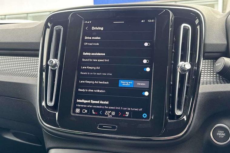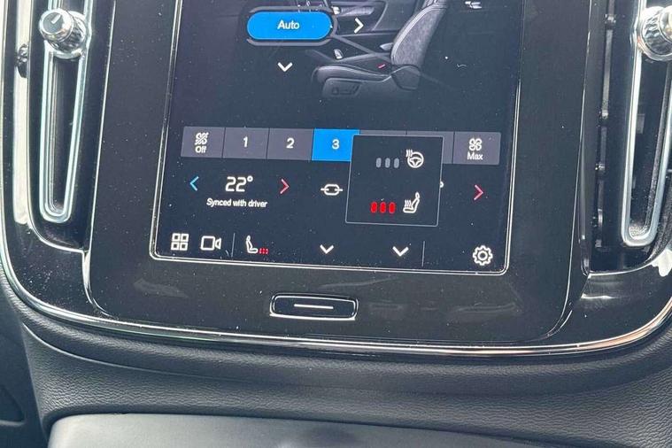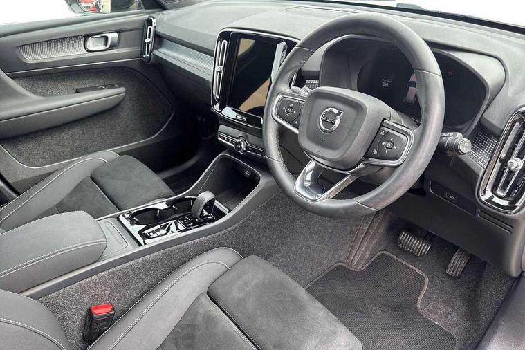12.3" Progressive Driver Display, 9" centre console portrait touch screen, Adjustable steering wheel force, Apple carplay (wired), Bluetooth handsfree system, Cruise control, Driver alert control, E-call, Front park assist, Google automotive services - Enabled entertainment apps, navigation with google maps, voice recognition with google assistant, Hands free power tailgate, Intelligent speed assistance, Lane keeping aid, Oncoming Lane Mitigation, Rear park assist, Rear park assist camera, Speed sensitive steering, Volvo cars services with app - Driving journal, emergency and breakdown call, engine remote start, remote door locking/unlocking and vehicle dashboard, Wireless/Inductive Mobile Phone Charging, Automatic transmission with start/stop and manual change functions, Dynamic chassis, DAB Digital radio, Steering wheel mounted remote controls, Adaptive brake lights with high level LED brake lights, Auto dimming interior mirror, Automatic headlamp levelling, Automatic LED Headlights + Active high beam incorporating daytime running lights, Front aluminium tread plates, Front and rear electric windows, High gloss black front and rear skid plate, High gloss black front bumper deco, High gloss black mesh front grille with high gloss black surround, High gloss black window trim, Home safe and approach lighting, Integrated roof rails in high gloss black, LED front fog lights, Puddle lights, Rain sensor with automatic windscreen wiper activation, Rear side wing doors, Rear wiper, Roof antenna, Roof spoiler, Visible VIN plate, 12V socket in front tunnel console and luggage compartment, 2-Zone electronic climate control with CleanZone air quality system and pollen filter, 3 seat bench in 2nd row, 3 Spoke tailored steering wheel with chrome trim, 60/40 versatile split folding rear seat, Centre console cupholders and storage, Flexible load floor and grocery bag holder, Floor mats, Front cabin courtesy lights, Front door pocket, front cupholder, ambient front door, rear reading, rear courtesy, instrument panel and tailgate lighting, Front footwell illumination, Front headrests, Front reading lights, Front seat cushion extensions, Front side step illumination (under door), Glovebox bag hook, Heated front seats, Height adjustable passenger seat, Height/reach adjustable steering column, High gloss centre tunnel deco, Illuminated glovebox, Illuminated luggage compartment, Illuminated vanity mirrors + ticket holder, Integrated waste bin, Isofix attachments on outer rear seats, Load cover, Load protection net, Multi directional lumbar support for driver and passenger seat, Power driver seat with memory + exterior mirrors memory, Rear armrest with cupholders, Rear headrests, Single front passenger seat, Underfloor cargo storage, Climate pack without heated front seats - XC40, 3x3 point rear seatbelts, City safety with steering support with Pedestrian + cyclist + front collision warning with full auto brake and rear auto brake, Driver and passenger airbags, Drivers knee airbag, Electronic parking brake with auto hold, First aid kit, Front and outer rear seatbelt reminder and pretensioners, Front seats SIPS airbags, Hill descent control, Hill start assist, Inflatable curtain, Passenger airbag cut-off device, Power child locks on rear doors, Road sign information display, Run off Road Protection, SIPS (Side Impact Protection System), Slippery road and hazard light alert, Stability and Traction Control with Spin control, Engine Drag Control and Corner Traction Control, Tyre pressure monitoring system, Vehicle deceleration control with Anti-lock Brake System, Electronic Brake Distribution and Emergency Brake Assist, Warning triangle, WHIPS whiplash protection system - front, 2 x Key integrated remote control central locking including with deadlocking system and auto open/close windows, Anti-theft alarm including immobiliser/volume sensor + level sensor, Keyless drive includes keyless entry and keyless start, Locking wheel nuts,