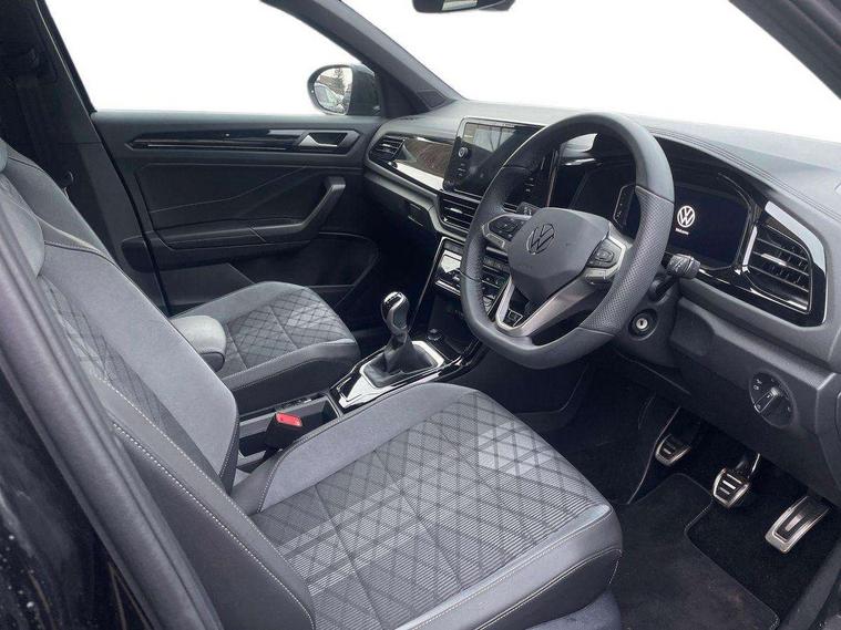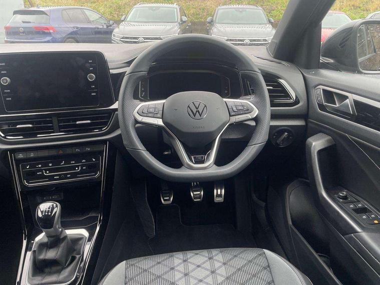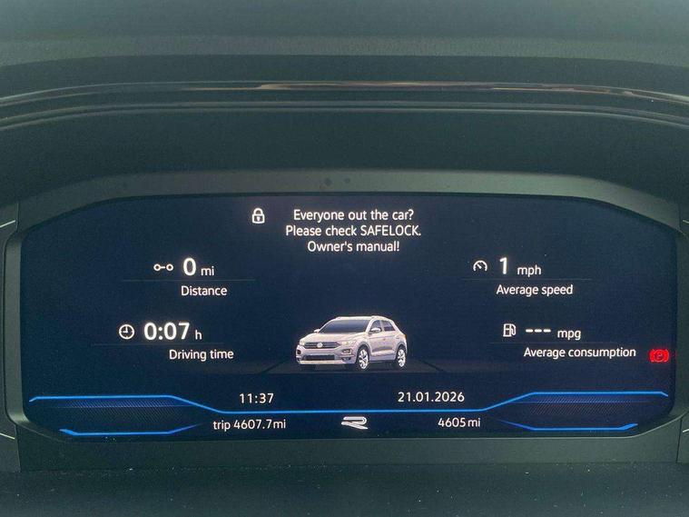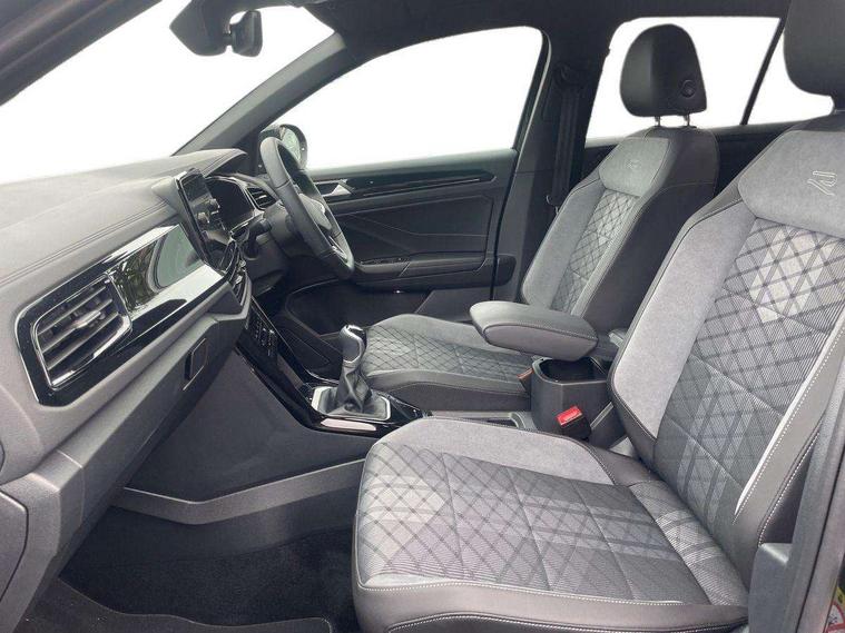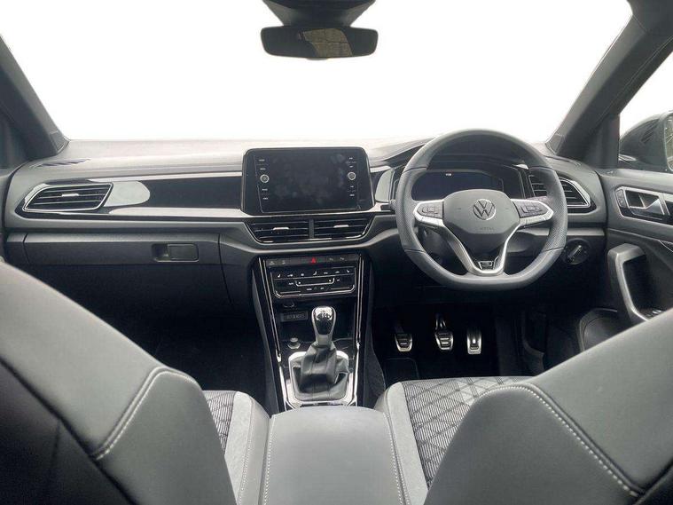 10.25" Digital cockpit pro, Advanced driver attention and drowsiness monitor, Emergency call service, Lane keeping system Lane Assist, Mobile phone interface, Modified key software - reduce switch off time for key status change to Long no motion, Online services, Park assist including front and rear parking sensors, Power assisted speed sensitive steering, Service interval indicator, Tailgate/trunk lid release from outside, Think blue trainer driver tips and journey analysis, Warning sound and light for front seatbelts unfastened, Wireless app connect, Battery regeneration during braking, Rear shock absorption chassis with increased ride height, Start/stop function with battery regeneration, DAB Digital radio, Diversity antenna for FM reception, Front and rear 6 speakers, Music playback - MP3, WMA and AAC files, Premium USB cable in choice of either Apple or Android smartphone compatibility, SD card slot, Simultaneous pairing of 2 compatible mobile devices, Title and cover art display, We Connect and We Connect Plus functionality, Auto dimming interior rear view mirror, Automatic hazard lights activation under emergency braking, Automatic headlight control with LED separate daytime running lights with coming/leaving home function, Dynamic cornering light, Electrically adjustable and heated door mirrors, Extended roof spoiler, Exterior mirrors aspherical on driver side, convex on front passenger side, External USB type C socket and charging sockets, Front windscreen wiper with intermittent wipe and 4 position delay, Heated rear window, Illuminated front grille, IQ LED matrix headlights, LED 3rd brake light, LED rear number plate lights, LED rear tail lights with dynamic turn signal, Light mode for poor weather, rain, fog or snow, Power windows with comfort operation and circuit breaker, R-Line design body coloured bumpers, Rain sensor, Rear exhaust tailpipe, Rear fog light on one side and reversing lights on both sides, Rear side wing doors, Rear wash/wipe with intermittent wipe setting, Remote electrically foldable door mirrors, puddle lights and reverse activated passenger's door mirror, 12V power socket in centre console, 3 rear head restraints, 3 seat bench in 2nd row, 4 load lashing points in luggage compartment, Air care climatronic air conditoning system with active combination filter and 2-zone temperature control, Artvelours cloth upholstery, Black roof lining, Chrome plated radiator grille inserts, air vent surrounds and light switch surrounds, Door and side trim panel with leatherette insert, Drawer under drivers seat, Driver seat height adjust, Driver's seat lumbar support, Front + rear carpet mats, Front centre armrest, Front comfort sports seats, Front cupholders x 2, Front footwell illumination, Front reading light, Front scuff plates with R Line logo, Front seat back storage pockets, Glove compartment door with light, Instrument lighting, white adjustable panel illumination, Interior ambient lighting and surround lighting, Interior light delay, Isofix child seat preparation, Leather gearshift handle, Load-through provision with cup holder when folded down ('Unsplit rear seat bench, split folding backrest, with centre armrest), Luggage compartment lighting, Non-folding front passenger seat backrest, Passenger seat height adjuster, Passenger seat lumbar support, Single front passenger seat, Stainless steel pedals, Storage compartment in left and right luggage area, Storage compartment in rear doors, Storage compartments in driver and front passenger doors, Sunvisors with illuminated vanity mirrors, Variable boot floor, height adjustable and removable, Winter pack without heated windscreen washer jets - T-Roc, 3 point height adj front seatbelts + pretensioners, 3 point seatbelts in outer rear with ECE label, ABS, Child locks on rear doors, City emergency braking and pedestrian monitoring, Driver and front passenger airbag with front passenger airbag deactivation, Driver and front passenger safety-optimised head restraints, Drivers seatbelt reminder, Electronic parking brake, Electronic Stability Control (ESC) inc EDL (Electronic Differential Lock) and ASR (Traction Control), Front and rear passengers curtain airbag system including front side airbags, Front disc brakes, Hill start assist, Predictive pedestrian protection, Rear disc brakes, Two tone horn, Tyre pressure loss indicator, Volkswagen roadside assistance, Tool kit, Trims for alloy wheels, Tyre mobility kit including compressor and sealing foam,