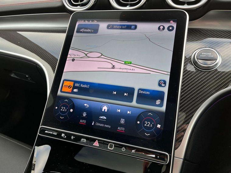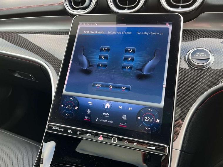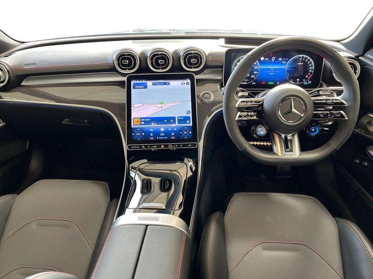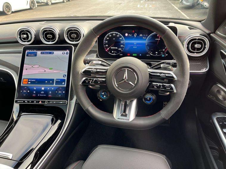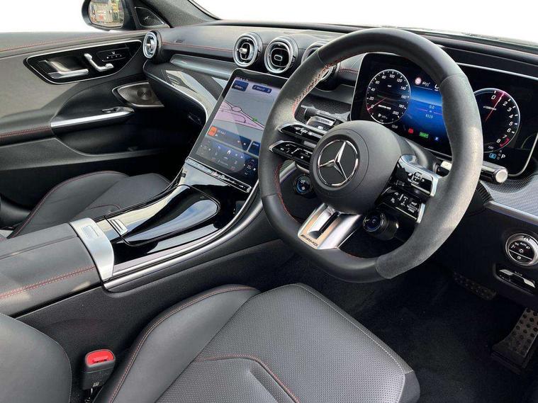 11.9" high resolution multimedia colour display, 12.3" digital instrument cluster display, Acoustic ambient protection, Active parking assist with PARKTRONIC, AMG DYNAMIC SELECT with a choice of eight driving modes(Electric, Comfort, Battery Hold, Sport, Sport+, Race, Slippery and Individual), AMG track pace, Attention assist, Charging services plus, E-call, Extended MBUX functions, Finger print sensor, Fluorescent jacket for driver, Hard disc navigation, Head up Display, MBUX augmented reality for navigation, MBUX navigation premium, Mercedes me remote services, Outside temperature gauge, Rear axle steering, Service indicator (ASSYST), Smartphone integration, Sports direct steer speed sensitive steering, Status display for rear seat belts in instrument cluster, Traffic sign assist, Wireless charging system for mobile devices, 5m charging cable for household socket (mode 2), 5m charging cable for wall box/public charging stations(mode 3), 60 litre fuel tank, AC charging, AMG Ride Control suspension, AMG speedshift MCT 9G with wet starting clutch and race start function, Petrol Particulate Filter, Suspension with adaptive damping system, Burmester 3D surround sound system, DAB Digital radio, MBUX multimedia system, Adaptive brake lights, Adaptive high beam assist plus, AMG body styling front apron, rear apron and side skirts, AMG fuel cap, AMG illuminated door sills with AMG lettering and with exchangeable cover, AMG Real Performance Sound, Body coloured bumpers, Digital light LED headlamps, Electric windows with one touch opening/closing and obstruction sensors, Electrically adjustable and heated door mirrors, EQ badging on front wings, Flared wheel arches, High gloss black AMG performance spoiler lip, LED daytime running lights, LED Indicators, LED tail lights, LED third brake light, Mercedes AMG exterior, Noise acoustic glass, Panoramic glass sunroof, Rain sensor with automatic windscreen wiper activation, Rear boot, Rear side wing doors, 3 seat bench in 2nd row, 40:20:40 split folding rear bench seat, Ambient lighting premium, Ambient lighting with projection of brand logo, AMG floor mats, AMG Nappa leather upholstery, AMG Performance steering wheel in nappa leather/microcut microfibre, AMG steering wheel buttons, Auto Mercedes-Benz child seat recognition sensor, Black roof liner, Boot lid convenience closing feature, Double cupholder in centre console, Electrically height/reach adjustable steering column, Folding rear seat backrest, Front and rear head restraints, Gearshift paddles on steering wheel, Illuminated glove compartment stowage, Mercedes AMG interior, Rear top tether child seat ISOFIX attachment, Single front passenger seat, Sunvisors with illuminated vanity mirrors, THERMATIC 2 zone automatic climate control, AMG aerodynamics package - C Class C63, AMG drivers pack - C Class, AMG exterior night pack - C Class, Interior light package - C Class, Keyless go comfort package - C Class, Memory package - C Class, Mirror package - C Class, Parking package with 360 degree camera - C Class, Stowage space pack - C Class, USB package plus - C Class, 3 rear 3 point seatbelts, Active bonnet pedestrian safety measure which detects an impact and raises bonnet, Adaptive brake system with HOLD function and brake drying in the wet, AMG high performance composite braking system, Anti-lock braking system (ABS), Black seat belts, Child proof door locks, Drivers knee airbag, Drivers pelvis airbag, Dual stage driver/passenger airbags, Electric parking brake, Electronic Stability Programme (ESP), Front centre airbag between driver and front passenger seats, Front side airbags, Red brake callipers, Tyre pressure monitoring system, Warning triangle and first aid kit, Window airbags for driver, front passenger and rear passenger, Antitheft alarm system, Interior monitoring system and Increased antitheft protection, Central locking with interior switch, automatic locking and crash sensor with emergency opening function, Chrome surround in electric key, Dashcam, Urban guard vehicle protection plus, Carbon fibre trim with centre console in high gloss black, Dashboard, instrument panel and beltlines in ARTICO man made leather in nappa look, 20" AMG cross spoke light alloy wheels painted in high gloss black with high sheen finish, TIREFIT with tyre inflation compressor,