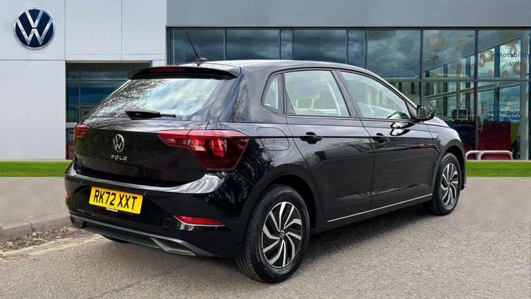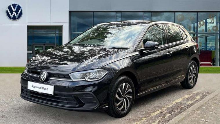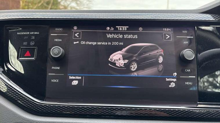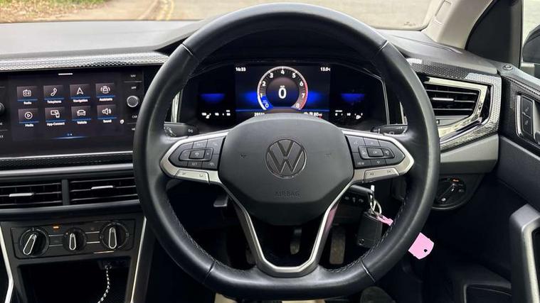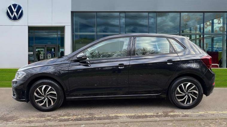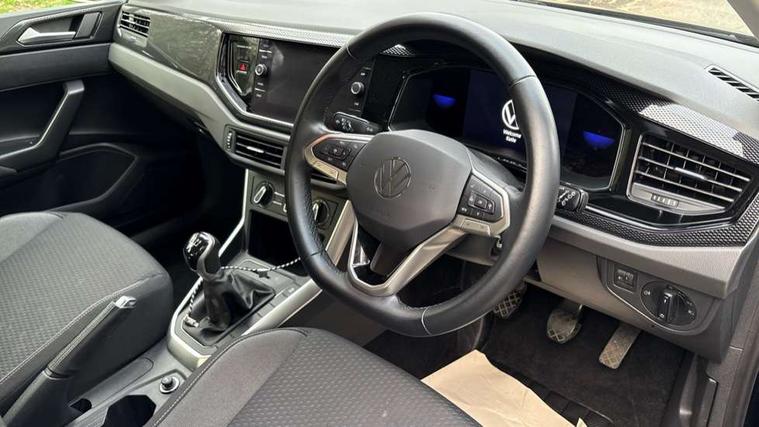 Adaptive cruise control without follow-to-stop and speed limiter, Bluetooth mobile phone interface, Driver alert system, Emergency call service, Front assist system, Power assisted speed sensitive steering, Preparation for We connect and We connect plus, Speedo and rev counter, electronic odometer, trip, service interval display and fuel gauge, Standard rear axle, Travel Assist - Lane keeping system and traffic jam assist, Travel assist including emergency assist, Trip computer, Warning signal and warning light for front and rear seatbelts not fastened, Washer fluid level indicator, Wireless app connect, Front wheel drive, Rear shock absorpion, Start-stop system with battery regeneration (recuperation - energy recovery during braking), DAB Digital radio, Diversity antenna for FM reception, Front and rear 6 speakers, Automatic dimming interior rear view mirror, Body colour bumpers, Body colour door handles, Body colour door mirrors, Electric front windows, Heat insulating darkened glass in side and rear windows, Heat insulating glass windscreen, Power folding adjustable/heated exterior mirrors and front passenger exterior mirror lowering function, Rain sensor, Rear electric windows, Rear fog light, Rear side wing doors, Rear windscreen washer and wiper with interval delay, Third brake light, 12V power socket in centre console, 2 front and 2 rear reading lights, 2 USB-C ports in the front, 2 USB-C charging sockets on the center console in the rear, 3 rear head restraints, 60/40 split folding rear seat and rear seat bench not split, Ceramique headliner, Chrome plated radiator grille inserts, air vent surrounds and light switch surrounds, Door and side trim panel, Driver and front passenger seat height adjustment, Driver/passenger sunvisors with illuminated vanity mirrors, Front centre armrest, Front seat backrest storage pockets, Front standard seats, Handbrake lever handle in leather, Hartley/Thomas cloth upholstery, Isofix child seat preparation easy-fit (for two outer rear seats, and front passenger seat) compatible with I-size, Leather trimmed gear knob, Luggage compartment cover, Luggage compartment floor, Luggage compartment lighting, Multifunction steering wheel, Single front passenger seat, Standard pedal cluster, Light and vision pack - Polo, 3 point height adj front seatbelts + pretensioners, 3x3 point rear seatbelts, ABS, Driver and front passenger airbag with front passenger airbag deactivation, Drivers and front passengers safety optimised head restraints, ESC (Electronic stability control) + EDL (Electronic Differntial lock) and ASR (Traction control), Extended and predictive pedestrian/ cyclist protection, Front curtain and side airbags with center airbag, Front disc brakes, Hill hold control, Manual child lock in rear doors, Rear drum brakes, Single tone horn, Tyre pressure loss indicator, Alarm with interior protection, Anti-theft alarm system with interior monitoring, backup horn, and towing protection, Anti-theft wheel bolts, Electronic engine immobiliser, Lava stone black gloss/matt decorative inserts in dash and front door panels, Low rolling resistance tyres,