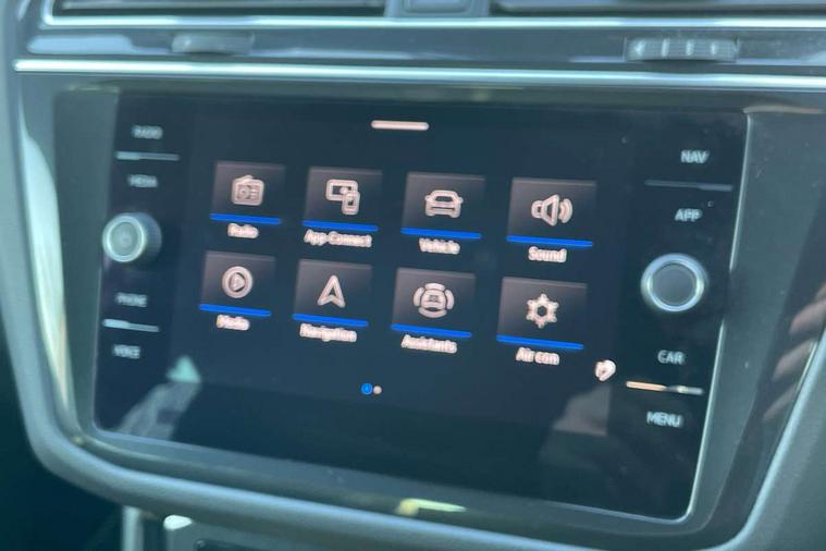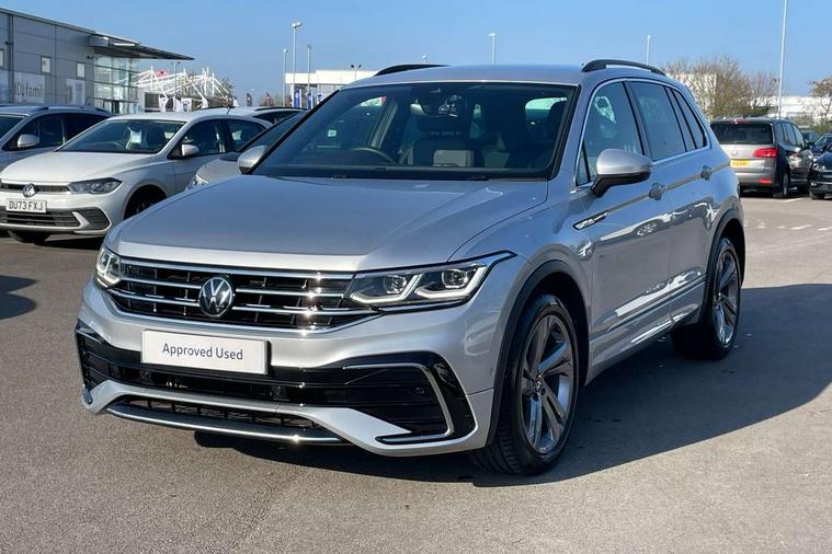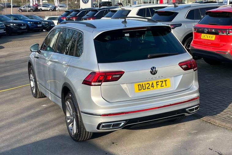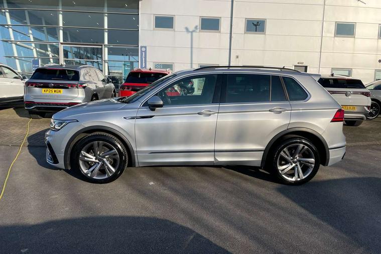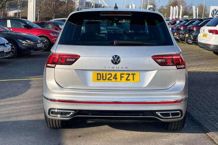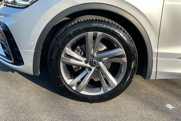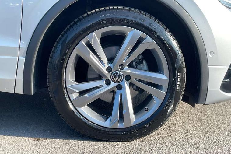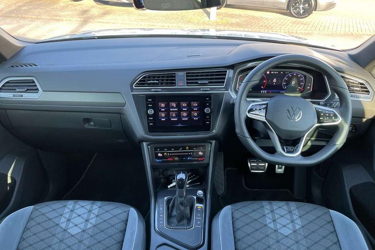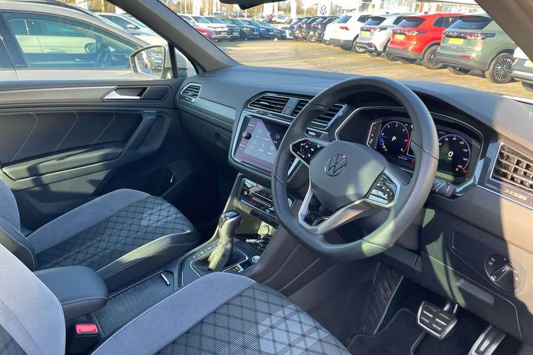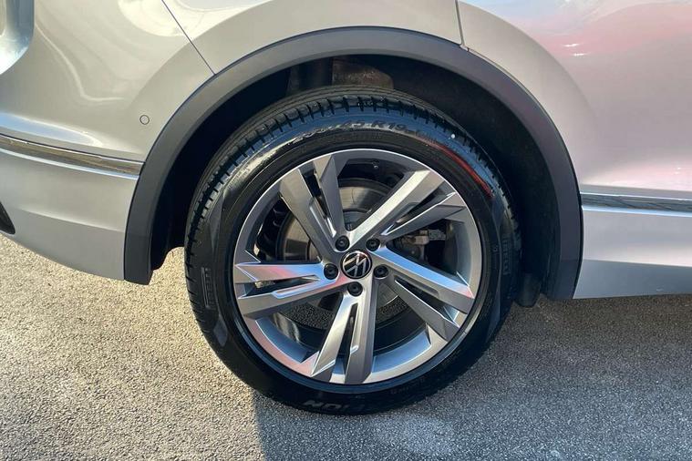 Adaptive cruise control ACC stop and go including speed limiter, App-Connect incl. App-Connect Wireless for Apple CarPlay and Android Auto, Bluetooth phone integration system, Comfort drive travel assist, Digital cockpit pro, Driver alert system, Driver profile selection, Dynamic road sign display, eCall emergency call system, Electromechanical speed sensitive power steering, Emergency assist, Front and rear parking distance sensors, Instrument cluster mph speedometer Great Britain, Lane keeping system Lane Assist, Lights on warning, Multifunction front facing camera, Outside temperature display, Premium multifunction display with multi colour display, Rev counter, Service interval indicator, Speed limit display, Start/stop system with regenerative braking, Trip computer, Warning sound and light for doors and tailgate open, Battery regeneration during braking, Digital radio reception DAB+, Diversity antenna for FM reception, Radio, Auto dimming interior rear view mirror, Automatic headlight control system, Body colored bumpers in R-Line style, Body colored exterior mirror housings, Body colour door handles, Chrome moldings on the side windows, Coming/leaving home lighting function, Dynamic headlight range control, Front and rear electric windows, Heated rear window, High level 3rd brake light, Laminated safety glass windshield, heat and sound insulating, LED rear combination lamps, LED rear number plate lights, License plate carrier in front and rear, Poor weather light and cornering light, Privacy glass for rear side windows and rear window, R Line body kit, R Line side sills, Rain sensor, Rear exhaust tailpipe, Rear fog lamp, Rear side wing doors, Rear spoiler in R style, Rear windscreen washer and wiper with interval delay, Side and rear windows in heat insulating glass, Trailer Stability Programme, Unique R Line badging, Windscreen wipers/ intermittent wipe + 4 position delay, 12V outlet in center console rear and in luggage compartment, 12V outlet in front and tray, 2 LED front reading lights, 2 LED rear reading lights, 3 bench rear seats in 2nd row, 3 rear headrests, Air Care Climatronic 3 zone automatic climate control with enhanced air filter and controls in the rear, Backrest release for left front seat, Black headlining, Brushed stainless steel pedals and footrest, Carpet mats in front and rear with decorative stitching in Gray, Climate control unit rear with touch function, Door and side trim panel in foam film, insert in leatherette, Front footwell illumination, Front scuff plates in aluminum with R-Line logo, Front seats head restraints (x-adjustment), Height/reach adjust steering wheel, Isofix Preparation 2 Rear child seats, Leather gear knob, Rear bench seat asymetrically split folding, longitudinally movable and folding with load-through hatch and center armrest, Remote unlocking for rear seat backrest, Single front passenger seat, Sun visors with illuminated vanity mirrors, Driver assistance pack plus - Tiguan DSG, 3 point seat belt for centre rear seats, 3 point seat belts with seat belt pretensioners for the outer rear seats, Curtain airbags for front and rear passengers, Driver/Front Passenger airbags, Drivers knee airbag, Electronic parking brake with auto hold, Electronic Stability Control with driver steering recommendation, ABS, ASR, EDL, EDTC and trailer stabilization, Front assist with autonomous emergency braking (for Adaptive Cruise Control ACC up to 130 mph), Front disc brakes, Front passenger airbag deactivation, Front side airbags, Height adjustable front 3 point seatbelts + pretensioners, Manual child proof rear door locks, Pedestrian monitoring system, Proactive passenger protection system in combination with front assist, Rear disc brakes, Two tone horn, Warning sound and light for front seat belts if unfastened, Warning triangle, Anti theft alarm system with interior monitoring, backup horn and towing protection, Anti theft wheel bolts, Electronic engine immobiliser, Chrome elements on the mirror switch power window switches and door pulls, Decorative inserts Carbon Gray for dashboard and front door trim panels, Interior door handle in matte chrome, Tool kit,