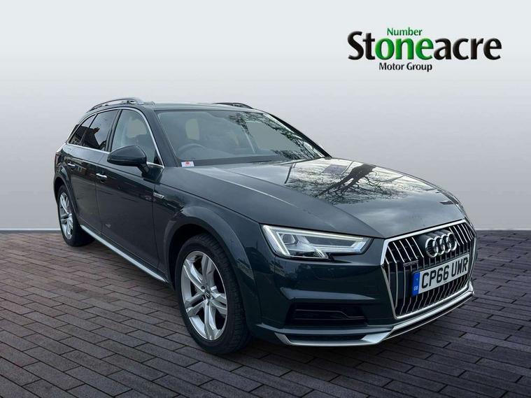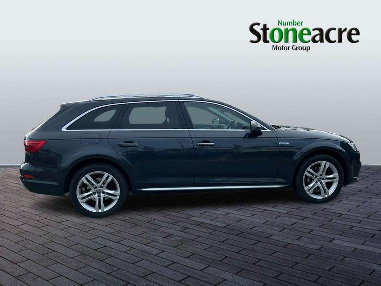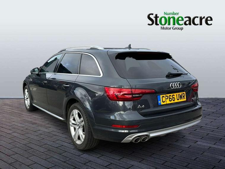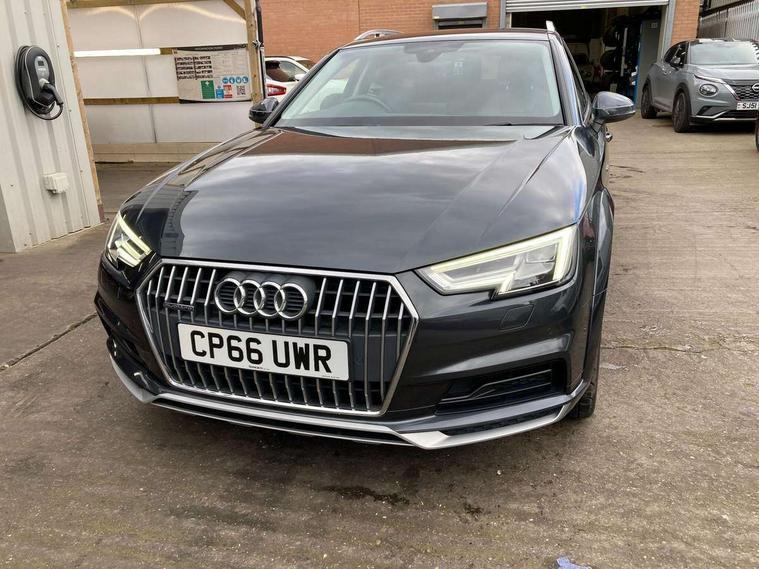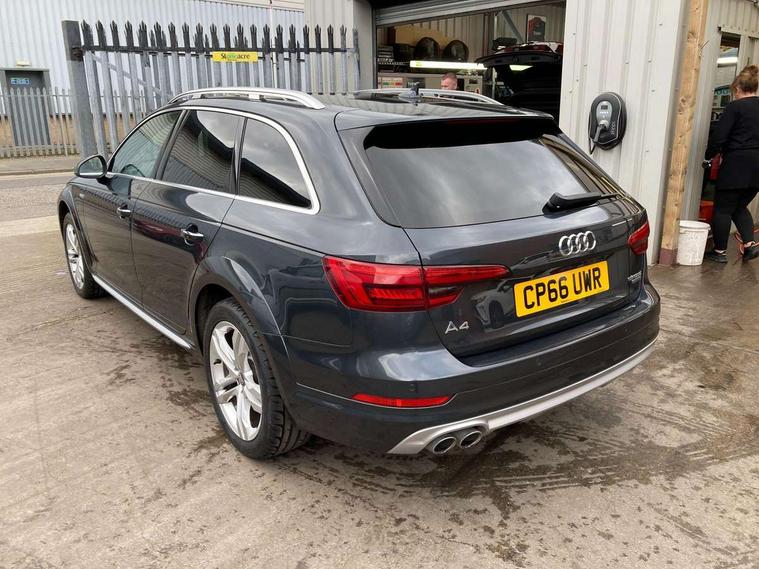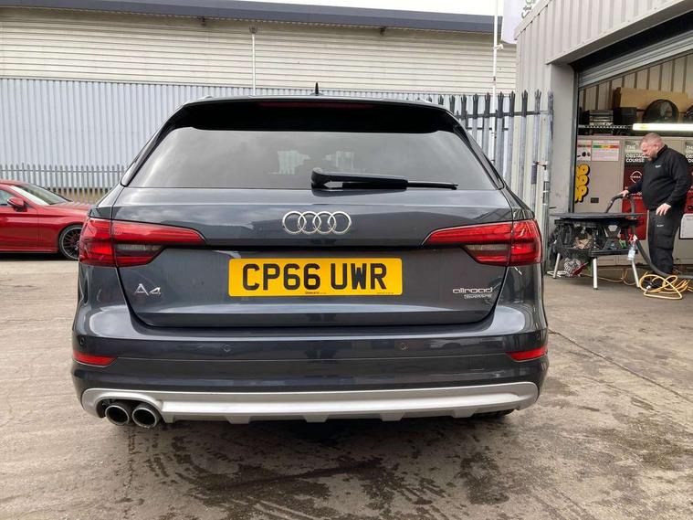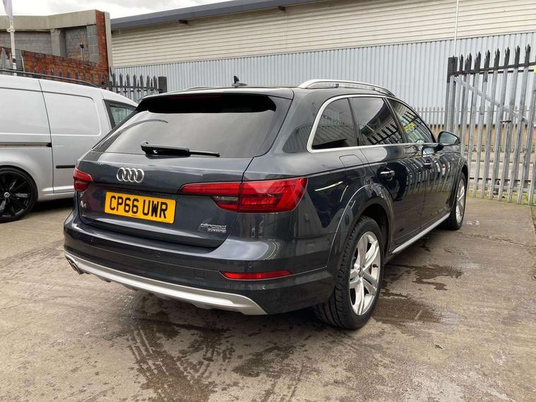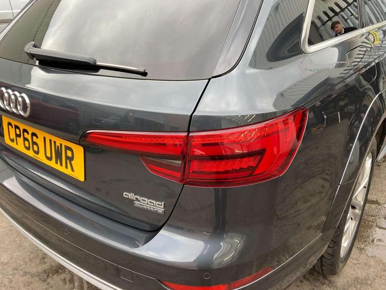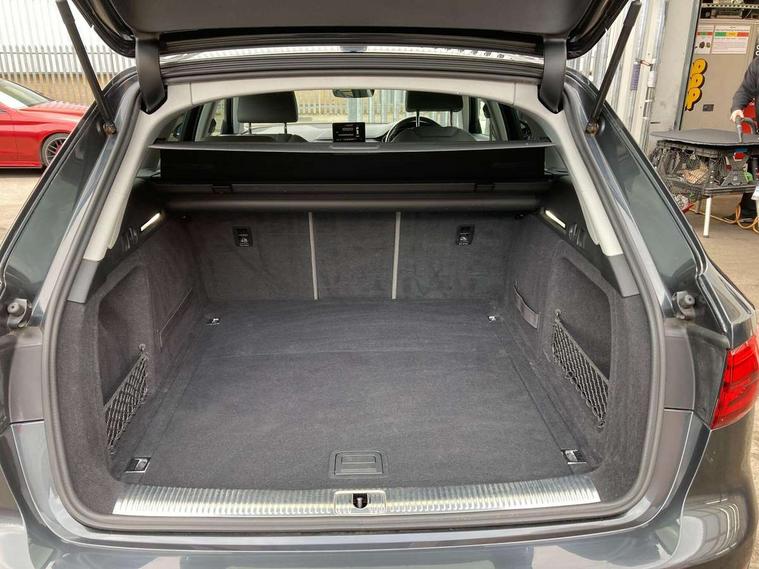 Audi drive select, Audi parking system plus with front and rear sensors, Audi Pre sense collision avoidance, Audi smartphone interface, Power tailgate, Rear parking sensors, Service interval indicator, Stop/start button, Voice control system, 2 USB ports, Aux input, DAB digital radio module, MMI radio plus with CD player, Acoustic windscreen, Auto dimming rear view mirror, Automatic headlights + automatic windscreen wipers, Body colour door mirrors, Chrome rolled exhaust, Contrasting bumpers and wheel arches, Electric adjustable heated door mirrors, Electric front windows, Electric rear windows, Headlight range control, Headlight washers, LED daytime running lights, Privacy glass with front acoustic glazing, Rear wiper, 12V socket in luggage compartment, 3 zone climate control, 4 way electric lumbar support for driver and front passenger, Aluminium door sill trims, Front centre armrest with 12v socket, Front/rear floor mats, Gearshift paddles, Isofix child seat preparation for front passenger/outer rear seats inc passenger airbag deactivation, Jack and tool kit, Load area rail system and fixing kit, Reach + rake adjustable steering column, Rear headrests, Retractable load area cover, Split folding rear seats, Top tether anchor plate for isofix child seat, Exterior off road aluminium package - A4 Allroad, Storage pack - A4/S4, 3 point seatbelts on all rear seats, ABS/EBD, Active bonnet, Adaptive driver and front passenger airbags, EDL + ASR, Electromechanical parking brake, ESP with off road detection, First aid kit, Front head airbags, Front seatbelt pretensioners + load limiters, Front side airbags, Multi-Collision braking, Seatbelt warning, Traction control, Tyre pressure monitoring system, Warning triangle, Keyless Go access/ignition system, Locking wheel bolts, Remote central locking, Thatcham category 1 alarm + immobiliser,