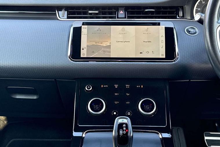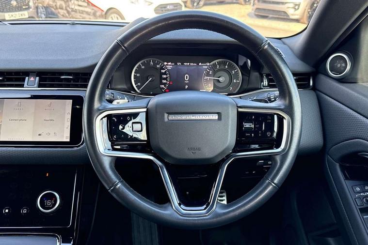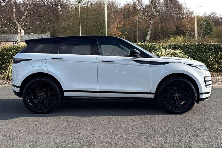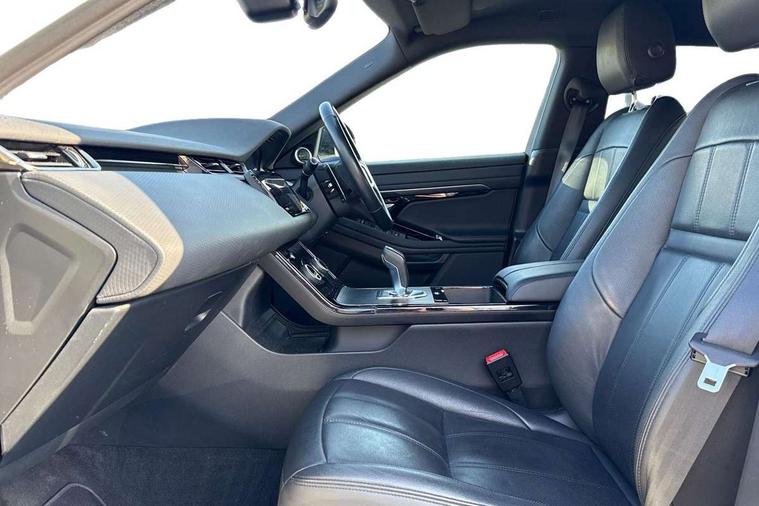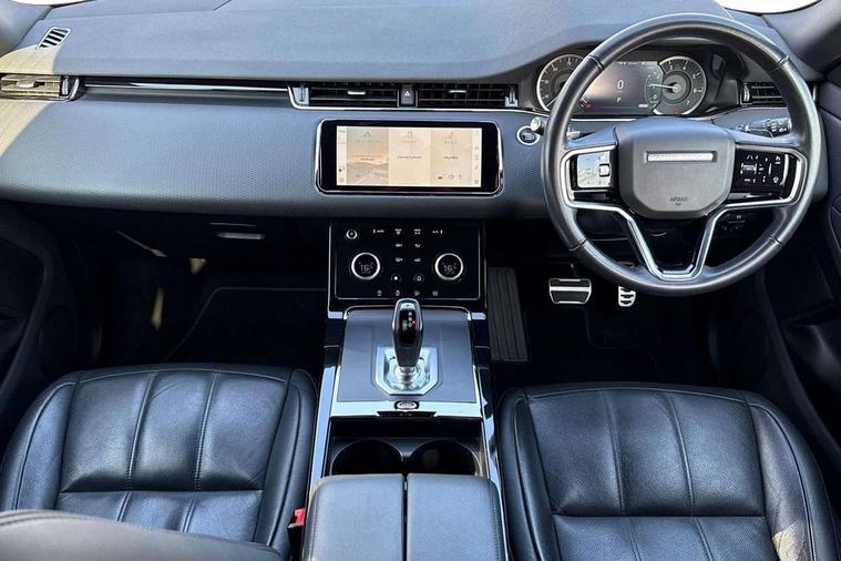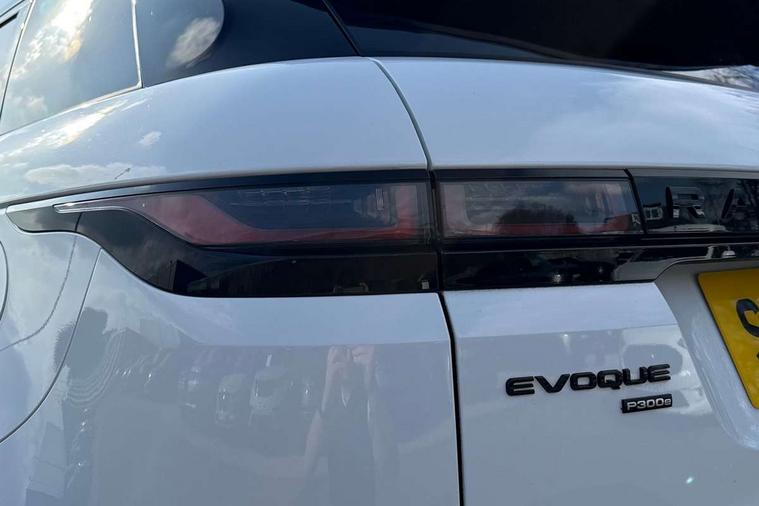 Adaptive cruise control, Android Auto, Apple car play, Bluetooth connectivity, Brake pad wear indicator warning light, Driver condition monitor, eCall emergency system, Electronic power assisted steering (EPAS), Front and rear parking aid, InControl remote, Land Rover InControl apps, Lane keep assist, Pivi pro connected includes upgraded infotainment, connected navigation pro, Nuance speech licence, Push button starter, Traffic sign recognition with adaptive speed limiter, Voice control system, 7 kW onboard charger, All terrain progress control, Electric rear axle drive, Home charging cable, Large fuel tank, Passive suspension, Public charging cable, Terrain Response 2 Auto, Digital Audio Broadcast radio-DAB, Steering wheel mounted controls, Auto headlights, Daytime running lights, Electric windows with one touch open/close and anti trap, Evoque and R-Dynamic badge, Flush deployable exterior door handles, Heated rear window with timer, Heated washer jets, Heated windscreen, P300e badge, Power fold, auto-dimming, heated door mirrors with approach lights and auto dimming driver side, Privacy glass, Rain sensing windscreen wipers, Rear fog lights, Rear side wing doors, Rear wiper, Tailgate spoiler, Third brake light, 40:20:40 split folding rear seats with centre headrest and armrest, Ambient interior lighting, Bright metal pedals, Heated steering wheel, Isofix system on outer rear seats, Overhead lighting console, Overhead stowage for sunglasses, Passive front head restraints, Rear air vents, Rear centre headrest, Rear head restraints, Satin chrome gearshift paddles, Single passenger seat, Sunvisors with illuminated vanity mirrors, Twin sliding front centre armrest, 3 rear 3 point seatbelts, Anti-lock braking system (ABS), Customer configurable autolock, DSC - Dynamic Stability Control, Electronic brake force distribution, Electronic parking brake, Electronic traction control, Emergency braking, Front and rear seatbelt reminder, Hill descent control, Hill launch assist, Low traction launch, Power operated child locks, Roll stability control, Six airbags - Driver and passenger airbags/driver knee airbag/front side airbag and curtain airbags, Torque vectoring brake, Tyre pressure monitoring system, Alarm, Immobiliser, Intrusion sensor, Locking wheel nuts,