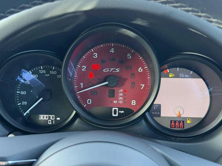 Analogue clock on dashboard, Automatic start/stop system, Digital boost pressure gauge on colour display of instrument cluster, Integrated cluster of three round instruments with black rev counter and GTS logo, Off-road button, On board computer, Porsche Communication Management (PCM) including online navigation module, mobile phone preparation, audio interfaces and voice control system, Power tailgate, Sports button in centre console, 7 Speed Porsche Doppelkupplung with manual controls on steering wheel and automatic mode, 75 litre fuel tank, Direct fuel injection (DFI), Gasoline particulate filter, Sport air suspension with ride-height adjustment including lowering of 10mm, VarioCam Plus variable valve timing and switchable valve lift, 2 USB sockets in rear centre console, Apple CarPlay with Siri voice recognition, Connect Plus including online navigation, LTE communication module with SIM card reader, wireless internet access, Porsche Car Connect services, DAB Digital radio, Porsche Vehicle Traking System Plus (PVTS Plus), Two USB C charging and connectivity ports in the front centre console storage compartment, Active radiator grille shutters, Automatic headlight activation including welcome home lighting, Bumper system with high strength cross members and two deformation elements + One threaded fixture point for towing eye contained in onboard tool kit, Dynamic cornering lights, speed-sensitive headlight and dynamic range control, adverse weather function, four-point LED daytime running lights, Electric front and rear windows with remote closing function + anti trap + one touch, Electrically adjustable, folding and heated exterior mirrors with aspherical on driver's side, Front apron middle section painted in black matt, Front light modules with LED position lights and direction indicators, Front windscreen wipers with two speeds, intermittent wipe and rain sensor, Front with integrated cooling air intakes, Fully galvanised body, Heated rear window with automatic switch off, High gloss black side window trims, High level 3rd LED brake light integrated into roof spoiler, Loading edge protection in aluminium, Porsche logo and model designation on tailgate in matt black, Rear window wiper with intermittent function and washer jet, Roof spoiler with fixed double wing design and fin like look in high gloss black, Side skirts in sport design, Switchable sports exhaust system, Tinted LED taillights including light strip, Towbar preparation, Twin sports tailpipes in black with sports exhaust, 3 adjustable rear headrests, 3 zone auto climate control separate temperature setting+air recirculation include quality sensor, airflow regulation+AC MAX button+humidity sensor, 4 way adjustable front head restraints, 40:20:40 split folding rear bench seat, Cloth hook b-pillar, Five seats rear seat system with two comfort outer seats and a central seat, Fold up centre console armrest with fore/aft adjustment, Front and rear bottle holders in door panels, Glove compartment, Isofix fastening system for child seats on outer rear seats, Luggage compartment cover, Particle/pollen filter with active carbon filter, Rear armrest with 2 cupholders, Storage bin in centre console, Storage compartment in side of luggage compartment and storage compartment in spare wheel recess, Storage pocket in front and rear doors, Two integrated cup holders in front with variable diameter, Two socket 12V power outlets in front console and luggage compartment, Uncovered storage compartment in centre console, Ambient comfort lighting pack - Macan, Lower exterior trim package in painted exterior colour - Macan, 3-point automatic seatbelts with front and outer rear seats pretensioners and force limiter + manually height adjustable seatbelt + reminder warning, 6-piston aluminium monobloc fixed caliper brakes at front, internally vented brake discs, Auto hold function, Brake calipers with red finish, Brake discs with diameter of 390mm at front and 356 mm at rear, Curtain airbags along entire roof frame and side windows from A pillar to the C pillar, Electronic parking brake, Front passenger airbag deactivation facility for installation of child seats indicator in overhead console, Front side airbags integrated into seat, Full size driver and passenger airbags, Multi-Collision braking, Porsche hill control (PHC), PTM(Porsche Traction Management) and All-wheel drive with map-controlled multi-plate clutch, Roll over sensor for curtain airbag and seatbelt pretensioners, Side impact protection in doors, Tyre pressure monitoring system, Vehicle stability system, Porsche stability management (PSM) including ABS, ASR, ABD, MSR and trailer stability management, Vented discs brake with combination floating calipers at rear, Alarm system with ultrasonic interior surveillance, Engine immobiliser with key transponder, Remote control central locking, Accent trims with silver coloured finish, Wheel centres with full colour Porsche crest,