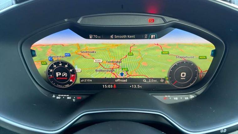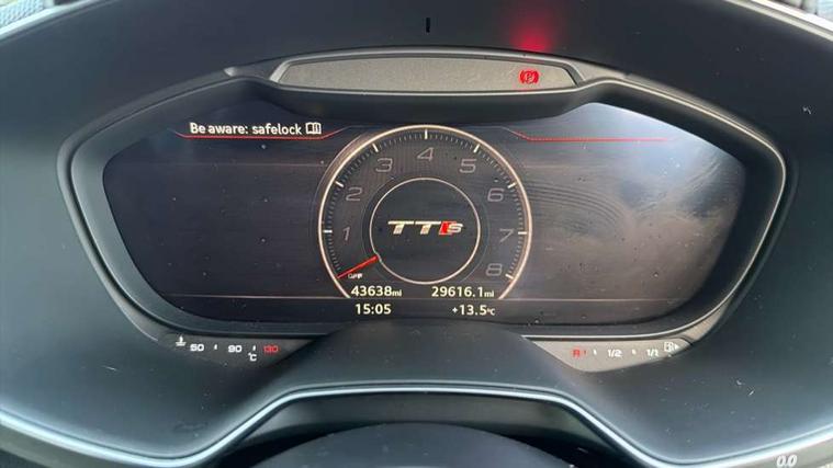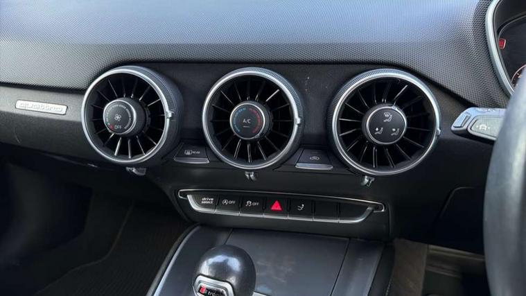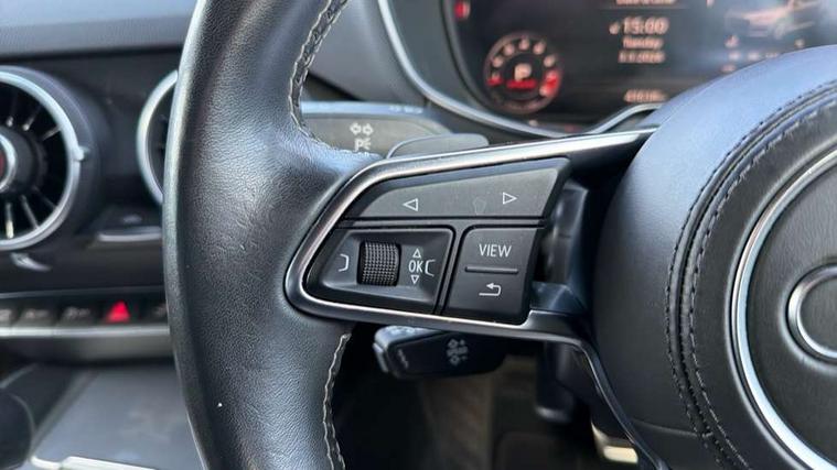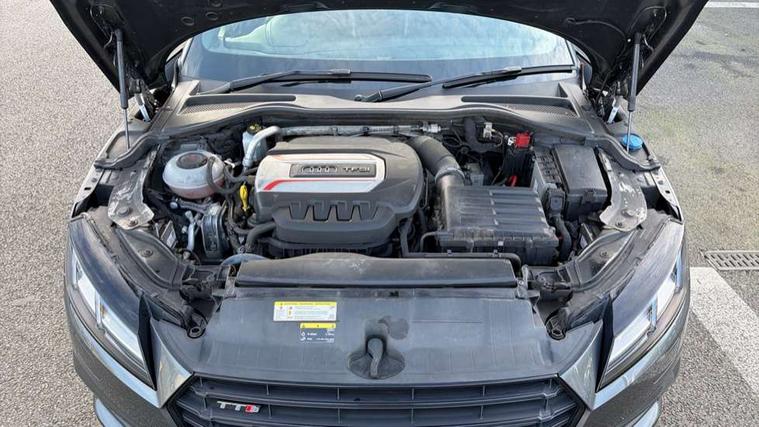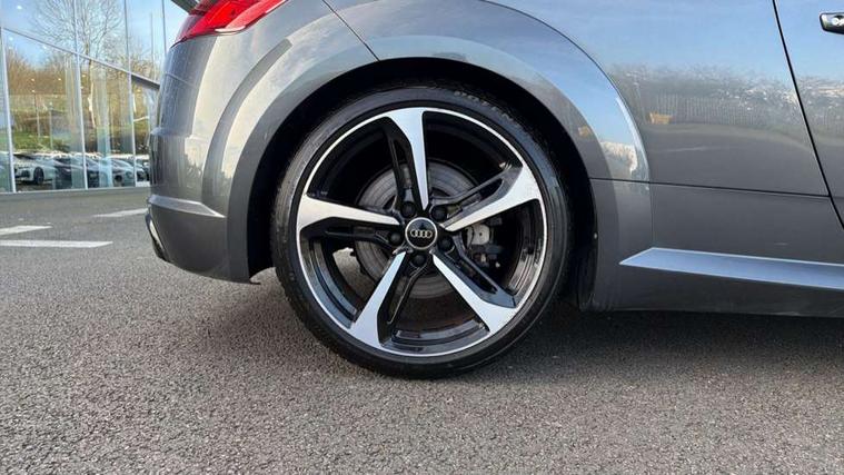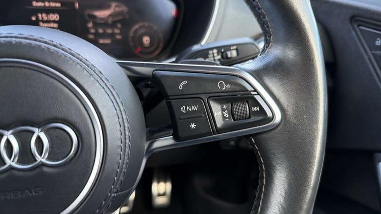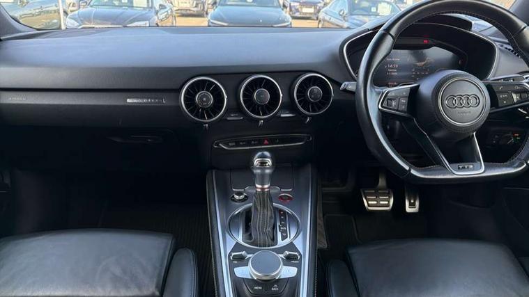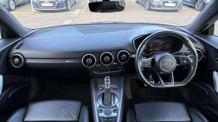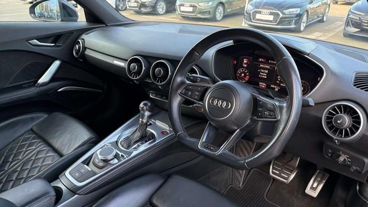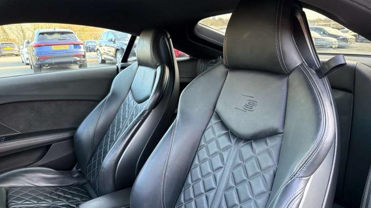 Audi active lane assist, Audi drive select, Audi virtual cockpit - 12.3" high-resolution LCD display with fully customisable instrument cluster, Cruise control + speed limiter, MMI touch panel, Mobile phone preparation with bluetooth interface, Progressive power assisted steering, Service interval indicator, Audi magnetic ride, TTS suspension, Audi music interface, Auxiliary input socket, Bang + Olufsen advanced sound system, Bluetooth audio streaming, DAB Digital radio, MMI Radio with CD player and SD/XC card slot, Air intake grilles in high gloss black, Audi Beam uses LEDs to project the Audi Sport logo, Auto headlight range control, Black door mirrors, Body colour bumpers, Electric front windows, Green tinted heat insulating glass, High gloss black radiator grille, LED daytime running lights, Matt black radiator grille and number plate holder, Privacy glass, Rear diffuser, Retractable rear boot spoiler, S body styling, Sunband for windscreen, 3 spoke flat bottomed high multi-function leather sport steering wheel with gearshift paddles, Aluminium door sill trims, Black headlining, Electric lumbar support, Extended aluminium look with stainless steel pedals, Front centre armrest, Front head restraints, Front passenger seat isofix location point, Heated front seats, Height/reach adjust steering wheel, ISOFIX on outer rear seats, Split folding rear seat, Top tether anchor plate for isofix child seat, Auto dimming rear view mirror with light and rain sensors pack - TT, High gloss black pack - TT, LED interior light pack - TT/TT RS, Non smoking pack - TT/TT RS, 3 point front seat belts, ABS, ASR traction control, Curtain airbags, Driver/Front Passenger airbags, EDL traction control, Electromechanical parking brake, ESP, First aid kit, Front passenger airbag deactivation, Front side airbags, Head airbags, Hill hold assist, Seatbelt warning, Tyre pressure warning, Warning triangle, Anti theft alarm, Immobiliser, Keyless start, Locking wheel bolts, Remote central locking, Matt brushed aluminium inlays, Tyre repair kit,