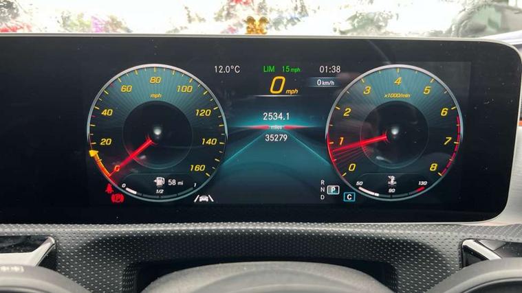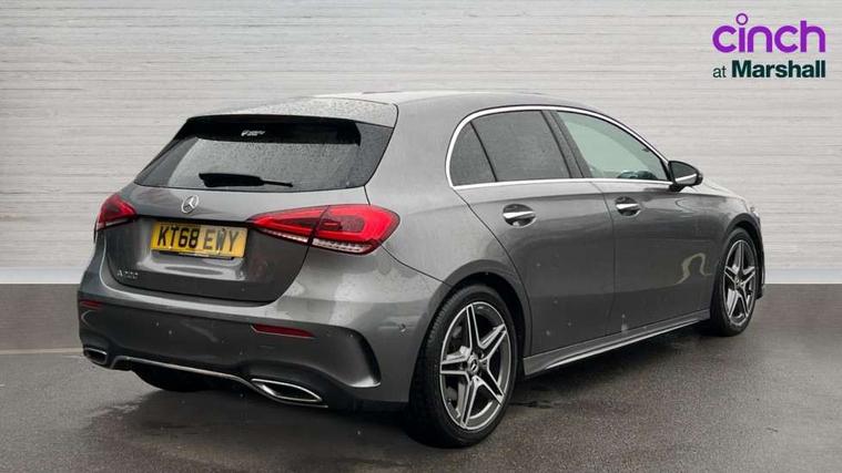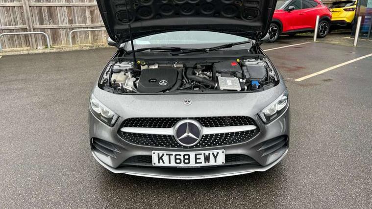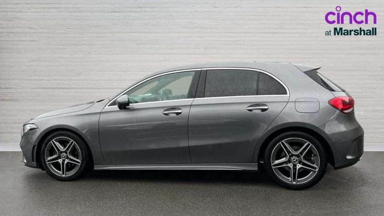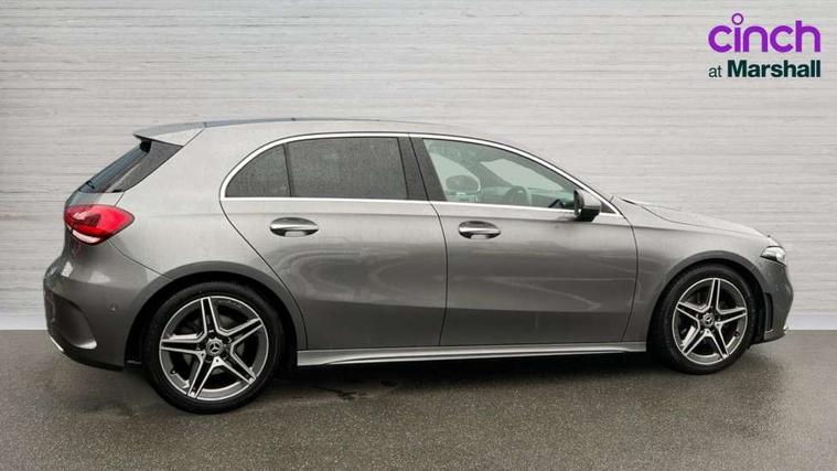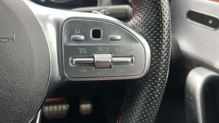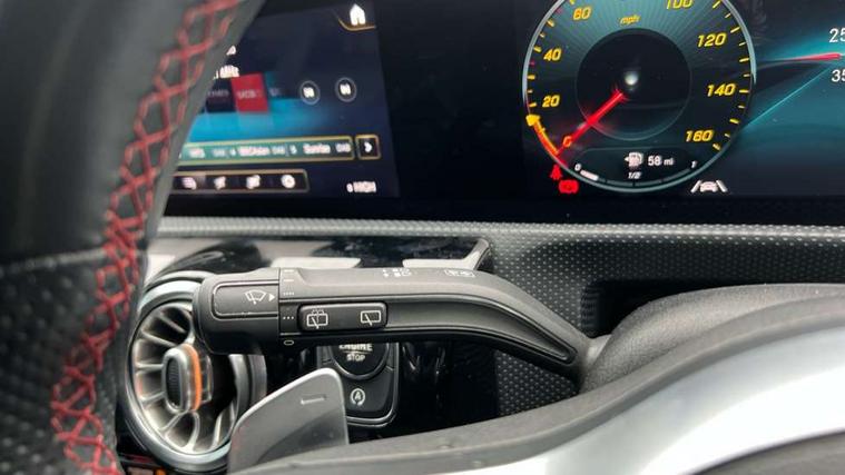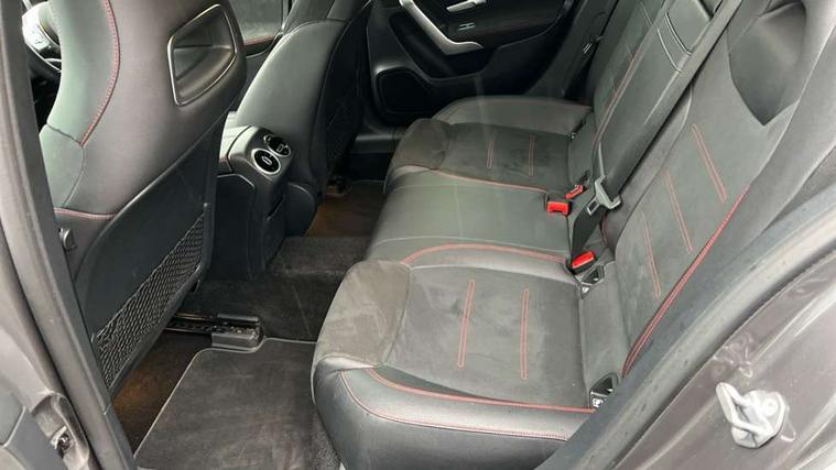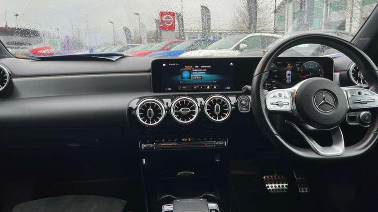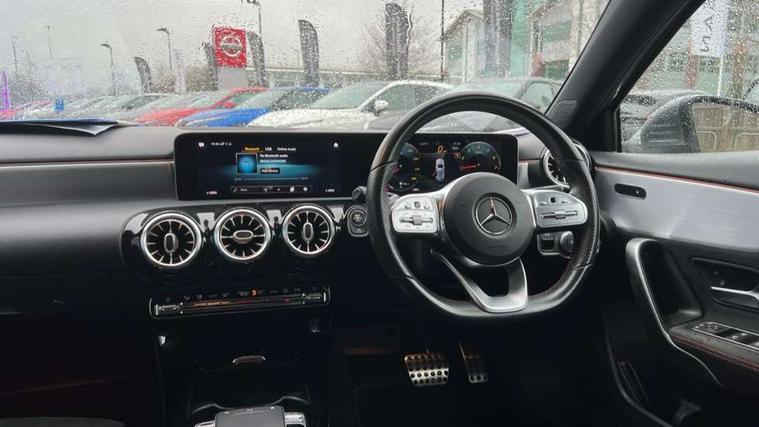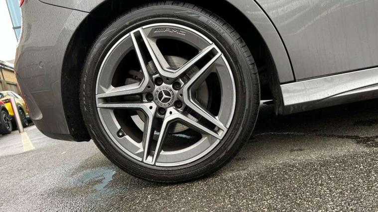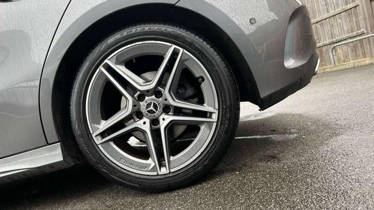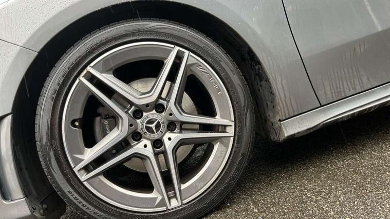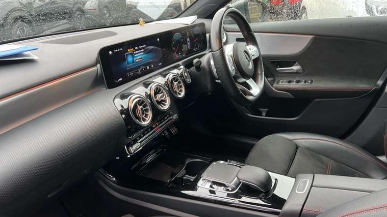 10.25" Digital instrument cluster display screen, 10.25" media display, 180 degree rear view camera with parking guidelines, Active lane keep assist, Active park assist with parktronic system including front and rear parking sensors, Attention assist, Brake pad wear indicator warning light, Direct steering, Direction indicators with lane change function, DYNAMIC SELECT with a choice of driving modes (ECO, Comfort, Sport, Sport+ and Individual), Fluid level warning indicator for fuel, oil, coolant and washer fluid, Hard-disk navigation, Lamp failure indicator, Mercedes me connect including emergency call system, accident recovery, breakdown management and maintenance, Outside temperature gauge, Radio aerial integrated into roof spoiler, Service indicator (ASSYST), Speed sensitive power steering, Stop/start system, Trip computer, Voice activation, Lowered comfort suspension, DAB Digital radio, Dual bluetooth interface, 2 USB ports (type C), MBUX multimedia system with DAB digital radio and touchpad including satellite navigation, Mid-range sound system, Adaptive brake lights, AMG front, rear apron and side skirts, Blue tinted glass, Body colour bumpers, Body colour door handles, Body colour side skirt, Body coloured door mirrors, Chrome beltline trim, Diamond radiator grille with chrome pins and silver louvre + chrome insert, Electric adjustable and heated door mirrors with integrated LED side indicators, Electric front windows, Electric rear windows, Exhaust system - Twin trapezoidal tailpipes in polished stainless steel, Headlamp assist automatic headlamp activation, Heated glass rear windscreen + timer control, LED high performance headlamps with integrated LED daytime running lights, LED tail lamp, LED third brake light, Rain sensor windscreen wipers, Rear fog lights, Rear wiper, 12V socket, 3 Spoke flat bottom leather multi function steering wheel with perforated leather in grip area, 40:20:40 split folding rear seats, Air vents surround and cruciform nozzle in silver chrome, AMG floor mats with red stitching, Artico man-made leather/Microfibre Dinamica upholstery with red contrast stitching, Auto Mercedes-Benz child seat recognition sensor, Black roof lining, Brushed stainless steel sports pedals with rubber studs, Controller on centre console with chrome surround, Cup holder and stowage compartment lighting, Front centre armrest with storage compartment, Front door sills with Mercedes Benz lettering, Front footwell lights, Front reading lamps, Front seat backs luggage nets, Front seat cushion length adjustment, Front signal exit lamp, Front vanity lights, Gearshift paddles on steering wheel, Handle recess/closing light, Heated front seats, Height/reach adjustable steering column, Illuminated door sills, Illuminated glovebox, Interior lighting - 64 colour Ambient lighting, ISOFIX Child seat top tethers and anchor fixings, Load securing rings in luggage compartment, Luggage compartment cover, Manual height adjustable front seats, Oddments tray lighting, Rear armrest, Rear head restraints, Rear Reading Lamps, Seat occupancy sensor for front passenger seat, Sports seats with integrated headrests, Storage compartment under load area floor, Sunvisors with illuminated vanity mirrors, Touchpad, Touchpad illumination, Twin front cupholders, Two zone thermotronic luxury automatic climate control, Mirror package - A Class, Seat comfort pack - A Class, 3 rear 3 point seatbelts, ABS with Brake Assist, Active bonnet, Adaptive brake assist with hold function and hill start assist, Black seatbelts, Brake calipers with Mercedes-Benz lettering + perforated brake discs, Childproof locks manually operated for rear doors and electrically operated for rear power windows, Crash responsive emergency lighting, Driver and passenger head and side airbags, Drivers knee airbag, Dual stage driver/passenger airbags, Electronic parking brake, ESP curve dynamic assist, ESP with ASR, Front and rear seatbelt reminder, Tyre pressure monitoring system, Warning triangle and first aid kit, Window airbags, Alarm system/interior protection/immobiliser, Keyless go lock/unlock, Remote central locking and crash sensor with emergency opening function, 18" AMG 5 twin spoke light alloy wheels in titanium grey with highsheen finish, Tirefit sealant kit,