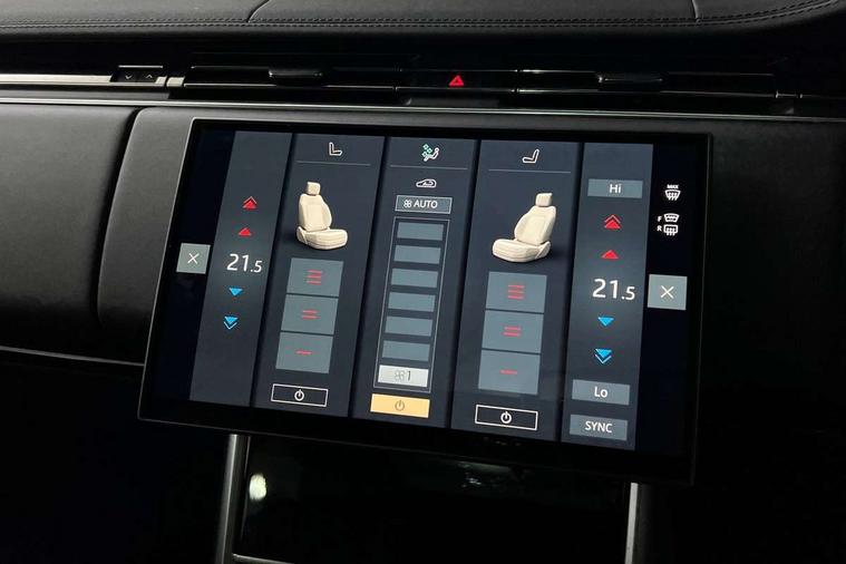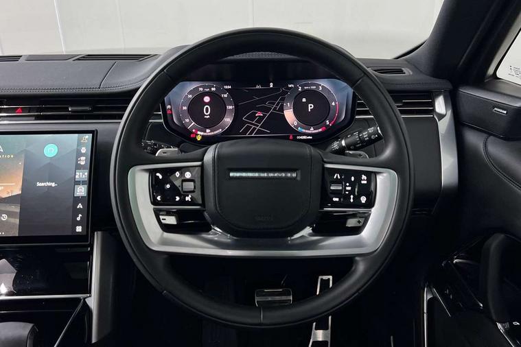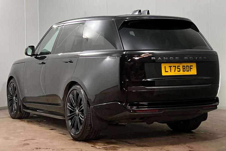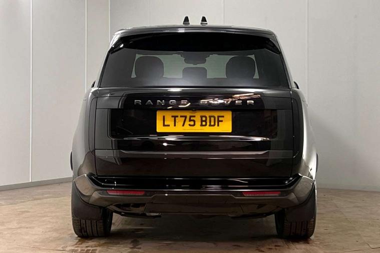 13.1" Touchscreen, 3D surround camera inc frwd traffic detection, vehicle clearance guidance, 3D view, clearsight ground view, manoevure light, 360 parking aid, wade sensing, Adaptive cruise control with steering assist, All Terrain Info Centre, All wheel steering, Android Auto, Apple car play, Blind spot assist, Bluetooth connectivity streaming, Driver condition response, Eco mode, Electric power assisted steering (EPAS), Emergency call service, Front and rear parking aid, Interactive driver display, Lane keep assist, Park assist, Powered upper and lower tailgate, Rear collision monitor, Rear traffic monitor, Remote, Traffic sign recognition with adaptive speed limiter, Wi-Fi Enabled with data plan, Wireless device charging with phone signal booster, 8 speed automatic transmission, Active damper technology system, Adaptive dynamics, All terrain progress control, All Wheel Drive (AWD), Automatic access height, Electronic air suspension, Open differential with torque vectoring by braking, Terrain Response 2 Auto, Twin speed transfer box, Digital Audio Broadcast radio-DAB, Meridian 400W sound system, No rear seat entertainment system, Pivi pro including smart settings, Connected navigation pro, nuance speech, USB socket, Acoustic laminated windscreen, Animated directional indicators, Auto dimming interior rear view mirror, Automatic headlights, Automatic levelling headlights, Body coloured roof, Centre high mounted stop light, Electric windows with one touch open/close and anti trap, Engine cover, Flush deployable exterior door handles, Front and rear recovery eyes, Front fog lights, Headlamp power wash, Heated rear window, Heated washer jets, Heated windscreen, Illuminated aluminum treadplates with Range Rover script, Laminated front and touchened rear side glass, LED tail lights, No badges, No towing, Pixel LED headlights with signature DRL, Power fold, auto-dimming, heated door mirrors with approach lights, Privacy glass, Rain sensing windscreen wipers, Rear boot, Rear fog lights, Rear side wing doors, Side repeater indicators in mirror, Sliding panoramic sunroof includes and auto sunblind, Trailer stability assist, Winter wiper park position, 12V power sockets, 20 way heated electric front seats with power recline heated rear seats, 3 seat bench in 2nd row, Air quality sensor, Bright metal pedals, Cabin lighting, Carpet mats, Centre console with armrest, Customer configurable single point entry, Driver and passenger front seat armrests, Easy boot loading, Ebony Carpet, Ebony morzine headlining, Extended leather upgrade, Front and rear cupholders, Front and rear grab handles, Front head restraints, Gearshift paddles, Heated steering wheel, Hook in load space, Loadspace cover, Loadspace light, Luggage tie down in loadspace, Multifunction steering wheel, Perforated Windsor leather upholstery, Rear centre armrest, Rear head restraints, Rear ISOFIX, Single front passenger seat, Soft close doors, Soft grain leather steering wheel, Sunvisor dual driver and single passenger, Three zone climate control, Upper and lower glovebox, Non-smoker package, Online pack with data plan - Range Rover, Shadow exterior pack - Range Rover, 3x3 point rear seat belts, Anti-lock braking system (ABS), Black brake calipers, Brake hold function, Cornering brake control (CBC), Customer configurable autolock, DSC - Dynamic Stability Control, Electronic brake force distribution, Electronic parking brake, Electronic traction control, Emergency braking, Front airbags with passenger seat occupant detector, Front side airbags, Hill descent control, Hill launch assist, Low traction launch, Occupant protection assist, Power operated child locks, Roll stability control, Tyre pressure monitoring system (TPMS), Immobiliser, Intrusion sensor and alarm, Keyless entry, Locking wheel nuts, Remote central locking, Secure tracker pro, Gloss grand black veneer, Noble chrome controls, 23" Gloss black alloy wheels - Style 1075, Reduced section alloy spare wheel,