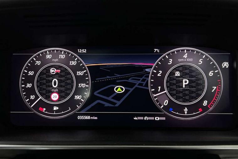 All Terrain Info Centre, Bluetooth connectivity, Clear exit monitor, Driver condition monitor, Incontrol apps in vehicle touchscreen, Incontrol pro services and wifi hotspot, InControl secure Tracker, Interactive Driver display instrument cluster, Mist sensor, Navigation pro system with 10" touch screen, app interface and media storage, Powered gesture tailgate/boot lid, Push button start, Rear traffic monitor, Remote premium - Upgraded Incontrol remote app including remote climate control (engine dependent), remote lock + Unlock and remote beep + flash, Touch pro duo system, Traffic sign recognition with adaptive speed limiter, Trip computer, Adaptive dynamics, All terrain progress control, Configurable dynamics, Electronic active differential with brake torque vectoring, Gradient release control (GRC), SVR sports suspension with dynamic response (active roll control), Terrain Response 2 with dynamic program, Twin speed transfer box, Bluetooth audio streaming, DAB Radio (Digital Audio Broadcasting), Incontrol protect - SOS emergency call with automatic collision detection, optimised assistance call and Incontrol remote app essential, USB/aux input socket, Acoustic laminated front windows, Active exhaust control, Adaptive brake lights, Auto dimming interior rear view mirror, Automatic headlights, Body coloured side sills and bumpers corners, Electric windows with one touch open/close and anti trap, Electrical towing preparation, Follow me home lighting, Front and rear recovery eyes, Headlight power wash, Heated rear window, Heated windscreen includes heated washer jets, Illuminated metal treadplates with brand name script, Laminated front and toughened rear side glass, LED rear lamps, Power fold, auto-dimming, heated door mirrors with memory and approach lights, Quad tailpipes, Rear fog lights, Rear wash/wipe, Remote window closing, Side repeater indicators in mirror, SVR badge, Switchable sports exhaust, Trailer stability assist, Unique light weight exhaust system, 16 way driver/passenger electrically adjustable SVR performance seats with memory, 2 way rear head restraints, 4 way lumbar support with memory function, 60/40 split folding rear seat, Aluminium gear shift paddles, Automatic air recirculation system, Bright metal foot pedals, Centre console with armrest, Climate control memory, Configurable Ambient interior lighting, Customer configurable single point entry, Driver's footrest, Extended leather upgrade includes door top rolls and leather instrument panel mid section, Front and rear cupholders, Front and rear premium carpet mats, Front door storage space, Front map lights, Front seat back map pockets, Front stowage pocket, Front/rear passenger grab handles, Heated steering wheel, Integrated front head restraints, Isofix child seat preparation, Loadspace light, Loadspace mounting provisions, Lockable glovebox, Multifunction steering wheel, Pollen filter, Reach/rake electric adjustable steering column + entry/exit tilt away, Rear centre armrest, Rear ISOFIX, Roller blind loadspace cover, Sports pedals, SVR leather steering wheel, SVR Performance seats, Three 12V accessory power outlets, 3 point seatbelts on all seats, Anti-lock braking system (ABS), Brake pre-fill technology, Cornering brake control (CBC), Curtain airbags, Customer configurable autolock, DSC - Dynamic Stability Control, Dual stage driver/passenger airbags, EBD - Electronic brakeforce distribution, Electronic parking brake, Electronic traction control, Emergency braking includes city, urban AEB and pedestrian, Front seatbelt pretensioners, Gradient acceleration control, Height adjustable front seatbelts, High speed emergency braking, Hill descent control, Hill launch assist, Low traction launch, Passenger seat occupant detector with front airbags, Power operated child locks, Roll stability control, Seatbelt warning, TPMS (Tyre pressure monitoring system), Immobiliser, Intrusion sensor, Keyless entry, Locking wheel nuts, Perimetric and volumetric anti theft alarm, Remote locking, Tracker system,