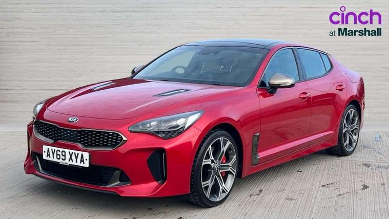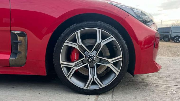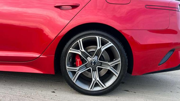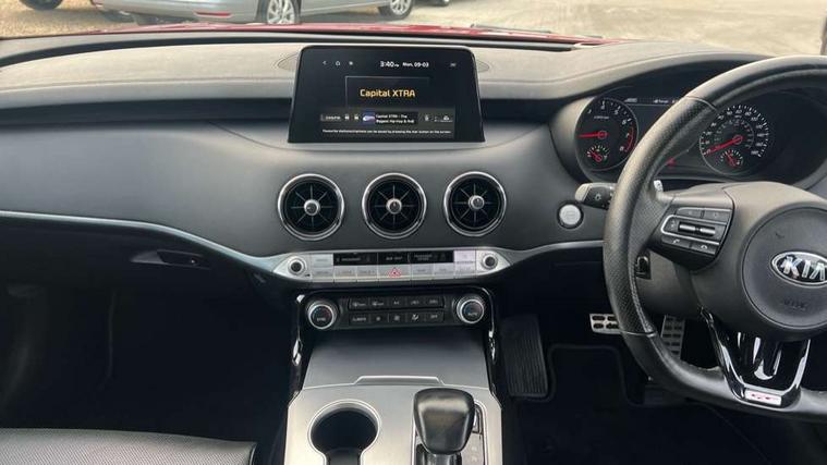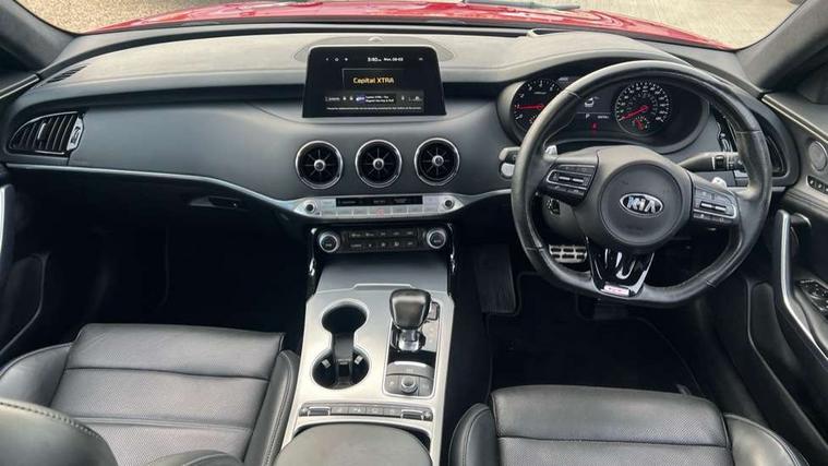 8" touch screen sat nav with TMC, Advanced smart cruise control & speed limiter, Apple car play/Android Auto, Around View Monitor, Blind spot monitoring with rear cross traffic alert, Bluetooth audio streaming with voice recognition, Digital clock, Drive mode selector, Driver attention warning, Electric power steering, Emergency stop signalling system, European mapping upgrade, External temperature gauge, Forward Collision-Avoidance Assist (FCA) - City/Pedestrian, Front and rear parking sensors, Gear selection indicator, Head up Display, Kia connected services, Lane keep assist, Low washer fluid warning light, Memory for cluster display, Memory for Head up Display, One touch facility for sunroof, Power tailgate, Rear parking sensor, Reversing Camera System (integrated into Sat Nav Screen), Roll over sensor, Speed limit information function (SLIF), Supervision cluster with 7" TFT display, Trip computer, Wireless Smartphone charger, Electronic suspension control, Intelligent Stop and Go, Limited slip differential, DAB Radio with MP3, Harman/Kardon Premium sound system with 15 Speakers + subwoofer and amplifier, Rear USB port, Steering wheel mounted controls, USB and auxiliary socket, Auto dimming exterior rear view mirror, Auto dimming rear view mirror, Automatic headlight levelling, Automatic headlights, Black beltline mouldings, Body colour bumpers, Body colour door handles, Body colour side sill mouldings, Chrome door mirrors, Chrome roof line trim, Dark chrome grille surround, Driver's door mirror memory, Driver's side wide angle mirror, Dynamic cornering light, Electric adjustable/heated/folding door mirrors, Exterior grab door handles, Front and rear electric windows, Front door courtesy lamps, Front drivers side windows/one touch up/down, Front fog lights, Heated rear window, High beam assist, LED daytime running lights, LED Headlights, LED indicators in door mirrors, LED rear lights, Metallic effect stamped grille, Privacy glass, Puddle lights, Quad tailpipes, Rain sensing front wipers, Rear wash/wipe, Shark fin antenna, Tinted glass, UV-reducing solar glass, Visible VIN plate, Welcome home function, Windscreen wiper de-icer, 12V power points in front + rear centre consoles, 3 x passenger assist grips, 4 way electrically adjustable lumbar support for drivers seat aircell, 4 way electrically adjustable lumbar support for front passenger seat, 60/40 split/folding 2nd row of seats, 8 way electric adjustable drivers seat, 8 way electrically adjustable passenger seat with height, reach, till and backrest, Aluminium pedals, Centre cabin LED lights, Centre console storage box, Cupholders in centre console, Door storage trays, Driver seat memory function, Driver/passenger sunvisors with illuminated vanity mirrors, Dual zone automatic air conditioning, Electric tilt/telescopic steering wheel, Extended seat cushion - Driver, Front seat and rear pockets, Front/rear centre armrests, Gearshift paddles, Glovebox illumination, Heated front seats, Heated outer rear seats, Heated steering wheel, Height adjustable headrests, ISOFIX top tethers and lower anchor points, Leather and chrome trimmed gearshift, Leather trimmed door armrests, Leather trimmed steering wheel, LED interior illumination, LED map reading lights, Luggage area lamp, Luggage compartment cover, Luggage net with hooks, Nappa leather upholstery, Rear armrests with cupholder, Rear coat hooks, Reclining/sliding front seat, Satin chrome interior door handles, Side bolster support adjustment for driver seat, Stainless Steel Scuff Plates, Suede cloth headlining, Ventilated front seats, Ventilation ducts to rear compartment, 3 point seatbelts on all seats, ABS, Active bonnet, Automatic unlocking of doors in case of impact, Autonomous emergency braking, Brembo brake callipers, Brembo braking system, Curtain airbags, Driver/Front Passenger airbags, Drivers knee airbag, Electronic parking brake, Electronic stability control, Fasten seatbelt reminder, Front passenger airbag deactivation, Height adjustable front seatbelts, Hill start assist control (HAC), Rear door child safety locks, Traction control, Twin front and side airbags, Tyre pressure monitoring system, Alarm system, Deadlocks, Immobiliser, Locking wheel nuts, Smart key entry system, Speed sensitive auto door locking, Aluminium finish to centre console, Leather dashboard, 19" Alloy wheels, Tyre mobility system,