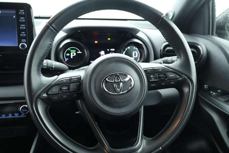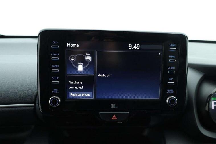Adaptive cruise control, Adjustable speed limit with speed warning, Bluetooth connectivity, Colour binocular inspired displays with digital speedometer, E-call, Electric power steering, Hybrid energy display, Multi information display switches on steering wheel, Reversing camera, Smartphone integration with Apple CarPlay and Android auto, Vehicle Stability Control (VSC), 8" Multimedia display touch screen, JBL Premium sound system with 8 speakers, Toyota Touch 2 with DAB, USB connection, Acoustic windscreen glass, Auto windscreen wipers, Automatic headlights, Body coloured door mirrors, Electric adjustable heated door mirrors, Follow me home headlights, Front auto power windows with anti jam protection, Full LED rear lights, LED daytime running lights, LED front fog lights, LED Headlights, LED High mounted stop lamp, Painted front grille, Rear auto power windows with anti jam protection, Rear privacy glass, Rear spoiler, Shark fin antenna, Turning signal integrated indicators in door mirrors, 3 adjustable rear headrests, 3 spoke leather steering wheel, 60/40 split folding rear seat, Active headrests, Adjustable boot height, Coat hooks in rear grab handles, Cup holders (2 front & door), Data Communication Module (DCM) connected services, Dual zone automatic air conditioning, Fabric seat with partial synthetic leather upholstery, Front armrest, Front sport seats, Glovebox, Height adjustable driver's seat, Height adjustable passenger seat, Isofix seat fixing, Leather gearshift, Map pockets on the backs of the front seats, Pollen filter, Shopping bag hooks, Tilt/telescopic steering column, 3 point seatbelts on all rear seats, ABS+EBD+Brake assist, Electronic parking brake, Emergency brake light system (EBS), Front passenger airbag on/off switch, Front seatbelt reminder, Hill start assist control (HAC), Rear child proof door locks, Rear seat belt reminder, Supplemental Restraint System (SRS) 8 airbags: Driver & passenger's airbags, dual side curtain airbags, side impact airbags, front centre airbag, Toyota Safety Sense 2, Precollison + Night time Pedestrian & Cyclist Detection, Lane Trace Assist, Auto High Beam, Intelligent ACC & Road Sign Assist, Tyre pressure warning system, Alarm/immobiliser, Keyless smart entry with push button start, Remote powered central double locking doors, Piano black interior trim, Soft touch instrument panel, Space saver spare wheel,