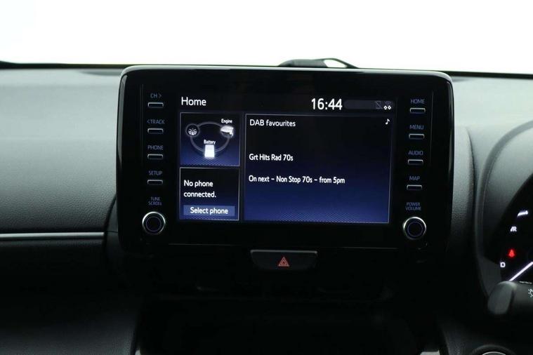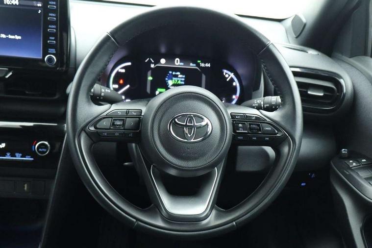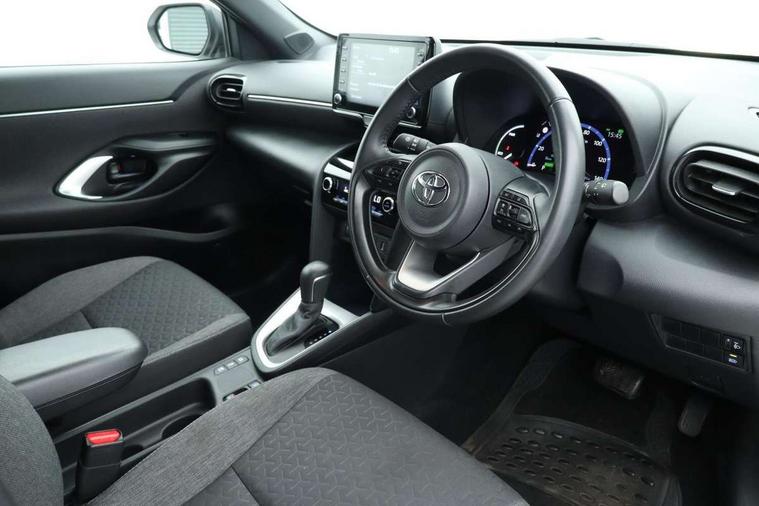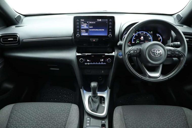 7" Multi information display screen, 8" Toyota touch 2 multimedia system with Smartphone integration with Apple CarPlay and Android auto, Adjustable speed limiter, Bluetooth connectivity, Driver attention alert system, eCall emergency system, Electric power steering, Full range intelligent adaptive cruise control, Hybrid system indicator, Key reminder warning, Lane trace assist, Multimedia, audio, telephone and voice recognition switches on steering wheel, My T Connected services, Pre-collision system enhanced with emergency steering assist, Reversing camera, Road sign assist - RSA, Steering assisted vehicle stability control, 6 speakers, DAB Digital radio, USB connection, 3rd brake light, Acoustic windscreen glass, Aluminium roof rails, Anti-jam protection on power windows, Auto high beam [AHB] with on/off switch, Automatic headlights, Black lower front grille, Black Shark-fin antenna, Black upper front grille, Black wheel arch mouldings, Body colour door handles, Body colour front bumper, Body colour rear bumper, Electric adjustable heated door mirrors, Follow me home headlights, Front and rear electric windows with auto up/down function, Front intermittent wipers, Headlight cut off reminder, Indicators integrated on door mirrors, Intermittent rear wiper, LED daytime running lights guide, LED front fog lights, LED front light guide, LED Indicators, LED projector headlights, LED rear light guide, Manual headlight levelling, Manually retractable door mirrors, Noise reduction layer on windscreen, Privacy glass, Rain sensor, Rear LED lights with sequential indicators, Rear side wing doors, Rear spoiler, Rear window defogger, 12v power outlet - front, 2x Rear coat hooks, 3 seat bench in 2nd row, 3 spoke leather steering wheel, 40:20:40 split folding rear bench seat, Adjustable speed limiter switch on steering wheel, Auto air conditioning, Black roof lining, Boot light, Central armrest, Centre console in light blue ambent lighting, Driver and front passenger personal lights, Fabric door trim, Fabric upholstery, Footwell in light blue ambient lighting, Front console box, Front cup holders, Front head restraints, Glovebox, Height adjustable driver's seat, Height adjustable front passenger seat, Hooks for luggage holding belts, ISOFIX child restraint system, Lane departure alert switch on steering control, Leather gearshift, Light blue ambient lighting on front doors, Manual telescopic and tilting steering wheel, Mirror on driver and passenger sun visor, Pollen air filter, Rear cup holders, Rear head restraints, Single front passenger seat, Soft tonneau cover, 3x3 point rear seat belts, ABS+EBD+Brake assist, Driver and passenger central airbags, Driver and passenger front airbags, Driver and passenger side airbags, Electronic parking brake, Emergency brake light system (EBS), Front seat belt reminder, Hill start assist control (HAC), Passenger airbag on/off switch, Pre-collision system with pedestrian and cyclist detection, Rear door child safety locks, Rear passenger side airbags, Rear seat belt reminder, Traction control, Tyre pressure warning system, Immobiliser, Intrusion alarm, Keyless smart entry with push button start, Power door locks, Power passenger window lock, Remote door lock, Tyre repair kit,