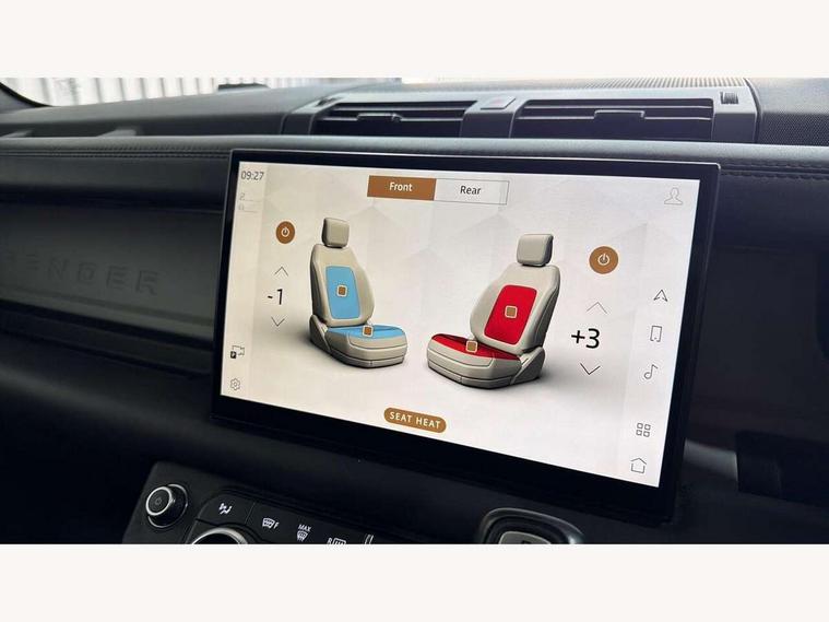 11.4" touchscreen, 360 degree parking aid, 3D Surround Camera with 360 View, 180 Rear View, Front Traffic Detection, Forward Vehicle Guidance, Tow Hitch Assist and clear sight Ground View, Adaptive cruise control, Android Auto, Apple CarPlay, Assisted tailgate with soft close, Blind spot assist, Bluetooth system, Brake pad wear indicator, Clear exit monitor, Connected navigation pro, Driver condition monitor, Electric power assisted steering (EPAS), Interactive driver display, Lane keep assist, Push button start, Rear collision monitor, Rear traffic monitor, Traffic sign recognition with adaptive speed limiter, Trip computer, Wade Sensing, Adaptive dynamics, DAB Radio (Digital Audio Broadcasting), Pivi pro connected, Automatic headlight levelling, Automatic headlights, Black exposed rear recovery eyes, Centre high mounted stop light, D300 badge, Electric heated/power fold door mirrors with approach lights and auto dimming driver side, Electric windows with one touch open/close and anti-trap, Follow me home lighting, Front fog lights, Heated rear window with timer, Heated windscreen, LED tail lights, Privacy glass, Puddle lights, Rain sensing windscreen wipers, Rear fog lights, Rear side wing doors, Rear wiper, Trailer stability assist, X-Dynamic badge, 12V power socket in loadspace, 14 way heated and cooled electric adjustable memory front seats with 4 way manual headrests, 2 seat bench in 3rd row, 3 seat bench in 2nd row, Durable rubber cabin flooring, Durable rubber loadspace flooring, Electric reach + rake adjustable steering column, Footwell lights, Front passenger isofix child seat attachment, Heated steering wheel, LESS Wireless charger, Loadspace cover, Loadspace Hook, Multifunction steering wheel, Overhead stowage for sunglasses, Premium cabin lighting, Rear headrests, Rear ISOFIX, Rear reading lights, Single front passenger seat, Storage glovebox, Sunvisors with illuminated vanity mirrors, Twin front cupholders with cover, Online pack with data plan - Defender, X-Dynamic exterior pack - Defender, 7 three point seatbelts, ABS, Brake hold function, Cornering brake control (CBC), Customer configurable autolock, Driver and passenger airbags, DSC - Dynamic Stability Control, EBD - Electronic brakeforce distribution, Electric parking brake (EPB), Emergency braking, ESP + traction control, Front airbags with passenger seat occupant detector, HDC - Hill descent control, Hill launch assist, Low traction launch, Power operated child locks, Remote for (e-Call, Optimised assistance call, InControl app, Climate, beep and flash and door), RSC - Roll stability control, Seat belt reminder, TPMS (Tyre pressure monitoring system), Alarm, Immobiliser, Intrusion sensor, Keyless entry, Locking wheel nuts,