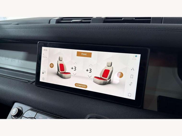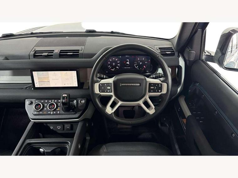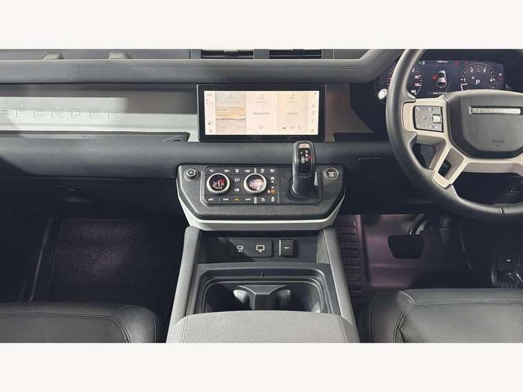 360 degree parking aid, 3D Surround Camera with 360 View, 180 Rear View, Front Traffic Detection, Forward Vehicle Guidance, Tow Hitch Assist and clear sight Ground View, Adaptive cruise control, Android Auto, Apple CarPlay, Assisted tailgate with soft close, Blind spot assist, Bluetooth system, Brake pad wear indicator, Clear exit monitor, Connected navigation pro, Driver condition monitor, Electric power assisted steering (EPAS), Interactive driver display, Lane keep assist, Push button start, Rear traffic monitor, Traffic sign recognition with adaptive speed limiter, Trip computer, Wade Sensing, 8 speed automatic transmission, All wheel drive system, Twin speed transfer box, DAB Radio (Digital Audio Broadcasting), Pivi pro connected, Auto dimming interior rear view mirror, Automatic headlight levelling, Automatic headlights, Centre high mounted stop light, Electric heated/power fold door mirrors with approach lights and auto dimming driver side, Electric windows with one touch open/close and anti-trap, Follow me home lighting, Heated rear window with timer, Heated windscreen, LED tail lights, Puddle lights, Rain sensing windscreen wipers, Rear fog lights, Rear side wing doors, Rear wiper, Side hinged tailgate, Trailer stability assist, 12V power socket in loadspace, 3 seat bench in 2nd row, Alpine lights, Configurable cabin lighting, Durable rubber cabin flooring, Durable rubber loadspace flooring, Footwell lights, Front passenger isofix child seat attachment, Loadspace cover, Loadspace Hook, Multifunction steering wheel, Overhead stowage for sunglasses, Premium cabin lighting, Rear headrests, Rear ISOFIX, Rear reading lights, Single front passenger seat, Standard seat configuration, Storage glovebox, Sunvisors with illuminated vanity mirrors, Online pack with data plan - Defender, 5 x 3 point seatbelts, ABS, Brake hold function, Cornering brake control (CBC), Customer configurable autolock, DSC - Dynamic Stability Control, EBD - Electronic brakeforce distribution, Electric parking brake (EPB), Emergency brake assist, Emergency braking, ESP + traction control, Front airbags with passenger seat occupant detector, HDC - Hill descent control, Hill launch assist, Low traction launch, Power operated child locks, Remote for (e-Call, Optimised assistance call, InControl app, Climate, beep and flash and door), RSC - Roll stability control, Seat belt reminder, TPMS (Tyre pressure monitoring system), Alarm, Immobiliser, Intrusion sensor, Keyless entry, Locking wheel nuts,