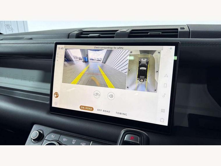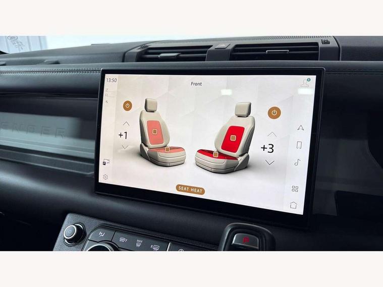 11.4" touchscreen, 360 degree parking aid, 3D Surround Camera with 360 View, 180 Rear View, Front Traffic Detection, Forward Vehicle Guidance, Tow Hitch Assist and clear sight Ground View, Adaptive cruise control, Android Auto, Apple CarPlay, Assisted tailgate with soft close, Blind spot assist, Bluetooth system, Brake pad wear indicator, Clear exit monitor, Connected navigation pro, Driver condition monitor, Electric power assisted steering (EPAS), Interactive driver display, Lane keep assist, Push button start, Rear collision monitor, Rear traffic monitor, Traffic sign recognition with adaptive speed limiter, Trip computer, Wade Sensing, 8 speed automatic transmission, All wheel drive system, Twin speed transfer box, DAB Radio (Digital Audio Broadcasting), Pivi pro connected, Automatic headlight levelling, Automatic headlights, Black exposed rear recovery eyes, Centre high mounted stop light, ClearSight interior rear view mirror, Electric heated/power fold door mirrors with approach lights and auto dimming driver side, Electric windows with one touch open/close and anti-trap, Follow me home lighting, Front fog lights, Heated rear window with timer, Heated windscreen, LED tail lights, Privacy glass, Puddle lights, Rain sensing windscreen wipers, Rear fog lights, Rear side wing doors, Rear wiper, Side hinged tailgate, Trailer stability assist, X-Dynamic badge, 12V power socket in loadspace, 14 way heated and cooled electric adjustable memory front seats with 4 way manual headrests, 3 seat bench in 2nd row, Alpine lights, Configurable cabin lighting, Durable rubber cabin flooring, Durable rubber loadspace flooring, Electric reach + rake adjustable steering column, Extended leather upgrade, Footwell lights, Front passenger isofix child seat attachment, Heated steering wheel, Loadspace cover, Loadspace Hook, Multifunction steering wheel, Overhead stowage for sunglasses, Premium cabin lighting, Rear headrests, Rear ISOFIX, Rear reading lights, Single front passenger seat, Standard seat configuration, Storage glovebox, Sunvisors with illuminated vanity mirrors, Online pack with data plan - Defender, 5 x 3 point seatbelts, ABS, Brake hold function, Cornering brake control (CBC), Customer configurable autolock, DSC - Dynamic Stability Control, EBD - Electronic brakeforce distribution, Electric parking brake (EPB), Emergency brake assist, Emergency braking, ESP + traction control, Front airbags with passenger seat occupant detector, HDC - Hill descent control, Hill launch assist, Low traction launch, Power operated child locks, Remote for (e-Call, Optimised assistance call, InControl app, Climate, beep and flash and door), RSC - Roll stability control, Seat belt reminder, TPMS (Tyre pressure monitoring system), Alarm, Immobiliser, Intrusion sensor, Keyless entry, Locking wheel nuts,