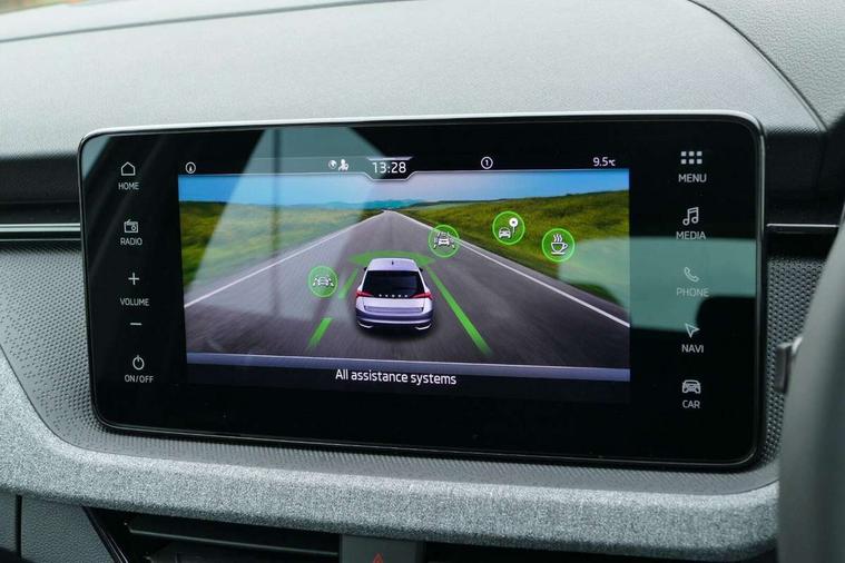 Advanced driver attention and drowsiness monitor, Bluetooth, e-Call (emergency call), Front assist system, PAS, Rear parking sensors, Rear view camera, Speed limiter, Tailgate, Traffic sign recognition, Virtual Cockpit - 10.25" digital display, Wireless smartlink, 4 USB C ports, 8 Speakers, 9.2" Skoda navigation display, DAB radio, Auto dimming rear view mirror, Automatic headlight control with manual coming and leaving home feature, Automatic intermittent wipers, Black window frames, Body colour bumpers, Body colour door mirrors and handles, Chrome moulding around grille, Front and rear electric windows, Full LED headlights, Heated rear window, LED 3rd brake light, LED daytime running lights, LED front turning lights, LED high beam, LED low beam, Rear LED fog light, Rear side wing doors, Rear wiper, Tinted windows, Unique dark chrome design logo on alloy wheels, 12V socket in luggage compartment, 3 seat bench in 2nd row, Black / Grey armrest stitching, Black hotstamping, Cargo elements, Chrome inner door handles, Door inserts in satin black, Driver and passenger sun visors with vanity mirror, Dual zone climate control, Front and rear roof lights, Front centre armrest, Front head restraints, Glasses storage in roof liner, Height adjustable driver seat, Height adjustable passenger seat, Ice scraper, Illuminated glove compartment, Inner circulation control with pollen filter, ISOFIX for front passenger seat, Isofix preparation for back seats, Leather gearknob and handbrake lever, Loft cloth upholstery, Luggage net under rear parcel shelf, Manual lumbar support for front seats, Net package and top tether hooks in boot space, Pocket on the back of both front seats, incl. mobile phone pockets, Single front passenger seat, Skoda lettering on steering wheel, Textile floor mats, Third rear headrest, Ticket holder, Top tether for front passenger seat, Umbrella in driver's door, 3x3 point rear seatbelts, ABS, Child locks, Curtain airbags and front side airbags, Disc brakes, Driver and front passenger airbags, ESP, Hill hold control, Manual leather parking brake, One tone horn, Passenger airbag switch off function, Seatbelt reminder for driver and front passenger, Tyre pressure monitoring system, Anti theft alarm system with interior monitoring, backup horn and towing protection, Anti-theft wheel bolts, Remote central locking with 2 remote folding keys, SAFE function for remote central locking, Decord pad, door inserts Kota uni,