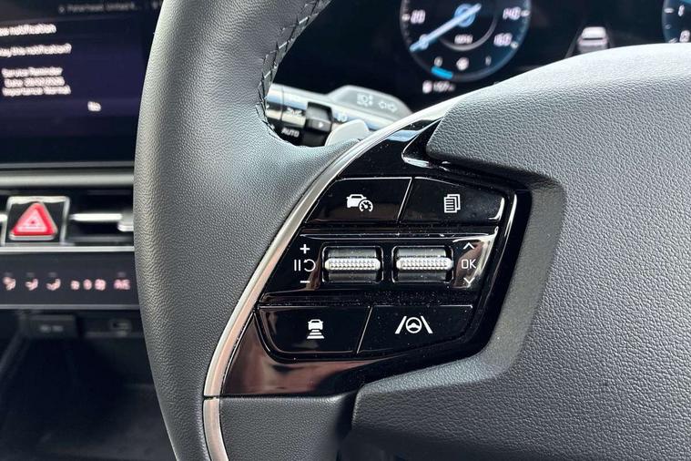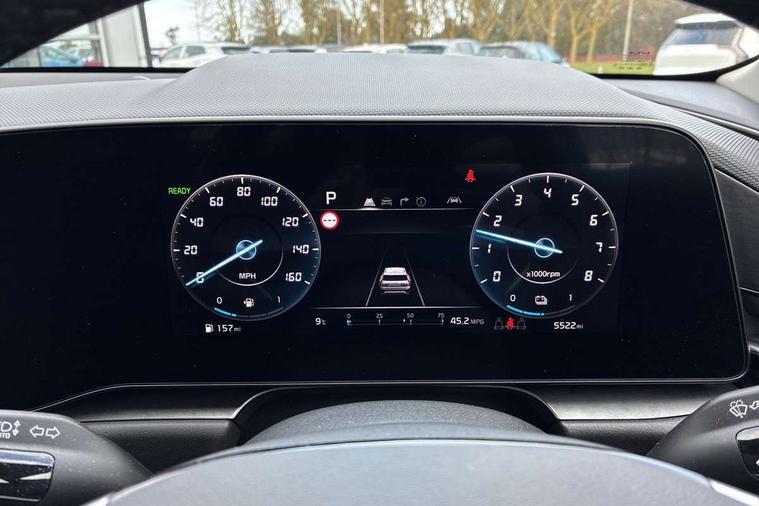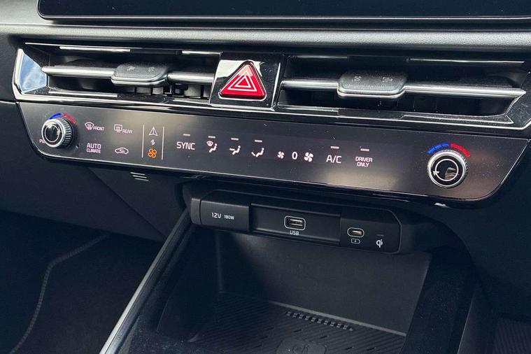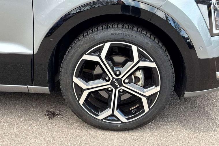 10.25" driver display screen, 10.25" touchscreen satellite navigation, Apple car play/Android Auto with voice control, Blind spot collision avoidance assist, Customisable Head Up Display, Drive mode select (Eco, normal, sport, snow), E-call, Emergency stop signalling system, Forward Collision-Avoidance Assist (FCA) 1.5 - City/Pedestrian/Cyclist/Junction turning, Front parking sensors, Highway Driving Assist (HDA), Intelligent speed limit assist, Kia Connect (UVO), Lane Following Assist (LFA), Lane keep assist, Motor driven power steering, Parking collision avoidance assist (PCA), Rear cross traffic collision avoidance assist (RCCA), Rear parking sensors, Remote smart parking assist, Reversing camera system, Safe exit warning (SEW), Smart cruise control with stop and go functionality, Smart power tailgate, Trip computer with distance/fuel consumption/average speed, Wireless Smartphone charger, 220v AC Inverter, 'Shark fin' mobile antenna, 6 speakers, Bluetooth with music streaming, DAB Digital radio, Steering wheel mounted controls, USB port for connection of a media device, Acoustic windshield, All round electric windows with drivers and front passenger auto up/down and safety function, Auto dimming rear view mirror, Automatic defog system, Automatic headlight control system, Black grille with chrome surround, Black window surrounds, Body colour bumpers, Body colour door mirrors, Body colour exterior door handles, Deluxe door scuff plates, Electrically adjustable and heated door mirrors with LED turn indicator, Electrically folding door mirrors, Front and rear chrome skid plates, Front fog lights, Gloss black wheel arches, Heated rear window, LED daytime running lights, LED Headlights, LED High mounted brake light, LED rear combination lights, Privacy glass - Rear windows and tailgate, Rain sensing front wipers, Rear fog lights, Rear roof spoiler, Rear side wing doors, Rear wiper, Roof rails, Solar glass windscreen, Sunroof with tilting and sliding function, Welcome and follow-me home light functionality, Windscreen Washer Level Warning, 12V socket in front, 12V socket in luggage compartment, 3 seat bench in 2nd row, 60:40 split remote folding rear seats, All-round height adjustable headrests, Alloy pedals, Artificial leather centre console storage box, Artificial leather steering wheel, Artificial leather upholstery, Automatic air conditioning, Centre console cupholder, Chrome coating interior door handles, Driver power adjusted memory seat, Driver/passenger sunvisors with illuminated vanity mirrors, Drivers seat power lumbar support, Front and rear door storage, Front passenger 1 x USB-C charging port, Front passenger power adjusted seat, Front passenger relaxation seat, Glove box, Heated front seats, Heated outer rear seats, Heated steering wheel, ISOFIX Child seat top tethers and anchor fixings, LED Front cabin, rear & luggage compartment lights, Luggage area load cover, Luggage board, Manually adjustable steering column, Paddle shifts, Power adjustable lumbar support on front passenger seat, Rear centre armrest with cupholder, Rear passenger 2 x USB-C charging ports, Seatback pocket - driver, Seatback pocket - front passenger, Shift by wire SBW, Single front passenger seat, Ventilated front seats, Ventiliation ducts to rear compartment, 3 point seatbelts on all seats, ABS, Automatic unlocking of doors in case of impact, Curtain and side airbags, Dual shell horn, Electric parking brake with auto hold function, Electronic stability control, Front airbags, Front passenger airbag cut-off switch, Height adjustable front seatbelts, Hill start assist control (HAC), Knee airbags, Seatbelt reminder warning, Traction control, Tyre pressure monitoring system, Customisable automatic door locking, Customisable automatic door unlocking, Deadlocks, Engine Start/Stop Button with Smart Entry System, Locking wheel nuts, Manual child locks, Rear occupant alert, Smart key with motion sensor, Thatcham category 2 security alarm and immobiliser, Visible vehicle identification number, Warranty - 7 Years/ 100, 000 miles, Centre fascia chopped carbon, 18" Alloy wheels, Tyre mobility kit,