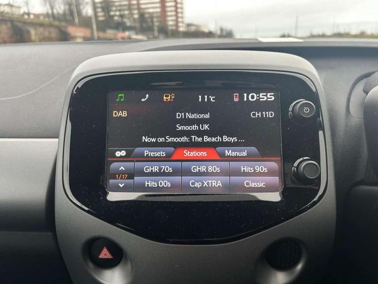 7" touch screen, Bluetooth system, Digital clock, Electric power steering, Fuel indicator with low level warning, Lights on warning, Rear view camera, Speed limiter, Tachometer, X-Navigation system, Vehicle Stability Control (VSC), Auxiliary input socket, DAB Digital radio, iPod connection, MP3 connection, Multimedia System, Stereo radio, USB connection, 2 speed wipers/variable intermittent/mist function, Automatic headlights, Body colour bumpers, Body colour door handles, Body colour door mirrors, Carbon rear diffuser, Electric adjustable door mirrors, Electric front windows, Front fog lights, Green tinted glass, Headlamp levelling, Heated door mirrors, Heated rear windscreen, LED daytime running lights, LED rear lights, Projector headlamps, Rear privacy glass, Rear spoiler, Rear window demister, Rear wiper, Roof mounted aerial, 12V Accessory socket, 3 spoke leather steering wheel, 50/50 split folding rear seat, Air recirculation system, Auto air conditioning, Centre console storage, Chrome insert to gearknob, Chrome interior door handles, Cloth upholstery, Driver and passenger sunvisors, Driver's seat height adjuster, Driver/passenger seat recline/slide adjust, Driver/passenger vanity mirrors with covers, Front and rear door pockets, Front cupholder, Front map reading lights, Glovebox, Graphite cloth upholstery, Height adjustable front head restraints, Isofix system on outer rear seats, Leather gear knob, Pollen filter, Rear cupholders, Rear headrests, Steering wheel mounted radio/phone controls, Stepless tilt adjustable steering column, Storage bins on all doors, Storage pockets in centre console, Tonneau cover, ABS, Driver and passenger airbags, Emergency brake assist, ESP, Fasten seatbelt reminder, Front side airbags, Height adjustable front seatbelts with pre-tensioners and load limiters, Hill start assist, Passenger airbag deactivate switch, Rear child proof door locks, Side curtain airbags, Tyre pressure warning, Engine immobiliser, Lockable fuel cap, Remote central locking, Gloss black air vent surround, 15" 8 double spoke black machined alloy wheels, Tyre repair kit,