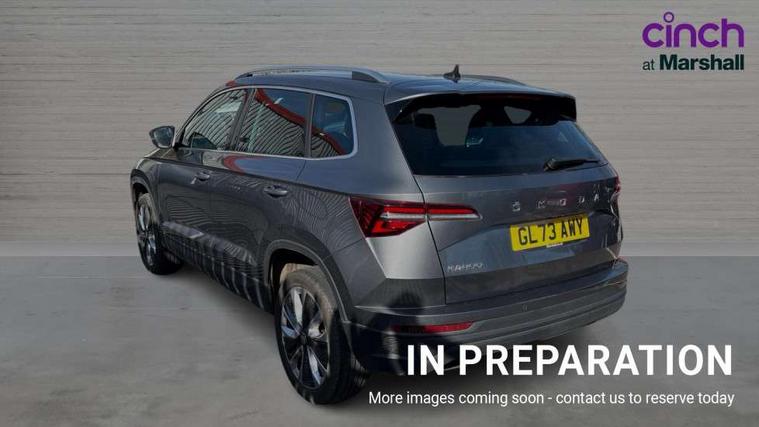 8" Digital display, Care connect, Driver fatigue sensor, Emergency services call system, Outside temperature gauge, Service interval indicator, SmartLink wireless for Apple and wired for Android, Start/stop system with regenerative braking, USB C Port x 2 in front centre console, 8 Speakers, DAB radio with Bluetooth, USB connection, Acoustic glass, Aero front windscreen wipers with intermittent function, Auto dimming rear view mirror with light and rain sensors, Black electric window control buttons, Body colour door mirrors and handles, Dynamic headlight range control with cornering light function, Electric front and rear windows with child proof lock, Heated rear windscreen, LED daytime running lights, LED rear lights with high functionality welcome effect and dynamic indicators, Light assistant (coming/leaving home/tunnel light), Plastic scuff plates, Privacy glass, Rear side wing doors, Rear spoiler, Rear window wiper with washer system and intermittent control, Safety reflectors on front doors, 1.5 litre bottle holders in driver and front passenger door panels, 12V socket in boot, 12v socket in front centre armrest with storage compartment and rear air vents, 2 spoke leather heated multifunction steering wheel with DSG paddles, 2 x Tablet holder, 3 rear height adjustable headrests, 3 seat bench in 2nd row, 4 foldable roof handles with rear coat hooks, Black floor carpet, Chrome inner door handles, Double sided boot floor, Foldable hooks in the boot, Front head restraints, Height adjustable front three point seats belts with tensioners, Height/reach adjust steering wheel, Ice scraper, Illuminated glovebox, Illuminated luggage compartment, Isofix child seat preparation for front passenger seat, Isofix child seat preparation outer rear, Manual lumbar support for front seats, Pen holder, Pollen filter, Rear boot cover, Rear reading lights, Rubbish bin door, Safety vest holder, Single front passenger seat, Storage box in upper central dashboard closed, Sunvisors with illuminated vanity mirrors, Textile floor mats, Ticket holder, VarioFlex seats with standard rear seat release, Boot pack - Karoq, Design Pack - Karoq, Parking pack - Karoq, Automatic door unlocking in case of crash, Automatic fuel cut off in case of crash, Child locks on rear doors, Driver airbag, Electronic parking brake with auto hold function, Emergency rear braking signal, ESC including ABS, MSR, ASR, EDS, HBA, DSR, RBS, MKB and traction control, Front side airbags, Hill hold control, Knee airbags, Passenger airbag with switch-off function, Pedestrian monitor, Seatbelt reminder signalisation and pretensioner for all seats, Three point seatbelts rear, Two tone horn, Tyre pressure display, Tyre pressure monitor, Alarm with interior monitoring, back up horn and tilt sensor with safe function, Electronic engine immobiliser, Keyless entry and start/stop, Remote central locking with 2 remote folding keys, Chrome framed air vents, 18" Miran alloy wheels in black, Anti-theft wheel bolts protection, Tool kit,