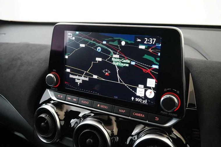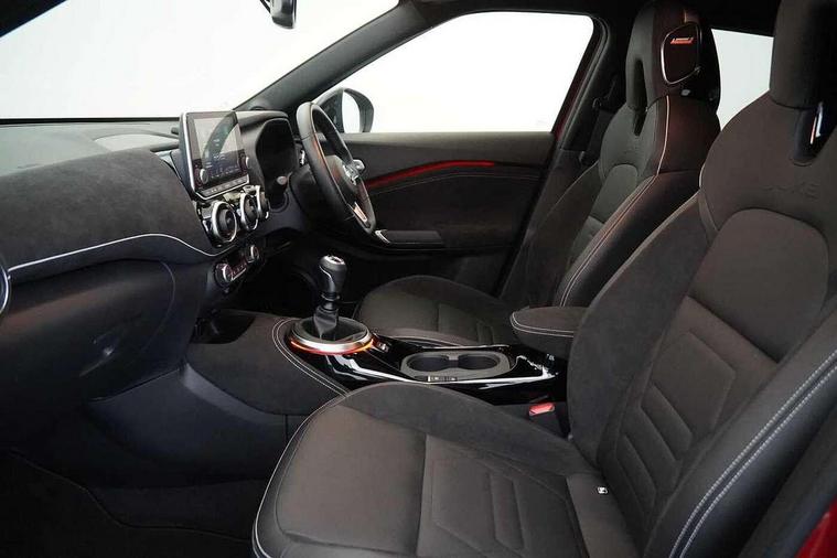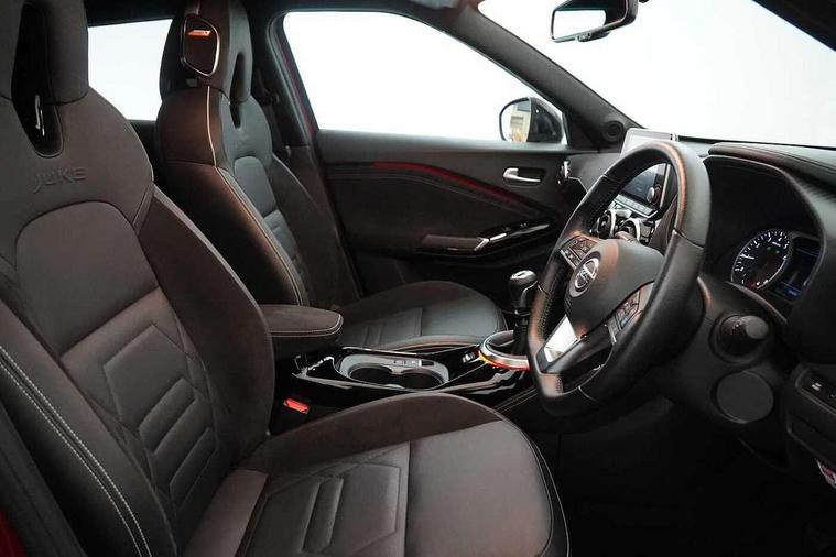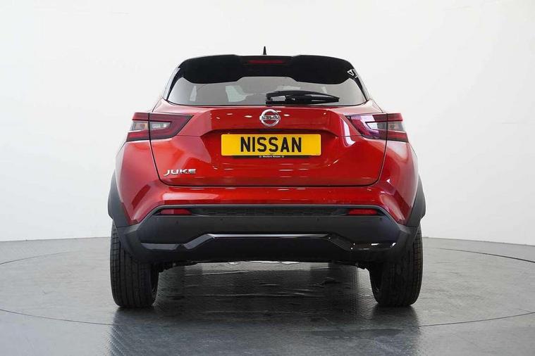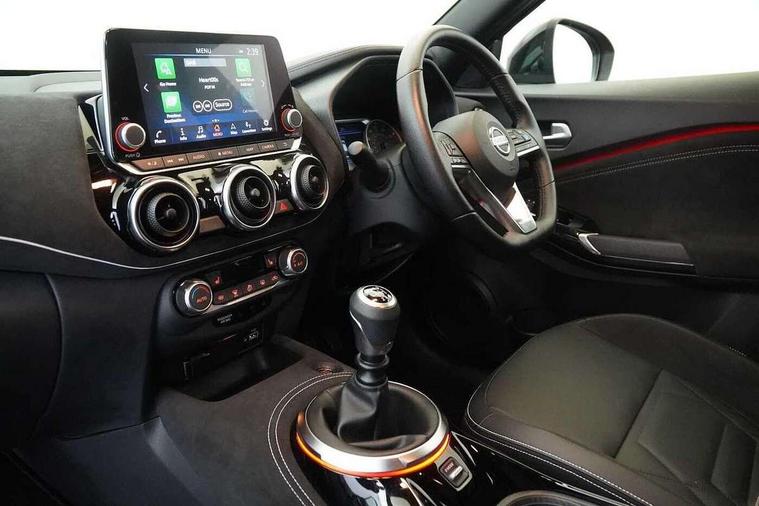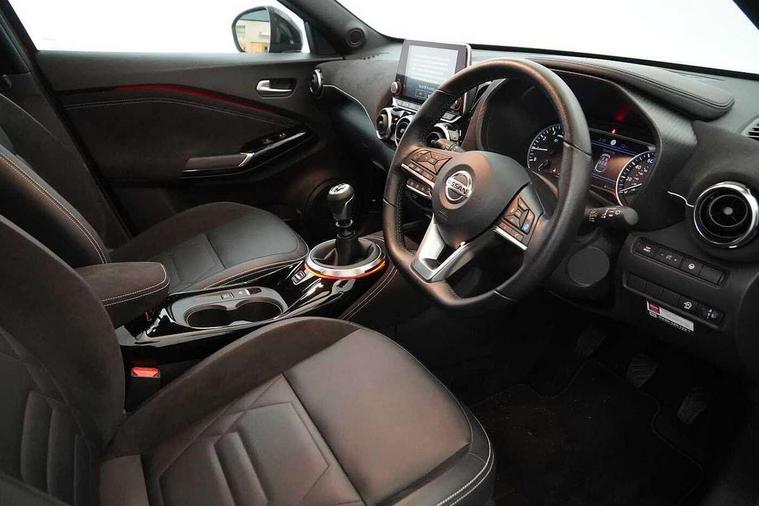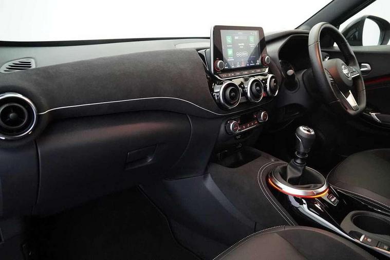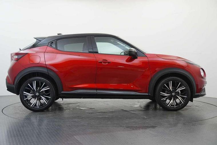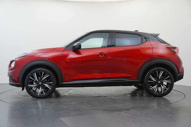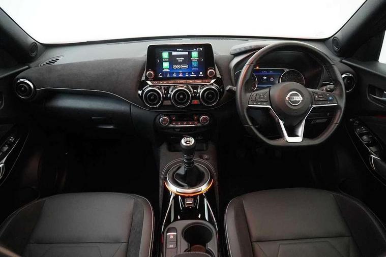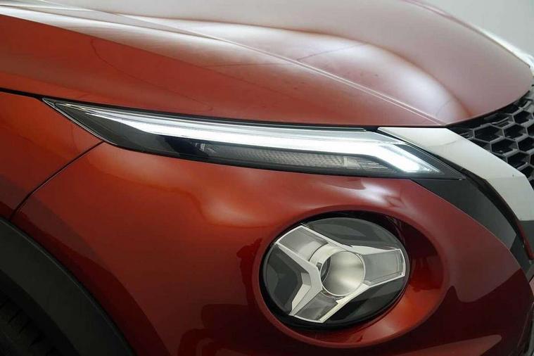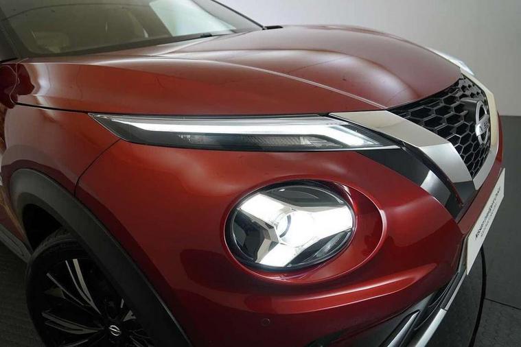 7" full colour TFT screen combimeter, 8" infotainment colour display with touch screen, Apple CarPlay and Google Android auto, Drive modes select (Eco, normal and sport), Emergency and breakdown call, Front parking sensor, Idle start/stop system, Intelligent lane intervention, Lane departure warning system, Nissan connect nav with TomTom traffic, Nissan connect services and Wifi connection, Outside temperature sensor, Power Steering, Rear parking sensor, Traffic sign recognition, Trip computer, Gasoline particulate filter, Bluetooth system, USB, Aux-in and 12V socket, Bose personal plus audio system with 8 speakers(4 speakers and 2 headrest speaker for driver and passenger seats), Bose personal sound stage control, DAB Digital radio, Front lower bumper painted in silver finisher, Rear console USB port, Auto dimming interior rear view mirror, Automatic hazard signal with emergency stop signal, Body colour bumpers, Body colour door handles, Electrically adjustable door mirrors with integrated indicators, Follow me home headlights, Front and rear electric window with one touch driver and passenger window, Heated and auto folding door mirrors, High beam assist, LED daytime running lights, LED front fog lights, LED headlamps, LED rear fog lamp, LED rear lamps, Rain sensor windscreen wipers, Rear privacy glass, Rear spoiler, Rear wiper, Thermaclear heated windscreen, Three blink turn signal, 3 height adjustable rear headrests, 60/40 split folding rear seat, Automatic climate control, Card holder on driver sunvisor, Door ambient lighting, Driver and passenger sliding and reclining seats, Driver seat back pocket, Driver side rear coat hanger, Driver/passenger sunvisors and illuminated vanity mirrors, Front and rear cabin lighting, Front armrest, Front door pockets with bottle holders, Front head restraints, Front passenger isofix child seat anchorage point, Front/rear passenger grab handles, Gear console ambient circle lighting, Grey synthetic leather kneepad, Heated front seats, Height adjustable driver's seat, Height adjustable passenger seat, Internal chrome door handles, Leather gearshift knob, Leather steering wheel, Luggage board, Luggage space lighting, Monoform sporty seats, Multifunction steering wheel, Passenger seat back pocket, Rear door bottle holders, Telescopic steering wheel adjustment, Two cupholders in front centre console, Two rear isofix child seat anchorage points with top tether, Voice recognition switch on steering wheel, Welcome light and console tray ambient lighting, Advanced safety shield pack - Juke, ABS with EBD and brake assist, Active ride control, Active Trace Control, Driver and passenger airbags, Driver and passenger side airbags, Electric handbrake with auto hold function, Electronic Stability Programme (ESP), Front and rear curtain airbags, Height adjustable seatbelts, Hill start assist, Intelligent emergency braking with pedestrian and cyclist recognition, Seatbelt reminder for driver/front passenger and rear seats, Single tone horn, Three 3 point rear seatbelts, Traction control, Tyre pressure monitoring system, VDC Dynamic Vehicle Control, Ventilated rear brake discs, Alarm, Immobiliser, Intelligent Key with push button starter, Remote central locking, 19" Akari alloy wheels,