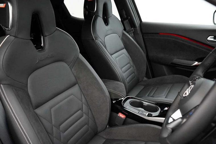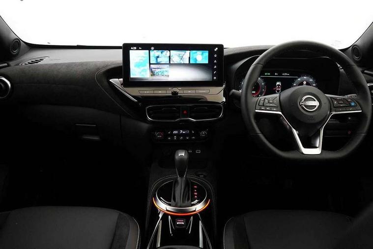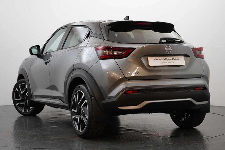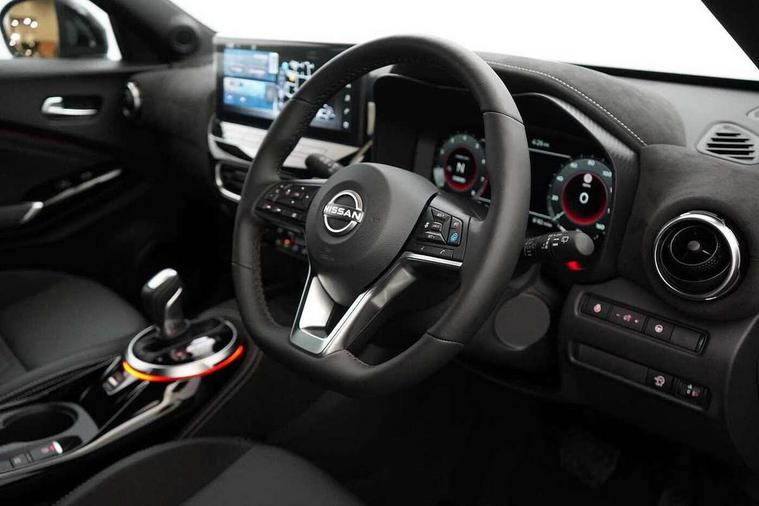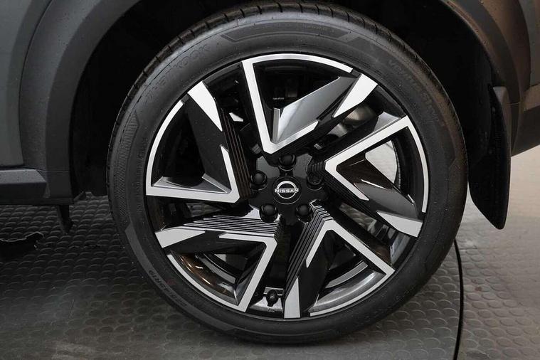 12.3" full colour TFT screen combimeter, Drive modes select (Eco, normal and sport), Emergency and breakdown call, Front parking sensor, Idle start/stop system, Intelligent driver alert system, Intelligent lane intervention, Lane departure warning system, Nissan connect 12.3" touch screen entertainment system, Nissan connect nav with TomTom traffic, Nissan connect services, Outside temperature sensor, Power Steering, Rear parking sensor, Stop/start button, Traffic sign recognition, Trip computer, Voice recognition, WiFi connectivity, Wireless Apple CarPlay and Google Android auto, Wireless Smartphone charger, 10 Bose speakers 8 speakers and 2 headrest speakers for driver/passenger seats, 2 X Rear console USB port, Bluetooth system, USB, Aux-in and 12V socket, Bose personal plus audio system, DAB Digital radio, Auto dimming frameless rear view mirror, Automatic hazard signal with emergency stop signal, Body colour door handles, Electrically adjustable door mirrors with integrated indicators, Follow me home headlights, Front and rear electric window with one touch driver window, High beam assist, LED 3rd brake light, LED daytime running lights, LED front fog lights, LED headlamps, LED rear fog lamp, LED rear lamps, One touch passenger window, Rear privacy glass, Rear side wing doors, Rear wiper, Roof spoiler, Shark fin roof antenna in solid Black, Solid black door mirrors, Solid black front bumper/rear bumper and side skirts inserts, Three blink turn signal, 3 height adjustable rear headrests, 3 seat bench in 2nd row, 60/40 split folding rear seat, Card holder on driver sunvisor, Door ambient lighting, Driver seat back pocket, Driver side rear coat hanger, Driver/passenger sunvisors and vanity mirrors, Front and rear cabin lights, Front armrest, Front door pockets with bottle holders, Front head restraints, Front/rear passenger grab handles, Gear console ambient circle lighting, Height adjustable driver's seat, Internal chrome door handles, Luggage board, Luggage space lighting, Monoform sporty seats, Multifunction steering wheel, Passenger seat back pocket, Rear door bottle holders, Single front passenger seat, Smooth synthetic leather steering wheel, Steering wheel mounted gearshift paddles, Synthetic leather kneepad, Synthetic leather shift knob, Telescopic steering wheel adjustment, Two cupholders in front centre console, Two rear isofix child seat anchorage points with top tether, Welcome light and console tray ambient lighting, Comfort pack - Juke, Heat pack with height adjustable passenger seats - Juke, Interior personalisation pack - Juke, ProPilot pack - Juke Auto, Satin grey exterior personalisation pack - Juke, ABS with EBD and brake assist, Active ride control, Active Trace Control, Driver and passenger airbags, Driver and passenger side airbags, Electric handbrake with auto hold function, Electronic Stability Programme (ESP), Front and rear curtain airbags, Height adjustable seatbelts, Hill start assist, Intelligent emergency braking with pedestrian and cyclist recognition, Rear door child safety locks, Seatbelt reminder for driver/front passenger and rear seats, Three 3 point rear seatbelts, Traction control, Tyre pressure monitoring system, VDC Dynamic Vehicle Control, Alarm, Immobiliser, Intelligent key and start push button with walk away lock and approach unlock functions, Remote central locking, 19" Alloy wheels with deep 3D effect, Tyre puncture repair kit,