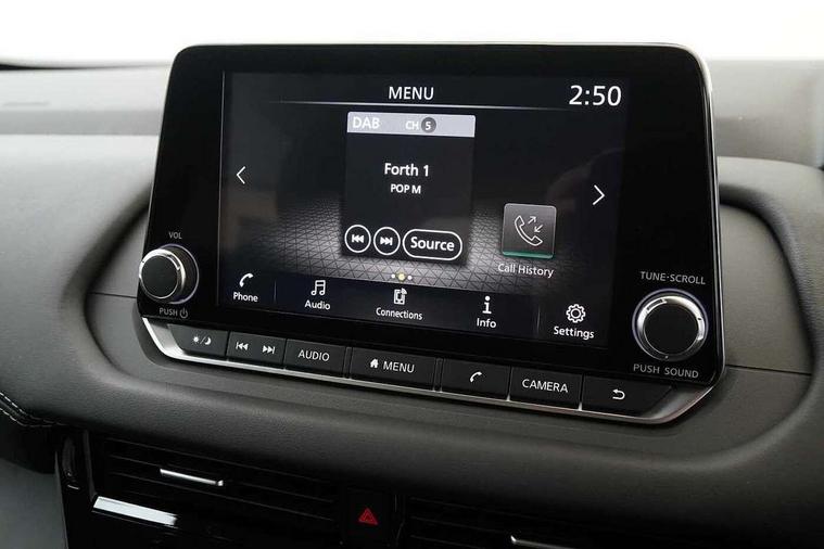 7" High definition full colour TFT screen combimeter, Android auto/Apple CarPlay (Wired), Blind spot warning, Drive modes (sport, normal, eco), Electric speed sensitive power steering, Emergency and breakdown call, Idle stop/start system, Intelligent Cruise control (ICC), Intelligent driver alert system, Intelligent forward collision warning, Intelligent lane intervention, Lane departure prevention, Lane departure warning system, Maximum speed limiter, Nissan connect 8" touchscreen infotainment system, Push button starter, Rear cross traffic alert, Rear parking sensors, Rear view camera, Traffic sign recognition with legal speed adjustment, Trip computer, 6 speakers, AM/FM audio system with DAB, Bluetooth audio streaming, Front USB connections (Type-A and Type-C), Auto dimming rear view mirror, Auto rear wiper when reversing, Automatic hazard signal with emergency stop signal, Body colour mirror caps, Body coloured door handles, Bodyside mouldings, Chrome side window finisher, Door handle with button, Electric auto folding door mirrors, Electrically adjustable and heated door mirrors with LED turn indicator, Follow me home headlights, High beam assist, Intelligent auto headlights, LED daytime running lights, LED Headlights, LED rear lights, One touch front and rear electric windows with remote opening and closing, Partially body coloured bumpers, Rear reversing light (bulb lighting), Rear roof spoiler, Rear side wing doors, Shark fin antenna, Splash free rain sensing wipers, Three blink turn signal, 12v power socket in dashboard and luggage, 2x Rear coat hooks, 3 bench rear seats in 2nd row, 3 rear headrests, 4 folding assist grip, 6-way manually adjustable driver's seat, 60/40 split folding rear seat bench, Centre console storage tray, Chrome interior door handles, Cloth monoform upholstery, Driver and front passenger sunvisors with illuminated vanity mirrors, Driver seat back pocket, Dual zone automatic climate control with pollen filter, Electrically adjustable lumbar support for driver, Front and rear door storage, Front centre console and armrest, Front cupholders x 2, Front door with bottle holders, Glovebox with light, Hard trunk cover, Height adjustable driver's seat, Height adjustable front headrests, Height adjustable passenger seat, Leather shift knob, Leather steering wheel, Luggage space lighting, Manually adjustable passenger (slide recline + lifter), Multifunction steering wheel, Passenger seat back pocket, Rear armrest with 2 cupholders, Rear door bottle holders, Single front passenger seat, Steering wheel switches, Sunglasses holder, Tilt/telescopic adjustable steering wheel, Two rear isofix child seat anchorage points with top tether, 3x3 point rear seatbelt pretensioners + load limiters, ABS with EBD and brake assist, Active brake limited slip, Auto hold function, Child locks on rear doors, Curtain and front side, far side airbags, Driver and passenger airbags, Driver, passenger and 2nd row rear seat belt reminder, Electronic parking brake, Front seatbelt pretensioners + load limiters, Height adjustable front seatbelts, Hill start assist, Intelligent blind spot intervention, Intelligent front emergency braking with pedestrian, cyclist recognition and junction assist, Intelligent rear automatic braking, Tyre pressure monitoring system, Vehicle dynamic control, Capless fuel filler, Engine immobiliser, Intelligent Key, Remote central door locking with deadlocking, Thatcham Cat.1 alarm, Interior instrumental panel A finisher, 17" Alloy wheels, Tyre puncture repair kit,