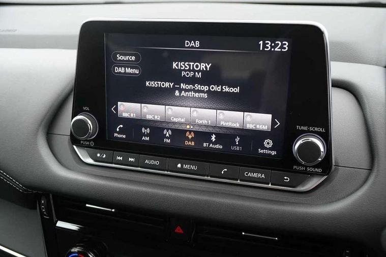 7" High definition full colour TFT screen combimeter, Android auto/Apple CarPlay (Wired), Blind spot warning, Drive modes (sport, normal, eco), Electric speed sensitive power steering, Emergency and breakdown call, Idle stop/start system, Intelligent Cruise control (ICC), Intelligent driver alert system, Intelligent forward collision warning, Intelligent lane intervention, Lane departure prevention, Lane departure warning system, Maximum speed limiter, Nissan connect 8" touchscreen infotainment system, Push button starter, Rear cross traffic alert, Rear parking sensors, Rear view camera, Traffic sign recognition with legal speed adjustment, Trip computer, 6 speakers, AM/FM audio system with DAB, Bluetooth audio streaming, Front USB connections (Type-A and Type-C), Auto dimming rear view mirror, Auto rear wiper when reversing, Automatic hazard signal with emergency stop signal, Body colour mirror caps, Body coloured door handles, Bodyside mouldings, Chrome side window finisher, Door handle with button, Electric auto folding door mirrors, Electrically adjustable and heated door mirrors with LED turn indicator, Follow me home headlights, High beam assist, Intelligent auto headlights, LED daytime running lights, LED Headlights, LED rear lights, One touch front and rear electric windows with remote opening and closing, Partially body coloured bumpers, Rear reversing light (bulb lighting), Rear roof spoiler, Rear side wing doors, Shark fin antenna, Splash free rain sensing wipers, Three blink turn signal, 12v power socket in dashboard and luggage, 2x Rear coat hooks, 3 bench rear seats in 2nd row, 3 rear headrests, 4 folding assist grip, 6-way manually adjustable driver's seat, 60/40 split folding rear seat bench, Centre console storage tray, Chrome interior door handles, Cloth monoform upholstery, Driver and front passenger sunvisors with illuminated vanity mirrors, Driver seat back pocket, Dual zone automatic climate control with pollen filter, Electrically adjustable lumbar support for driver, Front and rear door storage, Front centre console and armrest, Front cupholders x 2, Front door with bottle holders, Glovebox with light, Hard trunk cover, Height adjustable driver's seat, Height adjustable front headrests, Height adjustable passenger seat, Leather steering wheel, Luggage space lighting, Manually adjustable passenger (slide recline + lifter), Multifunction steering wheel, Passenger seat back pocket, Rear armrest with 2 cupholders, Rear door bottle holders, Single front passenger seat, Steering wheel gearshift paddles, Steering wheel switches, Sunglasses holder, Tilt/telescopic adjustable steering wheel, Two rear isofix child seat anchorage points with top tether, 3x3 point rear seatbelt pretensioners + load limiters, ABS with EBD and brake assist, Active brake limited slip, Auto hold function, Child locks on rear doors, Curtain and front side, far side airbags, Driver and passenger airbags, Driver, passenger and 2nd row rear seat belt reminder, Electronic parking brake, Front seatbelt pretensioners + load limiters, Height adjustable front seatbelts, Hill start assist, Intelligent blind spot intervention, Intelligent front emergency braking with pedestrian, cyclist recognition and junction assist, Intelligent rear automatic braking, Tyre pressure monitoring system, Vehicle dynamic control, Capless fuel filler, Engine immobiliser, Intelligent Key, Remote central door locking with deadlocking, Thatcham Cat.1 alarm, Interior instrumental panel A finisher, 17" Alloy wheels, Tyre puncture repair kit,