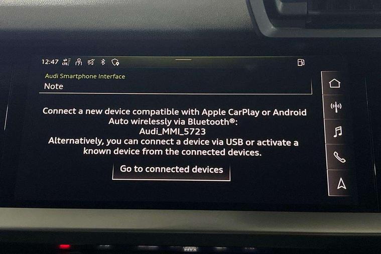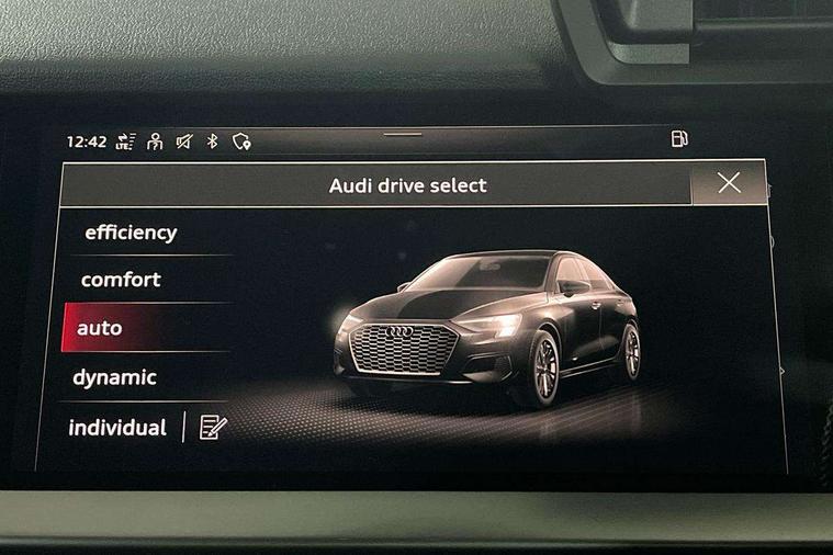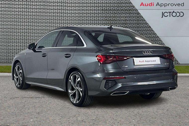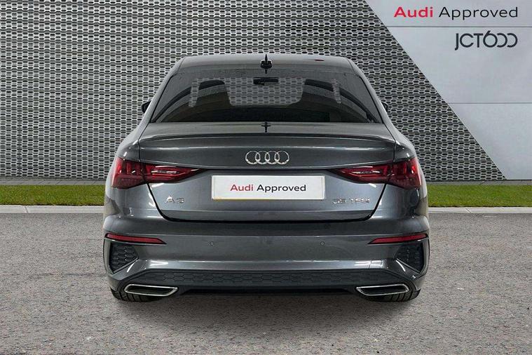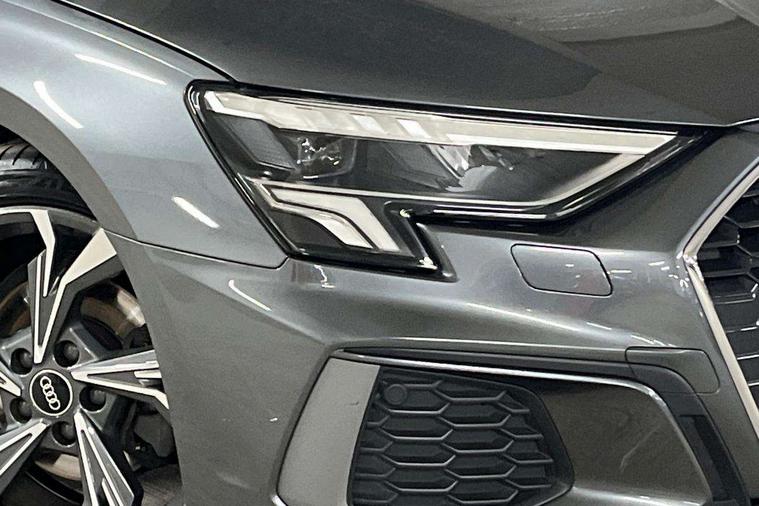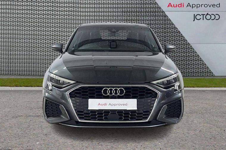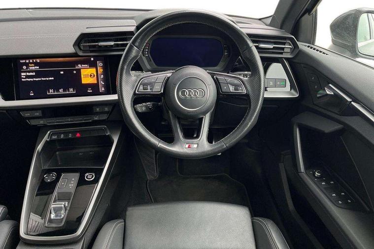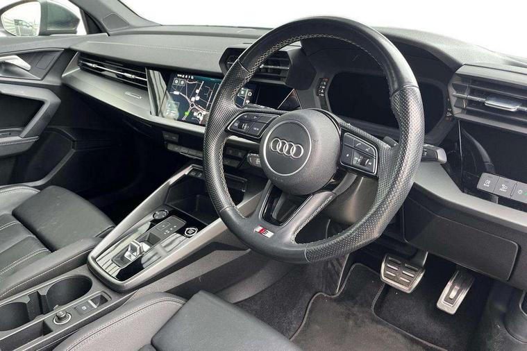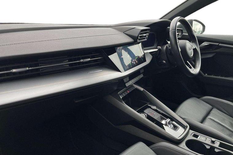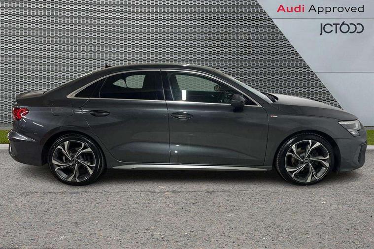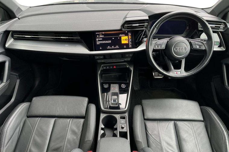 Audi connect emergency call and service, Audi drive select (Auto, Comfort, Dynamic, Efficiency and Individual), Audi smartphone interface, Audi Virtual Cockpit - 10.25" digital and colour instrument cluster, Automatic start/stop system with recuperation, Bluetooth interface, Collision avoidance assistant, Electromechanical power speed sensitive steering, Lane departure warning system, MMI Navigation Plus with high resolution 10.1" colour touch screen display, Service indicator, Voice control system with natural language interaction, 2x USB Type C ports (for charging and data transfer), 6 passive loudspeakers, CD player, DAB Digital radio, 3rd brake light, Acoustic glass windscreen, Aluminium window trim, Auto dimming frameless rear view mirror, Electrically adjustable/heated/folding/auto dimming door mirrors with integrated LED indications + kerb view function for passenger side, Front electric windows, Illuminated door sills with aluminium inserts at the front with S logo, LED daytime running lights, LED headlights with LED rear lights and dynamic rear indicators, Light and rain sensors, Model and engine designation badges at rear, Privacy glass - dark tinted rear window, rear door and side windows, Rear electric windows, S line bumpers, S roof spoiler, 12V socket and storage compartment in front centre console, 40/20/40 split folding rear seat bench with cupholder, Black cloth headlining, Dual zone electronic climate control, Front and rear centre armrest in leather, Front and rear headrests, Front/rear floor mats, Height and reach adjustable steering wheel, Interior lighting - glove compartment light and right hand side, Luggage compartment floor covering, Manual boot compartment lid, Manually adjustable front sport seats, Seat side bolsters, Stainless steel pedals and front footrest in black, Twin leather upholstery with front sports seats S embossed logo, Aluminium interior elements pack - A3, S line styling pack - A3 Saloon, 3x3 point rear seat belts, Driver and front passenger airbag with passenger airbag deactivation, Electronic Stabilisation Control (ESC) including ABS, ASR and EDL, First aid kit with warning triangle and 2 safety vests, Front side airbags with head airbags and interaction airbag, Hill hold assist, Pre-sense front with pedestrian and cyclist detection, Seatbelt monitoring, Tyre pressure loss indicator, Anti theft alarm, Anti-theft wheel bolts, Electronically operated child lock, Immobiliser, Remote control central locking, Aluminium air vent surrounds, Aluminium trim elements, Dark spectrum aluminium inlays, accent surfaces in the dashboard and centre console in platinum grey silk effect paint finish,